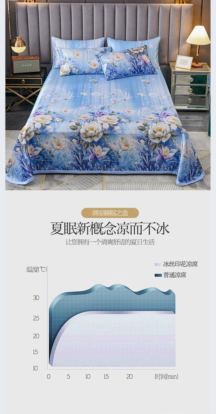 商品名称:迷仙巢2021新款印花冰丝凉席(床单款) 清新花语