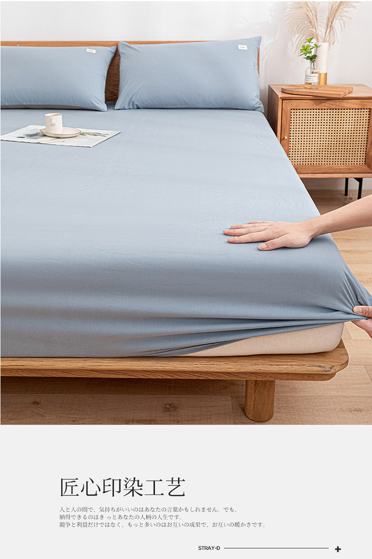 蓝巢家纺 2021新款全棉水洗棉单床笠 湖蓝