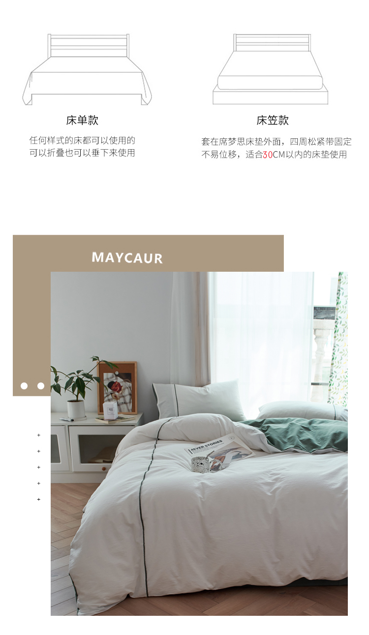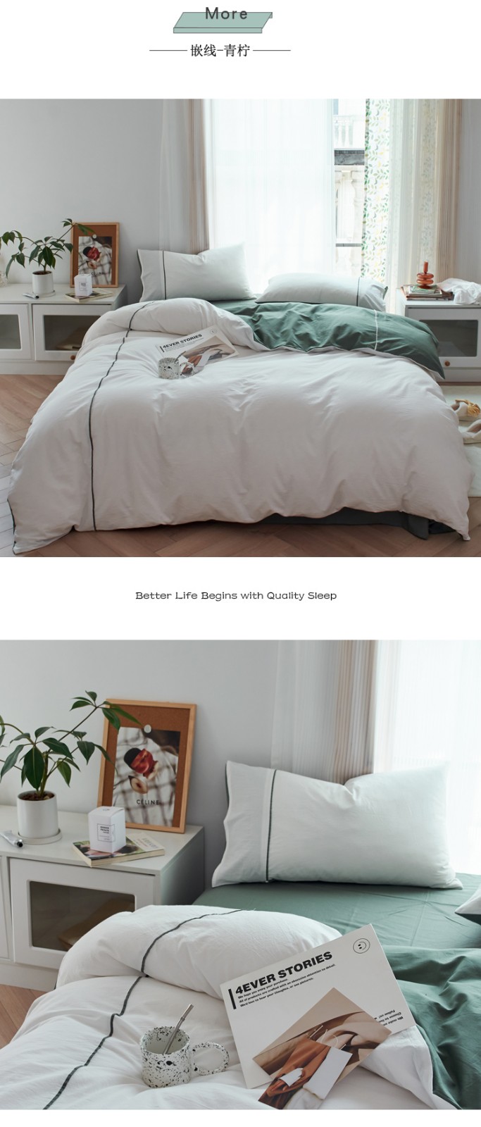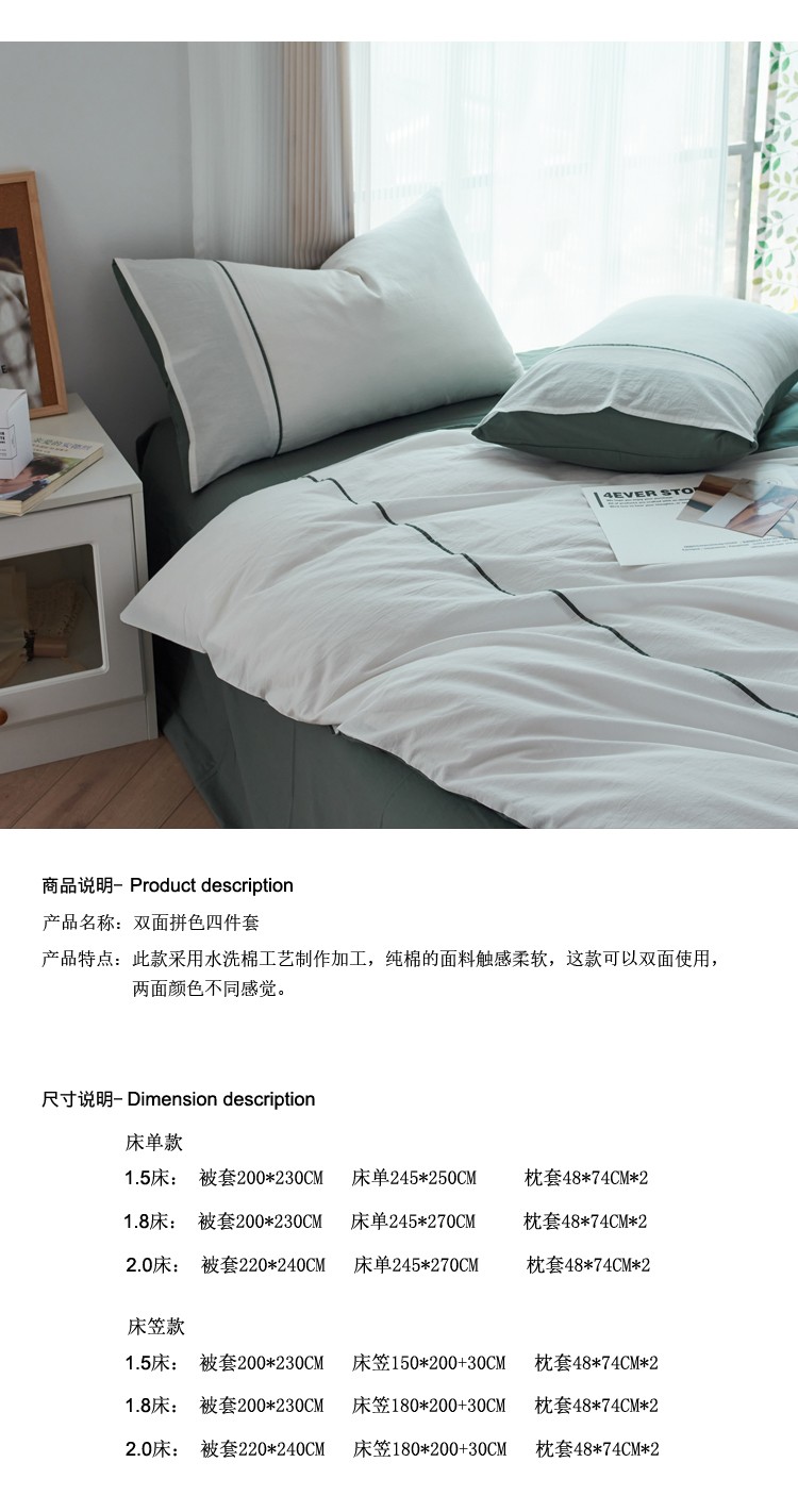 双拼全棉水洗棉纯棉四件套ins简约北欧纯色床笠款套件,双拼白+浅蓝,双拼白+薇薇紫,双拼海蓝+浅蓝,双拼琥珀+鹅黄,双拼焦糖+奶茶,双拼螺旋藻绿+鹅黄,双拼奶茶+鹅黄,双拼牛油果+鹅黄,双拼浅蓝+鹅黄,双拼树莓红+杏仁白,双拼水绿+螺旋藻绿,双拼豌豆青+杏仁白,双拼杏仁白+螺旋藻绿,薇薇紫+杏仁白,浅灰+杏仁白,双拼藏青+浅灰,双拼花青灰+浅灰,双拼霁色+浅灰