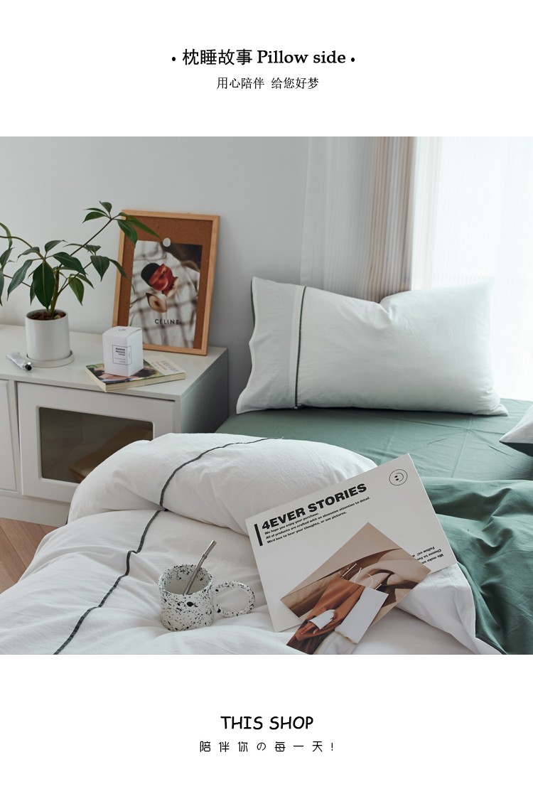 商品名称:纯棉水洗棉四件套纯色简约全棉被套工艺款床单床笠学生直播爆款