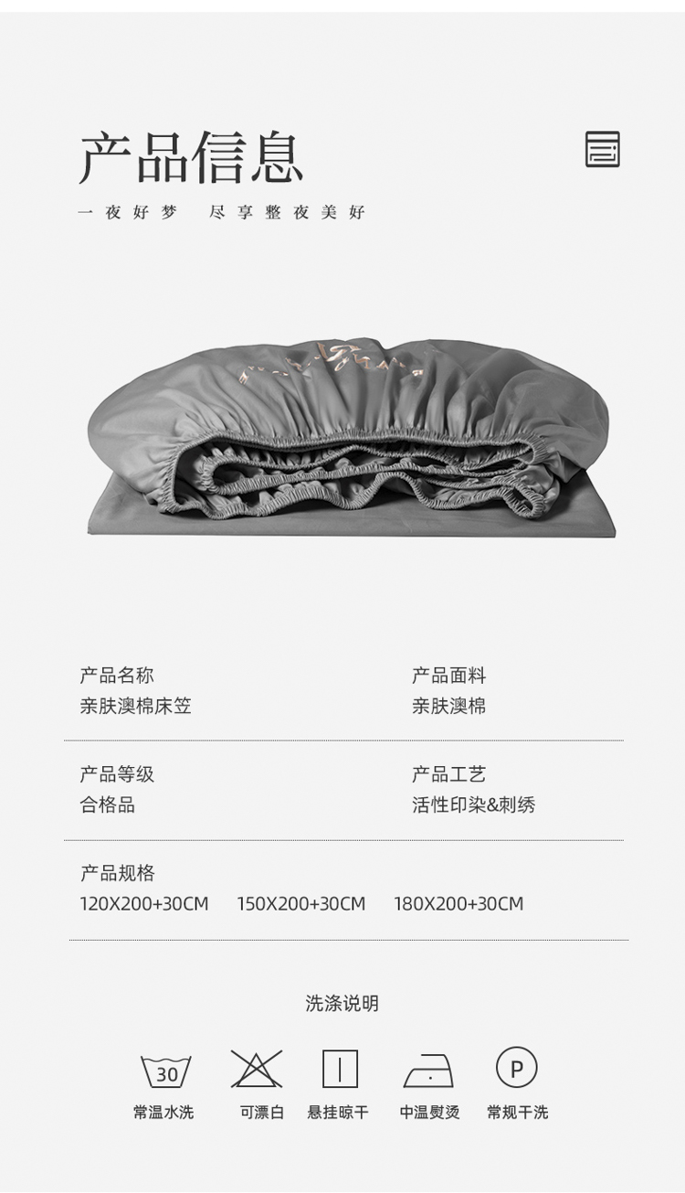 商品名称:(总)秀色 50支贡缎床笠单件全棉纯棉床罩三件套