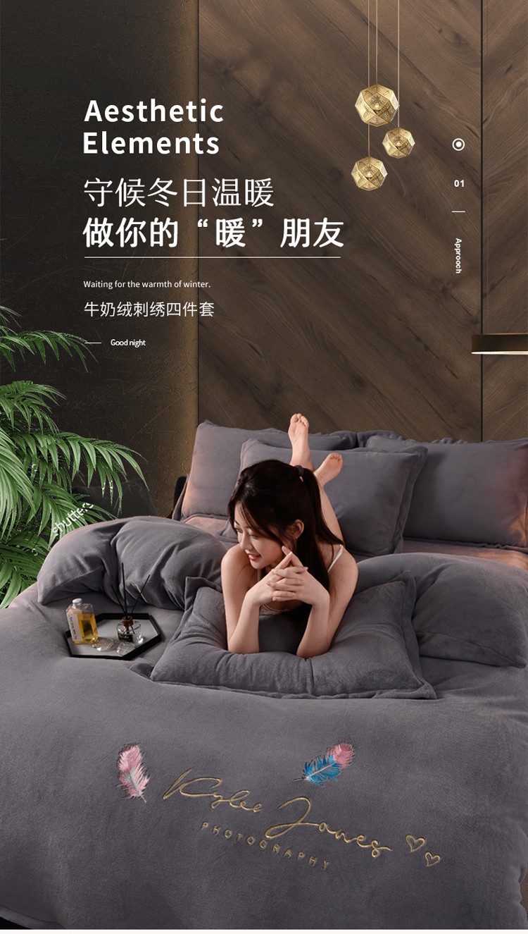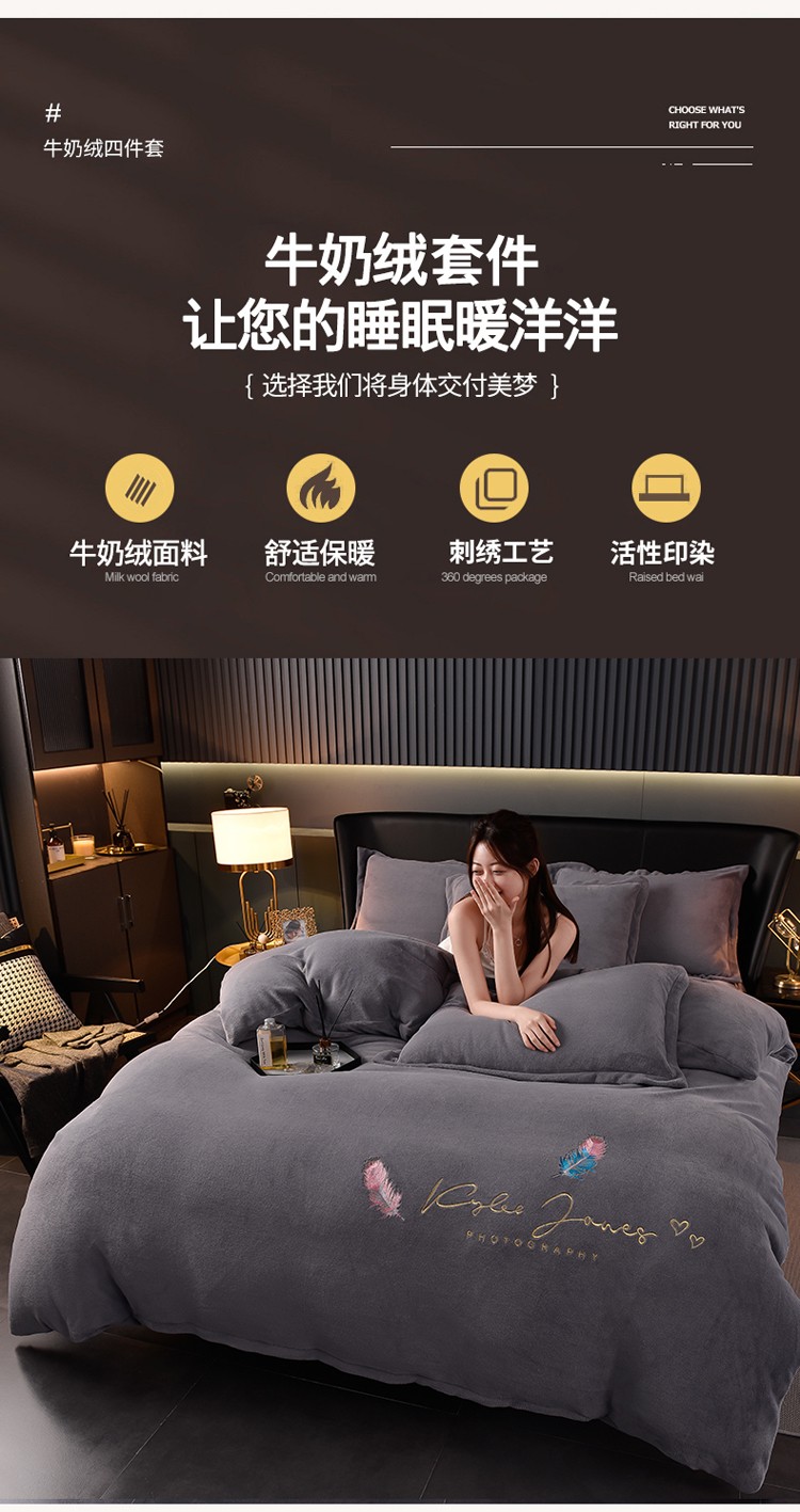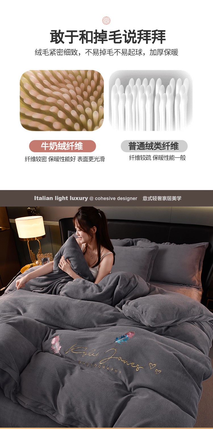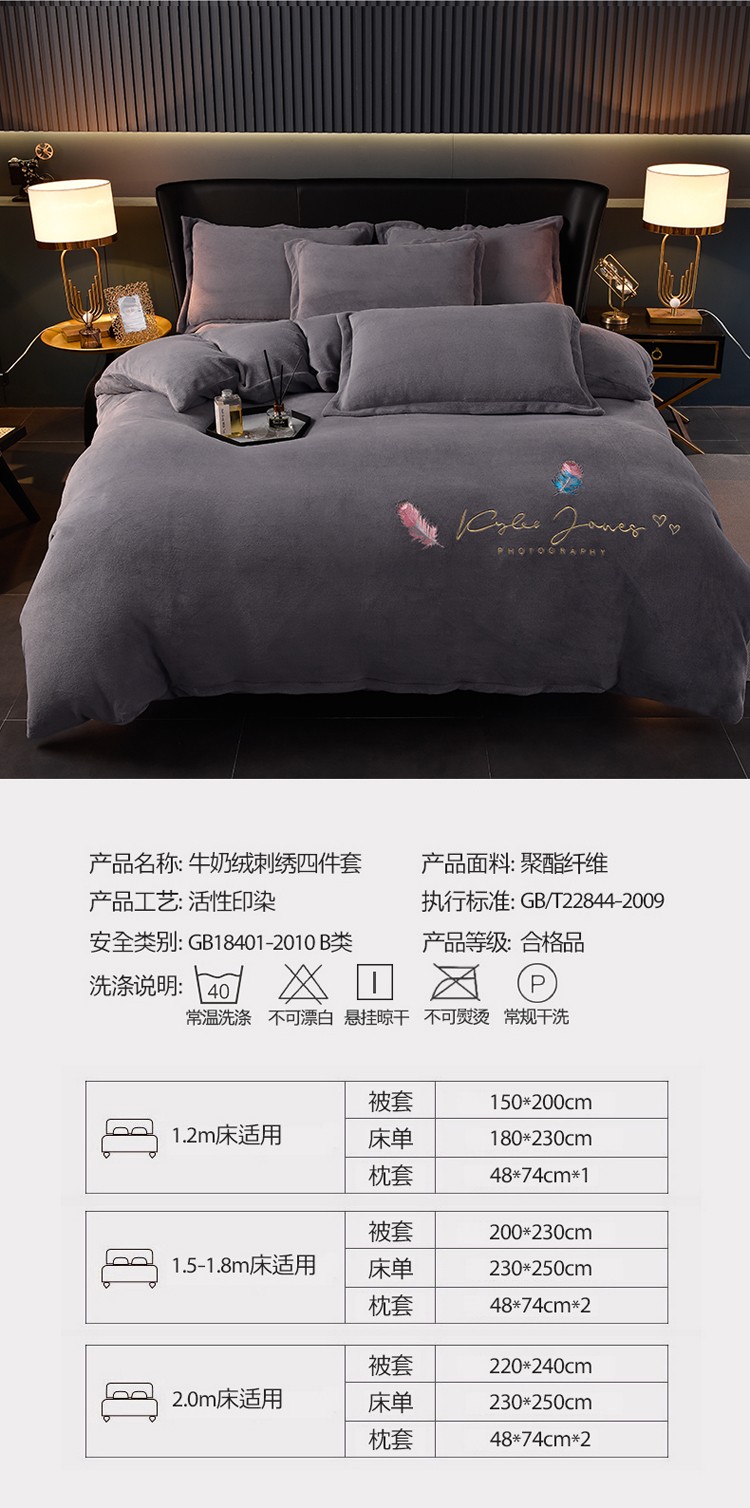 当前位置: 91家纺网 > 商品网购 > 床品套件 > 四件套 > 牛奶绒四件套 > 简爱 2025新款高克重简单款牛奶绒刺绣四件套 羽毛-烟熏灰