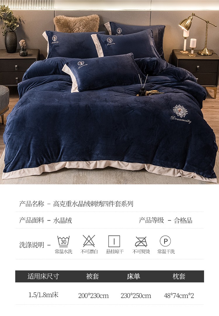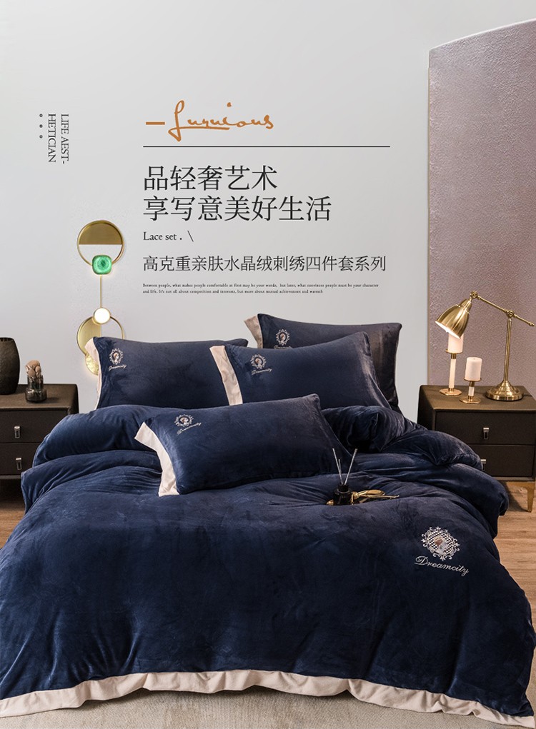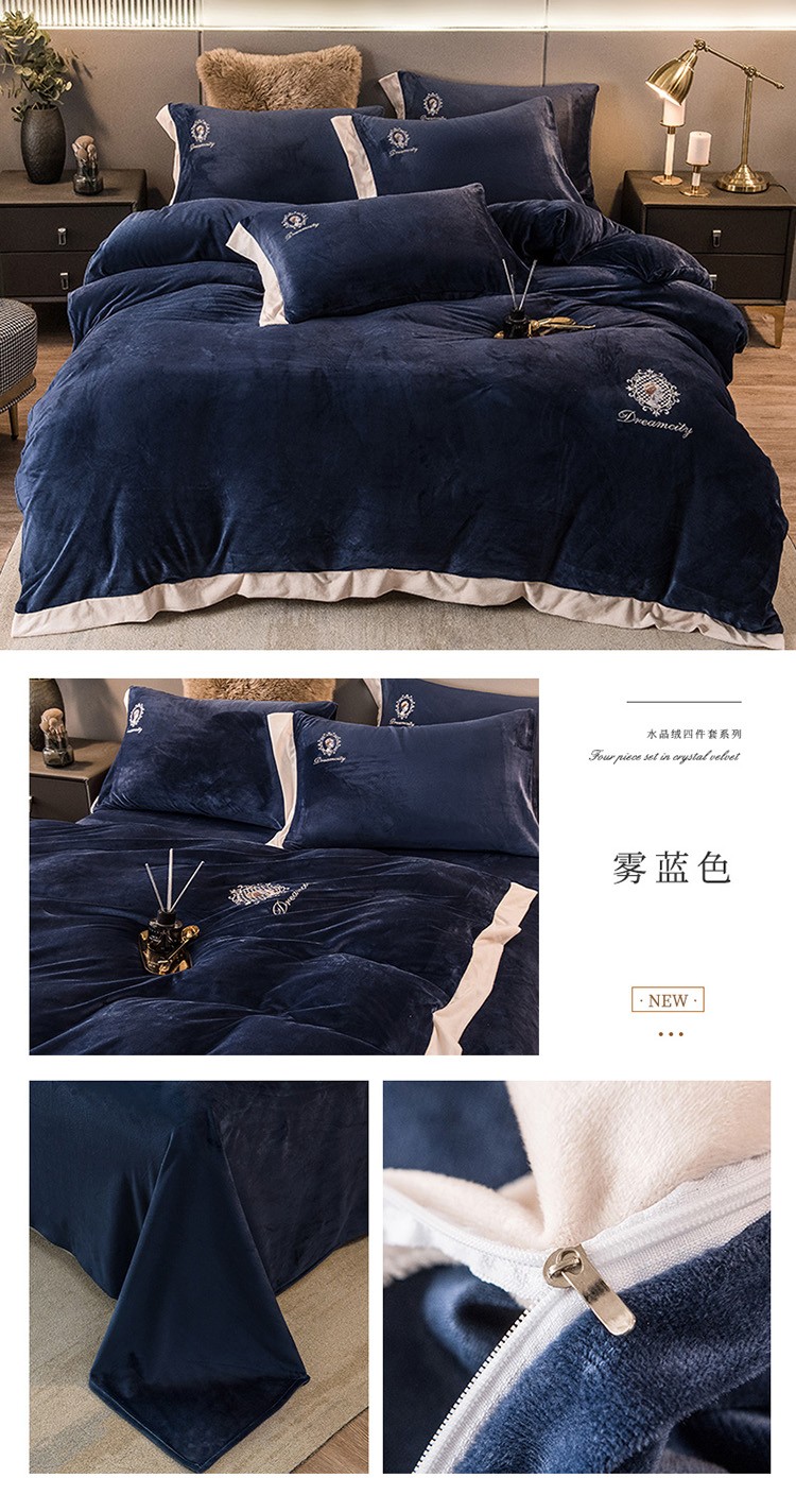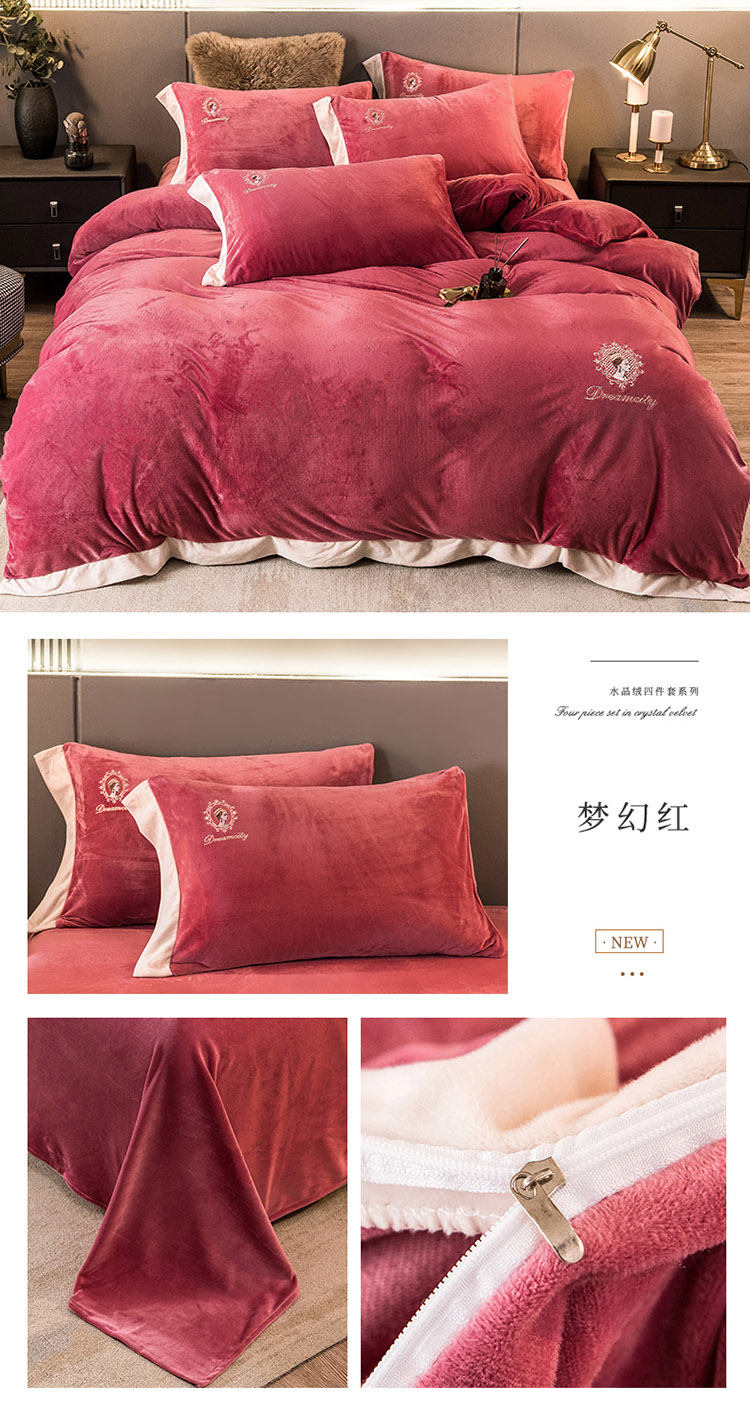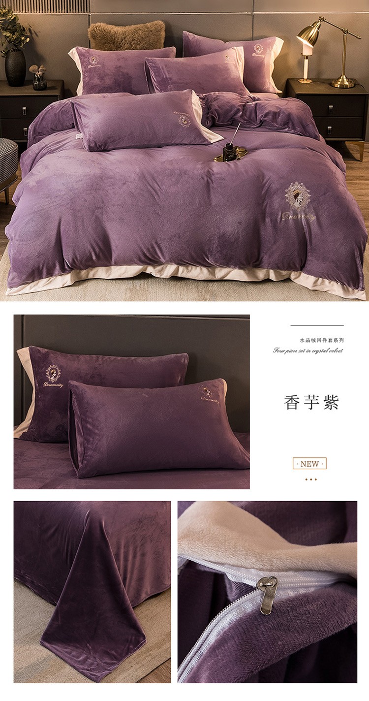 (总)凡客2021秋冬新款水晶绒绣花四件套-居里夫人