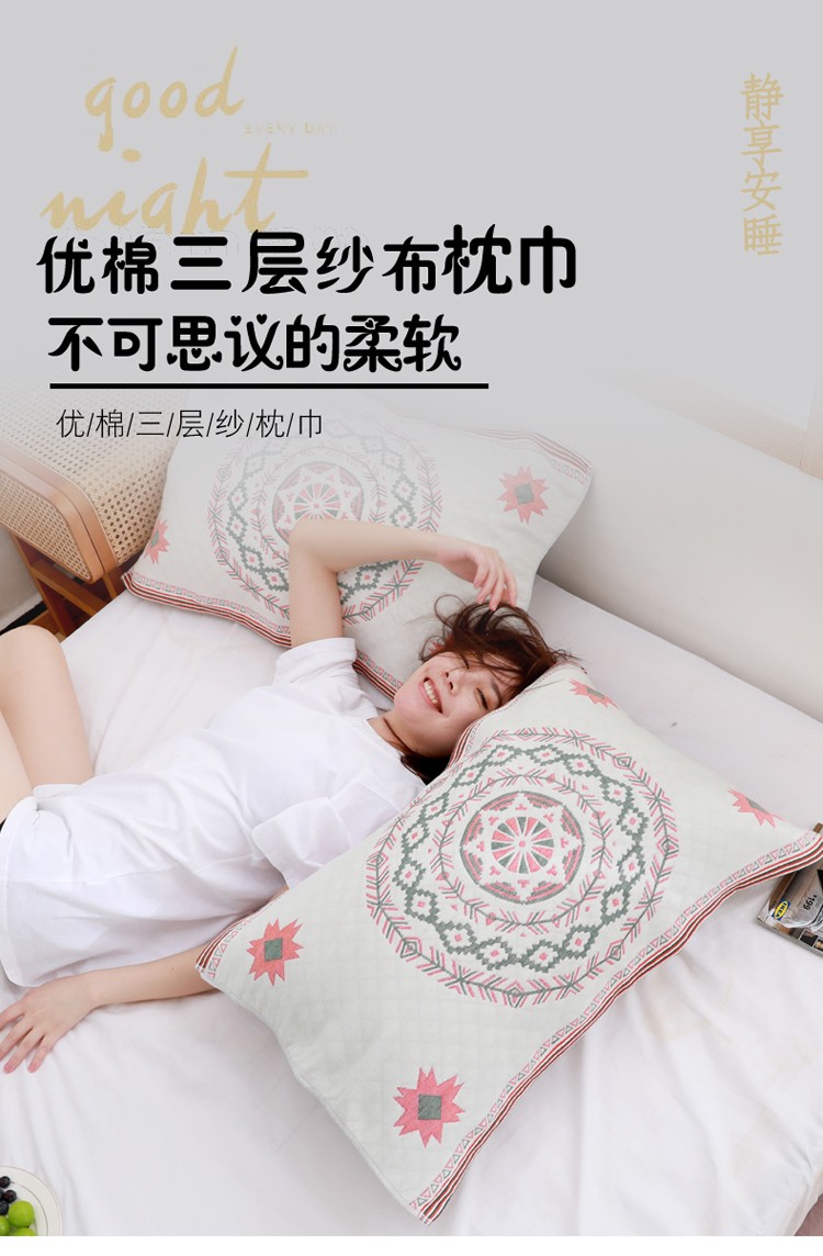 当前位置: 91家纺网 > 商品网购 > 床上用品 > 枕巾 > 朴尔家纺 2021新品波西米亚风全棉四层纱布定位枕巾 雷洛