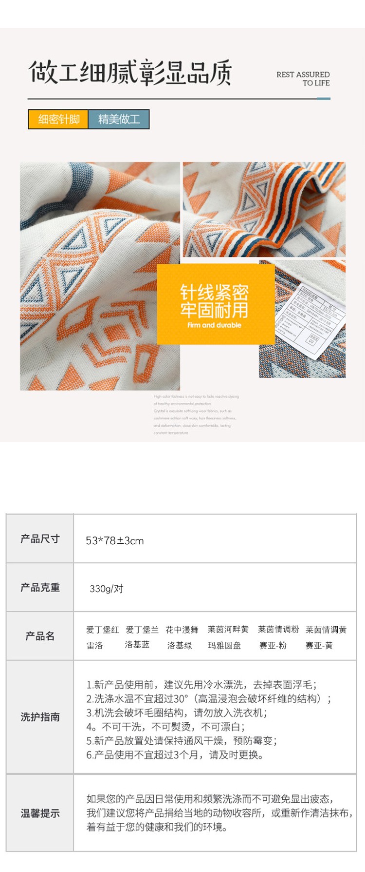 • 91家纺网 家纺一手货源 找家纺 朴尔家纺 2021新品波西米亚风全棉四层纱布定位枕巾 雷洛