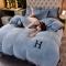 简爱家纺2025款高克重牛奶绒拼角工艺四件套 H款-天蓝
