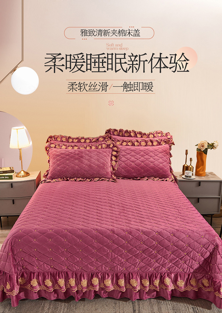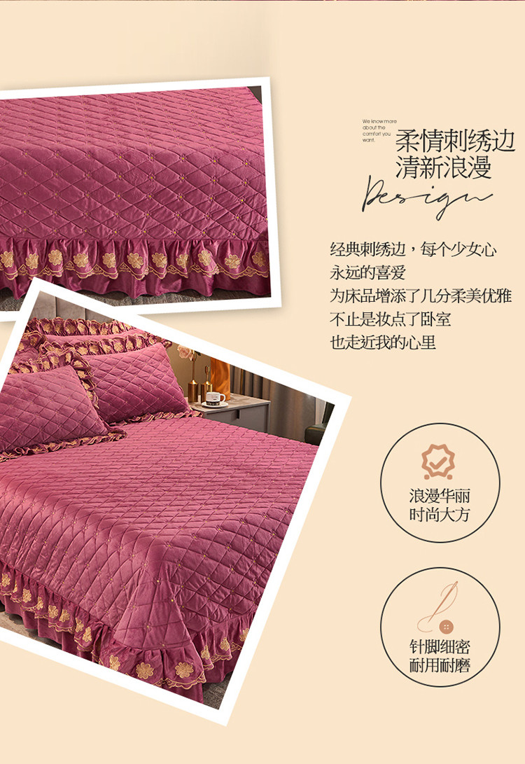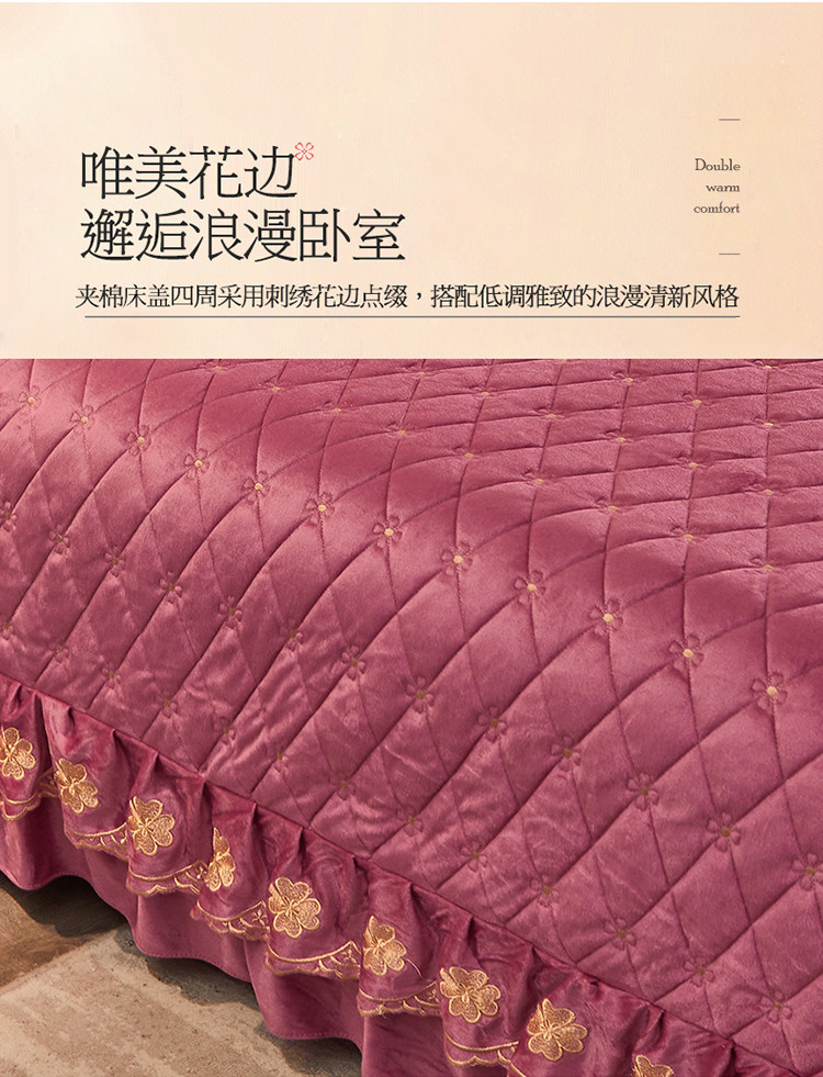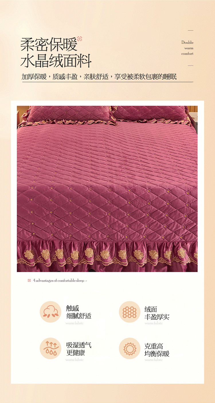 (总)恒爱 2022秋冬水晶绒翩翩花舞夹棉床裙四件套,大红色,豆沙红,橄榄绿,公主粉,桔色,咖啡色,孔雀绿,拉菲红,罗兰紫,玫红色,美人玉,米白色,米驼色,抹茶绿,浅灰色,紫色