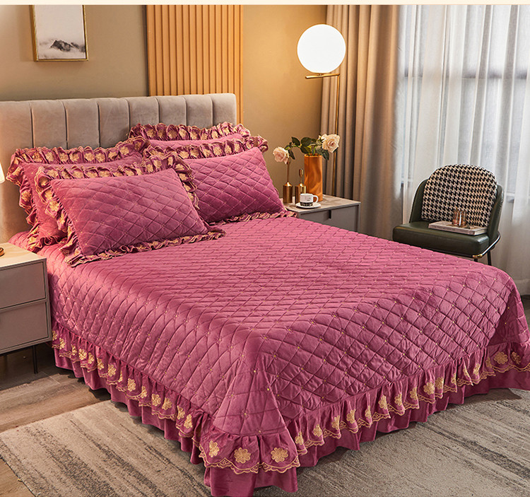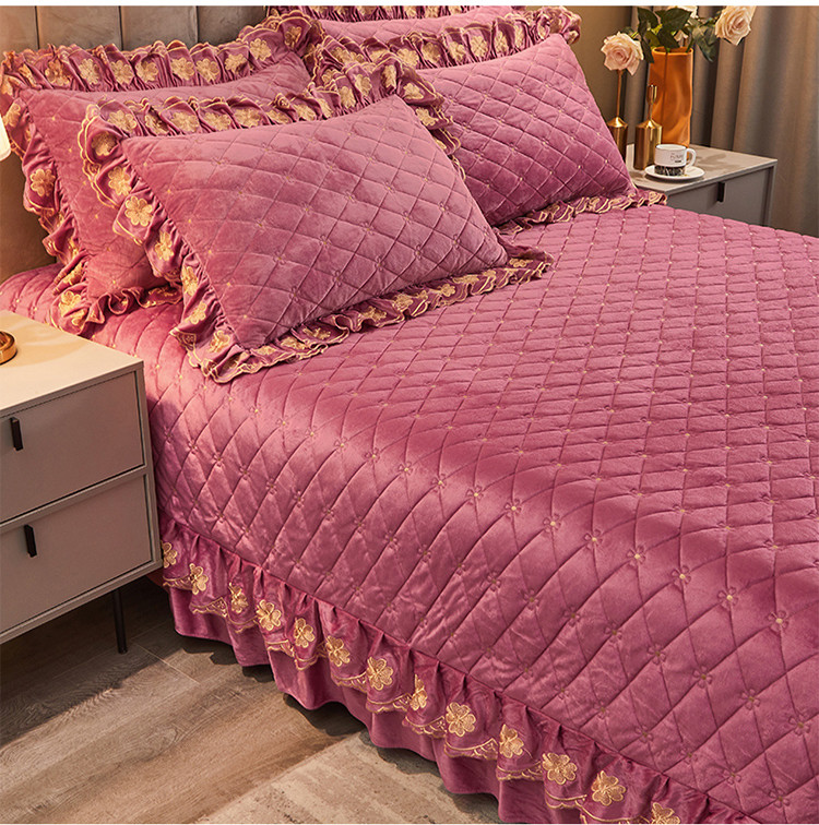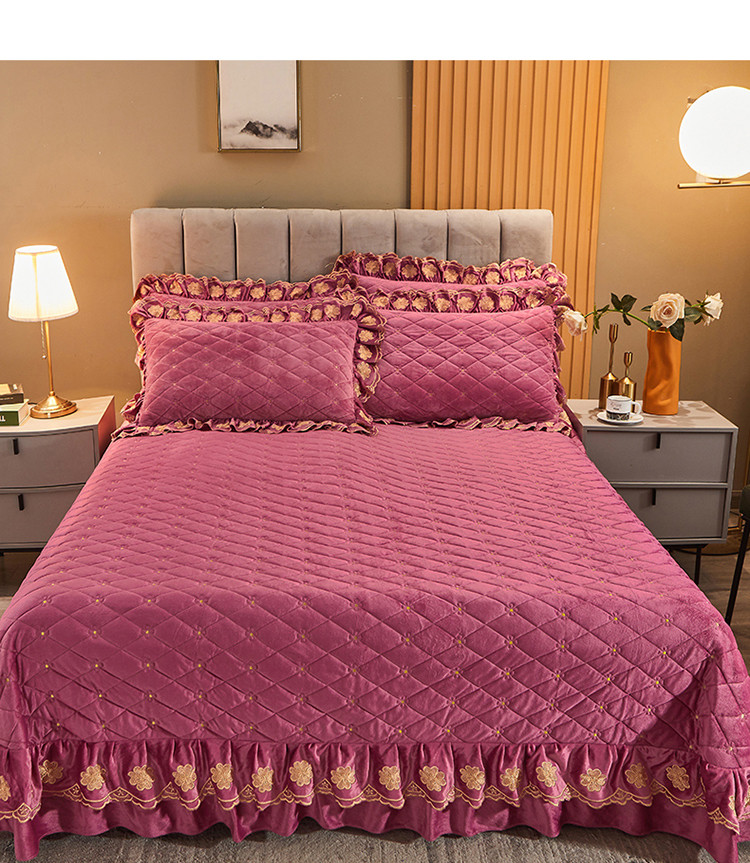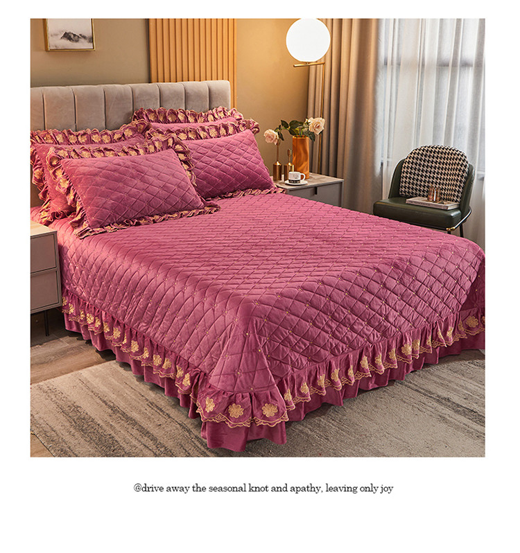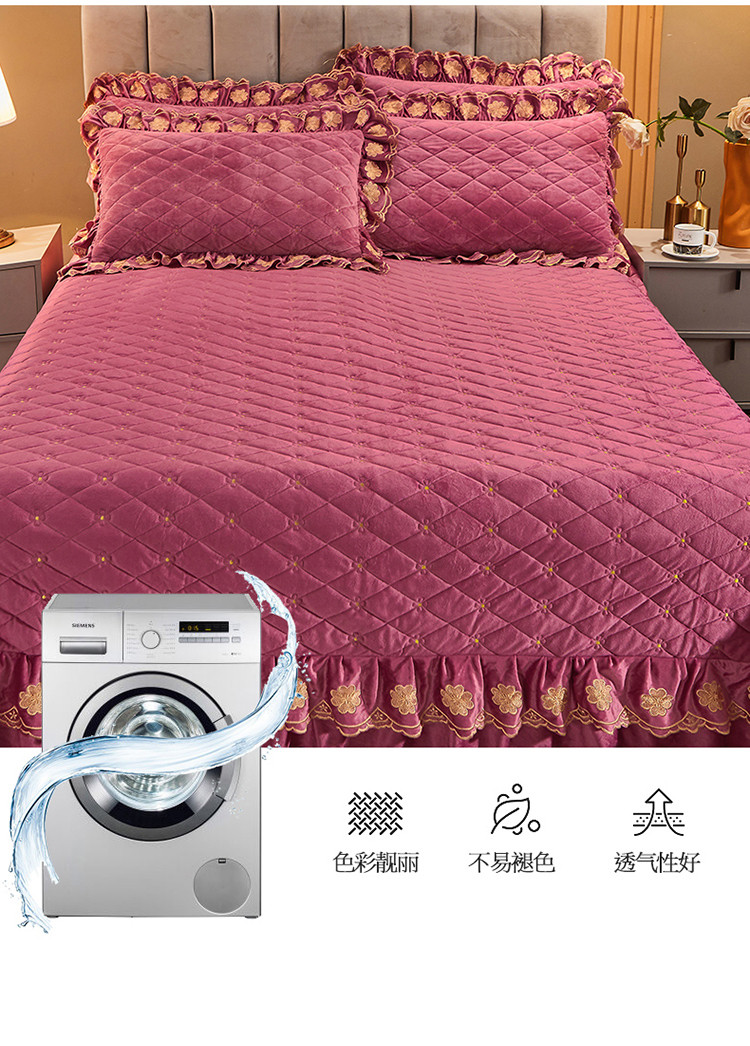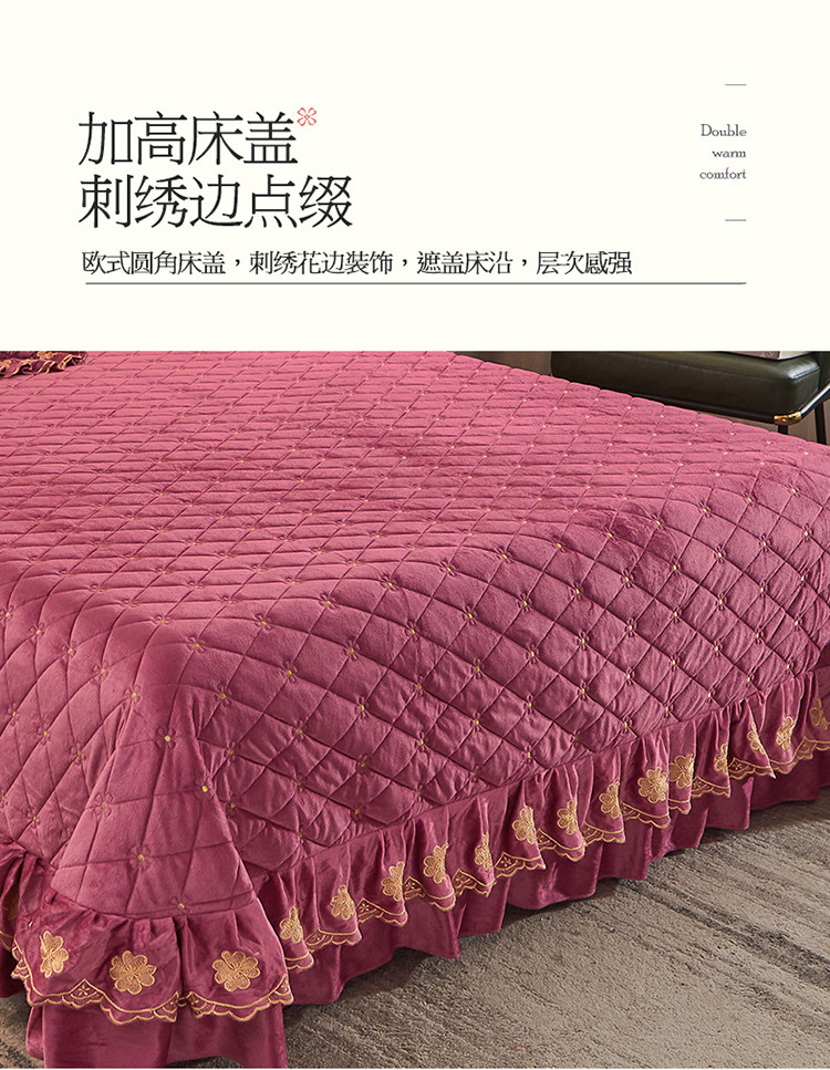 (总)恒爱 2022秋冬水晶绒翩翩花舞夹棉床裙四件套,大红色,豆沙红,橄榄绿,公主粉,桔色,咖啡色,孔雀绿,拉菲红,罗兰紫,玫红色,美人玉,米白色,米驼色,抹茶绿,浅灰色,紫色
