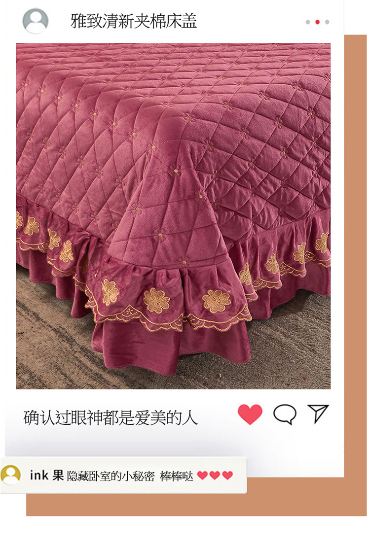 (总)恒爱 2022秋冬水晶绒翩翩花舞夹棉单床裙,大红色,豆沙红,橄榄绿,公主粉,桔色,咖啡色,孔雀绿,拉菲红,罗兰紫,玫红色,美人玉,米白色,米驼色,抹茶绿,浅灰色,紫色