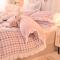 欧冠家纺 2021新款保暖牛奶绒单被套 粉-格子