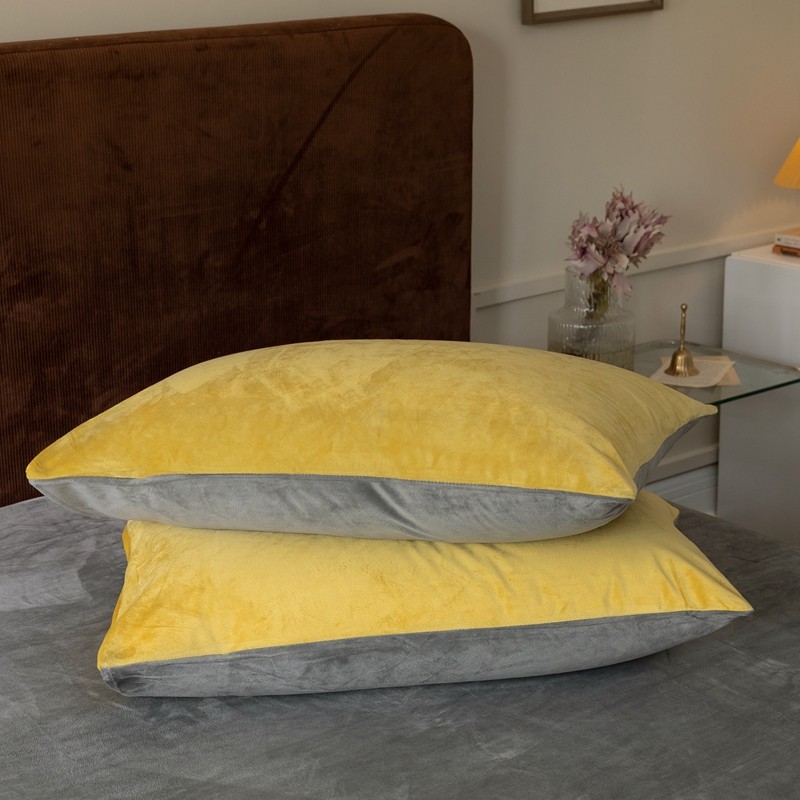 • 91家纺网 家纺一手货源 找家纺 寐眠2021新款天鹅绒枕套48*74cm一对 姜黄+深灰