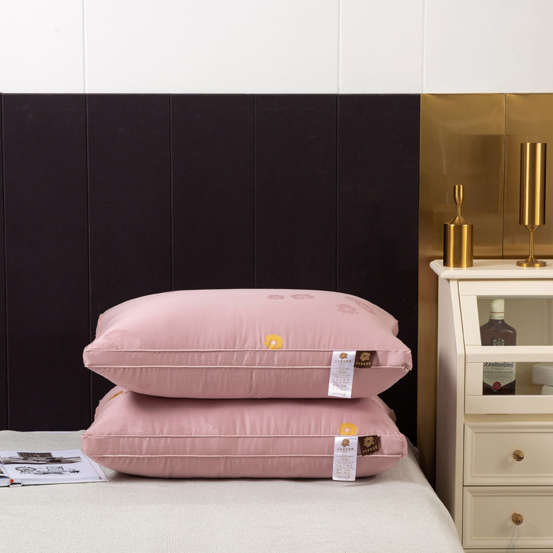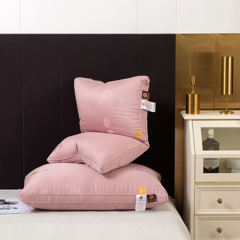 其乐枕芯 2021新款贡缎提花枕 洋甘菊-豆沙粉