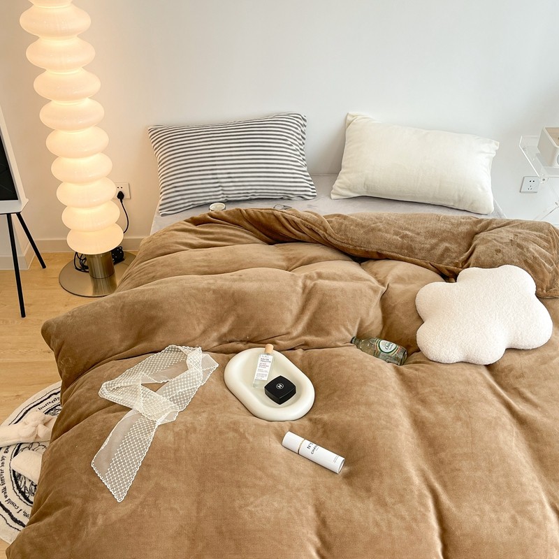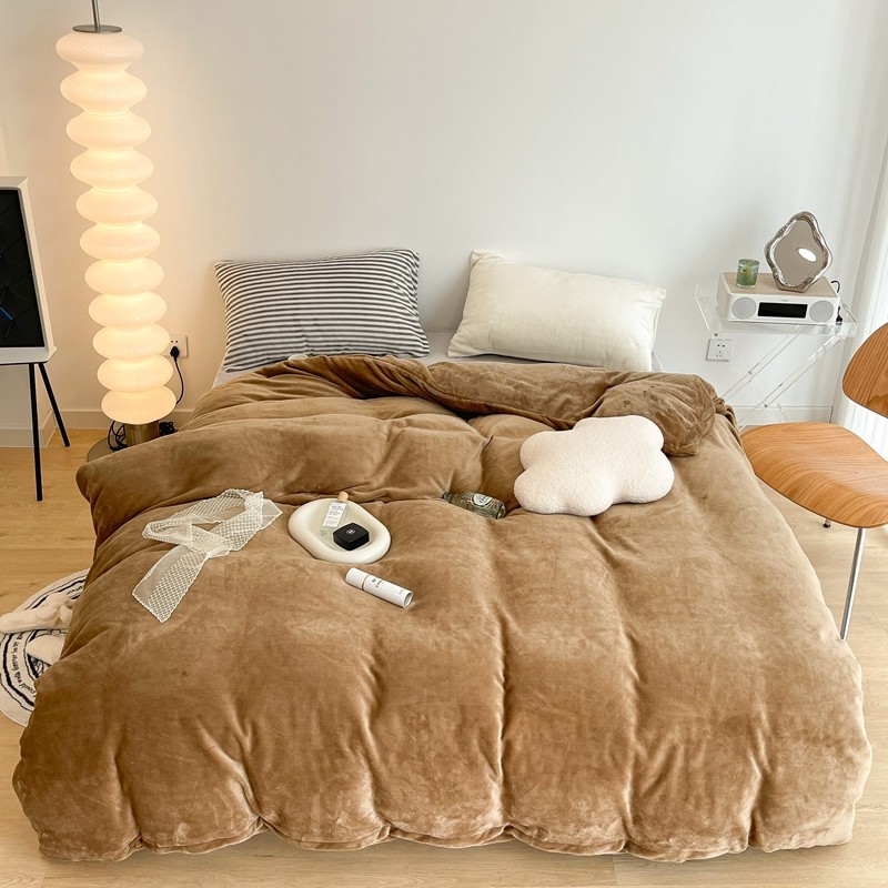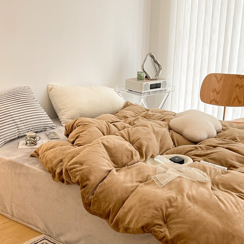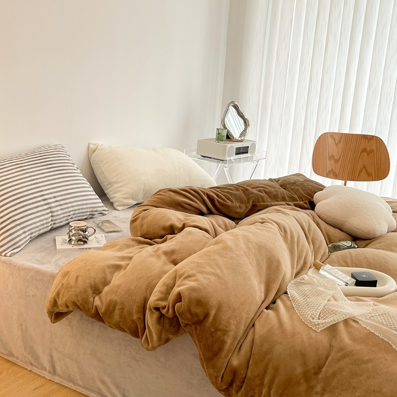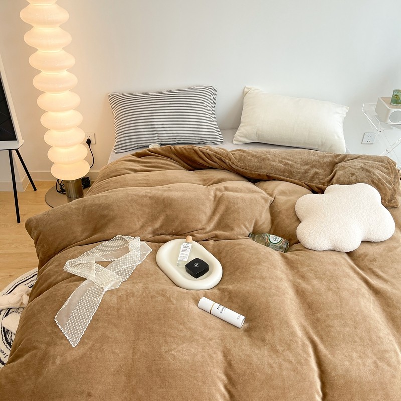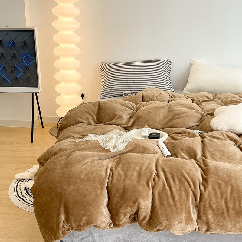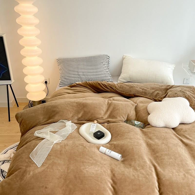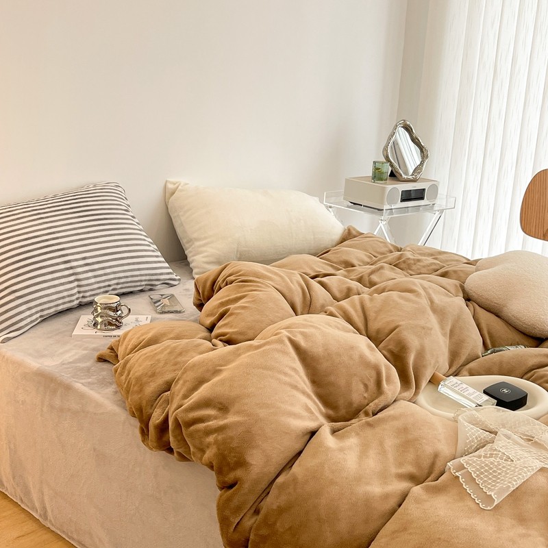 昔可家纺 2021新款撞色牛奶绒四件套 复古棕