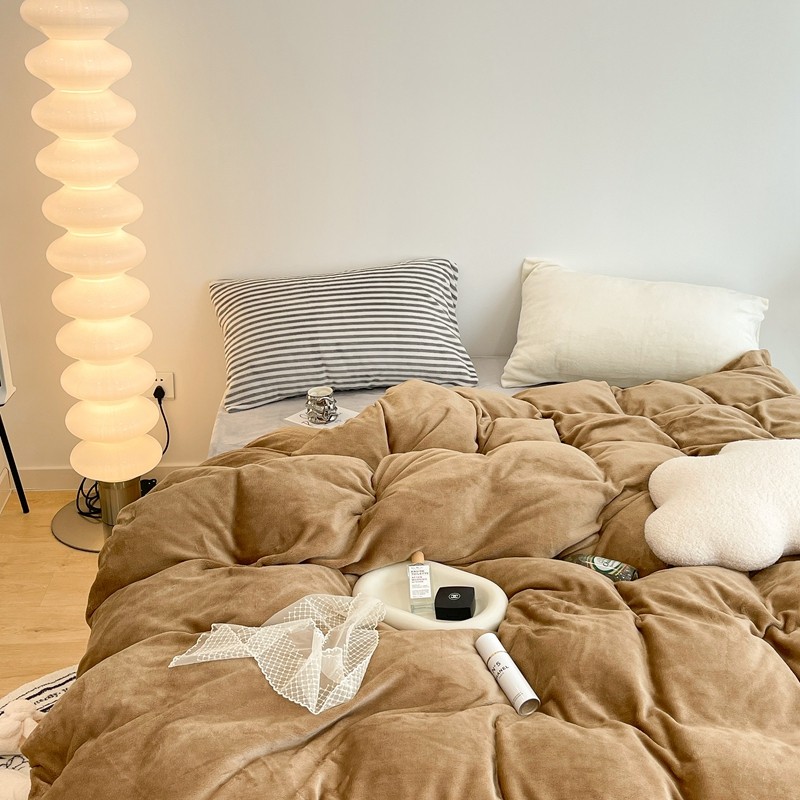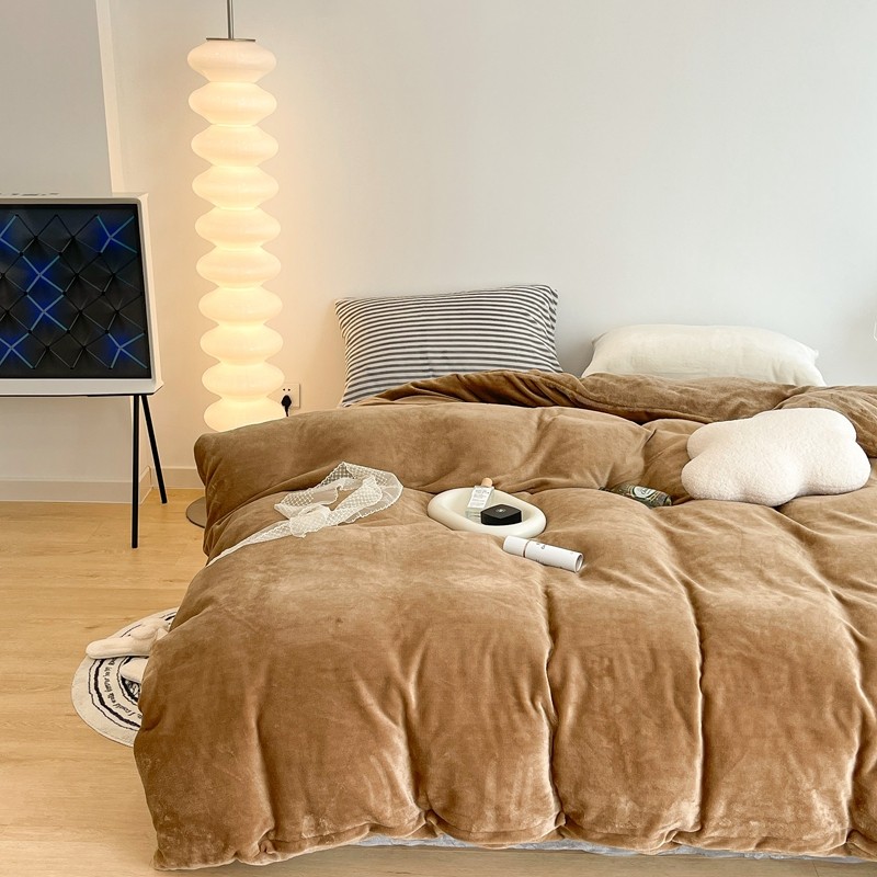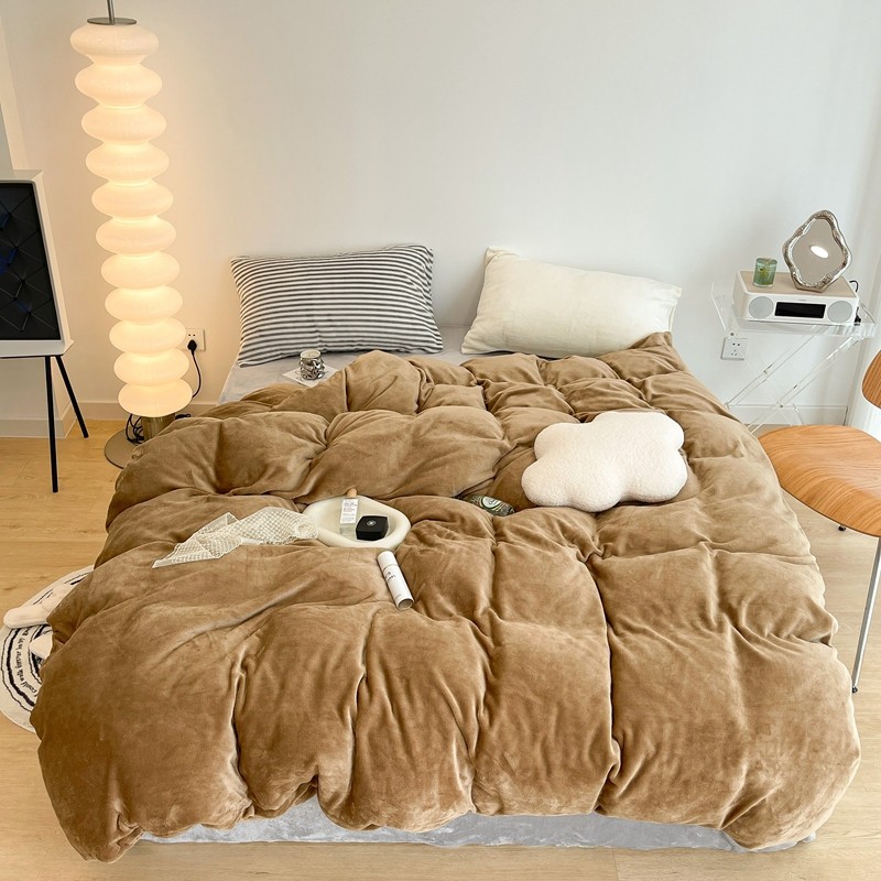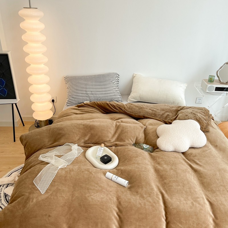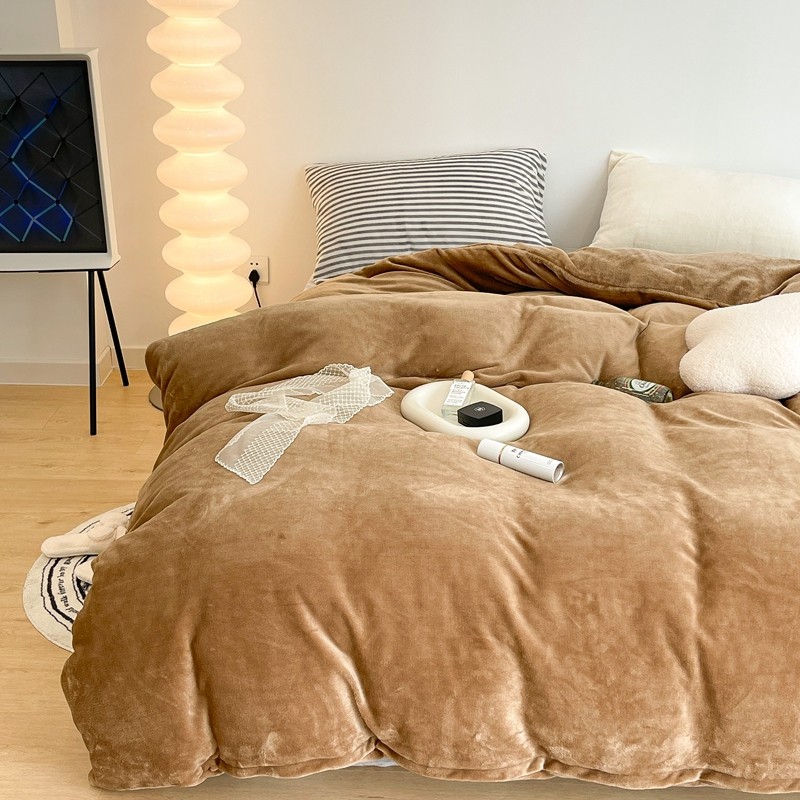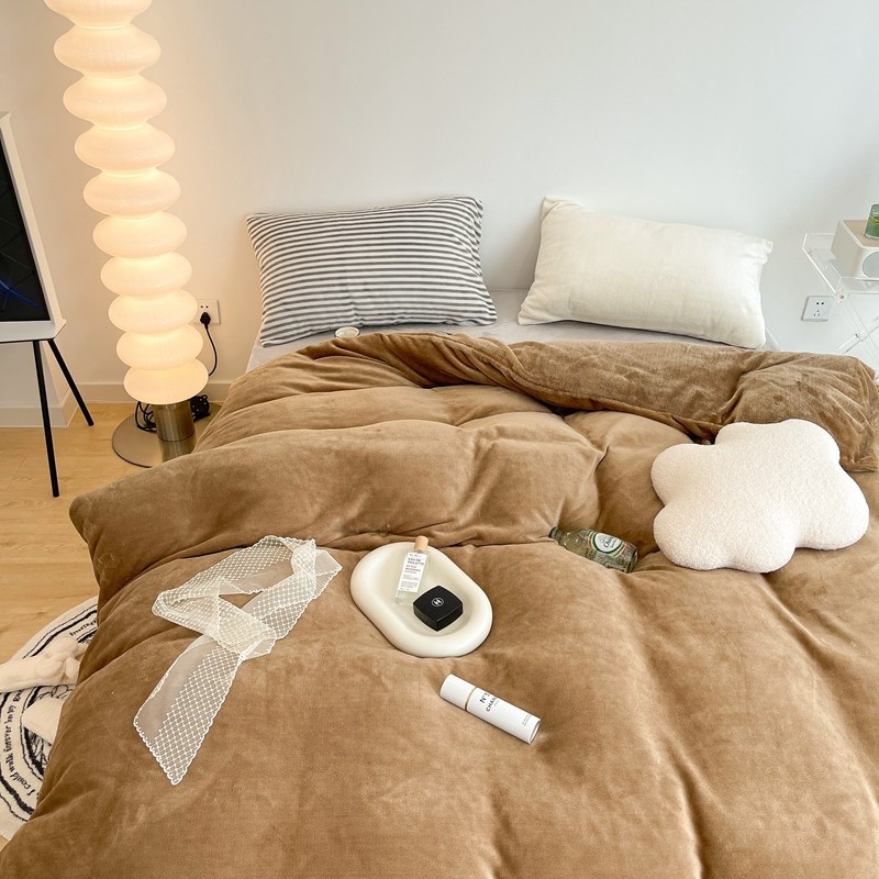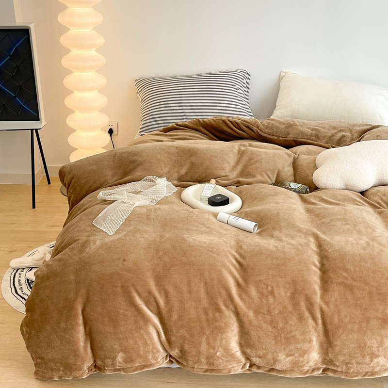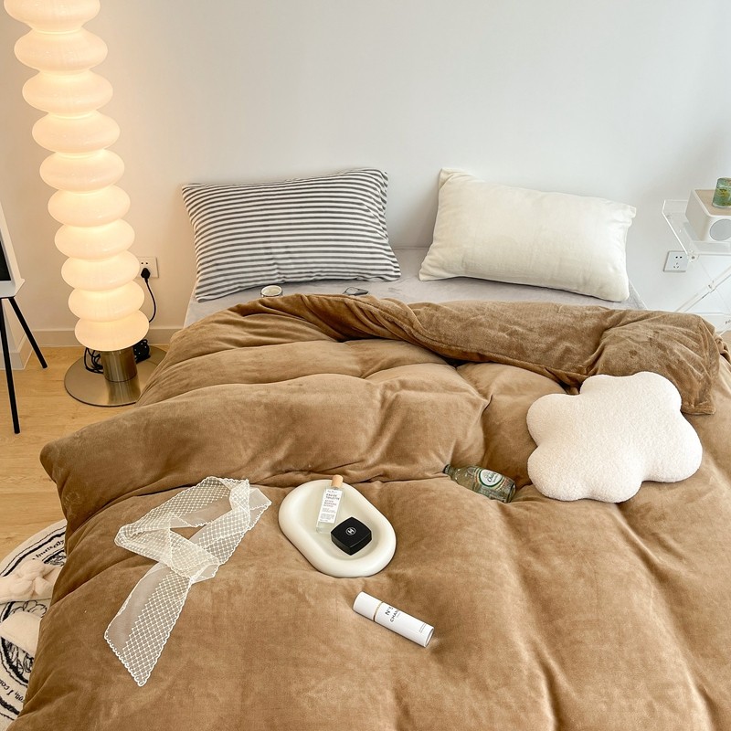 昔可家纺 2021新款撞色牛奶绒四件套 复古棕