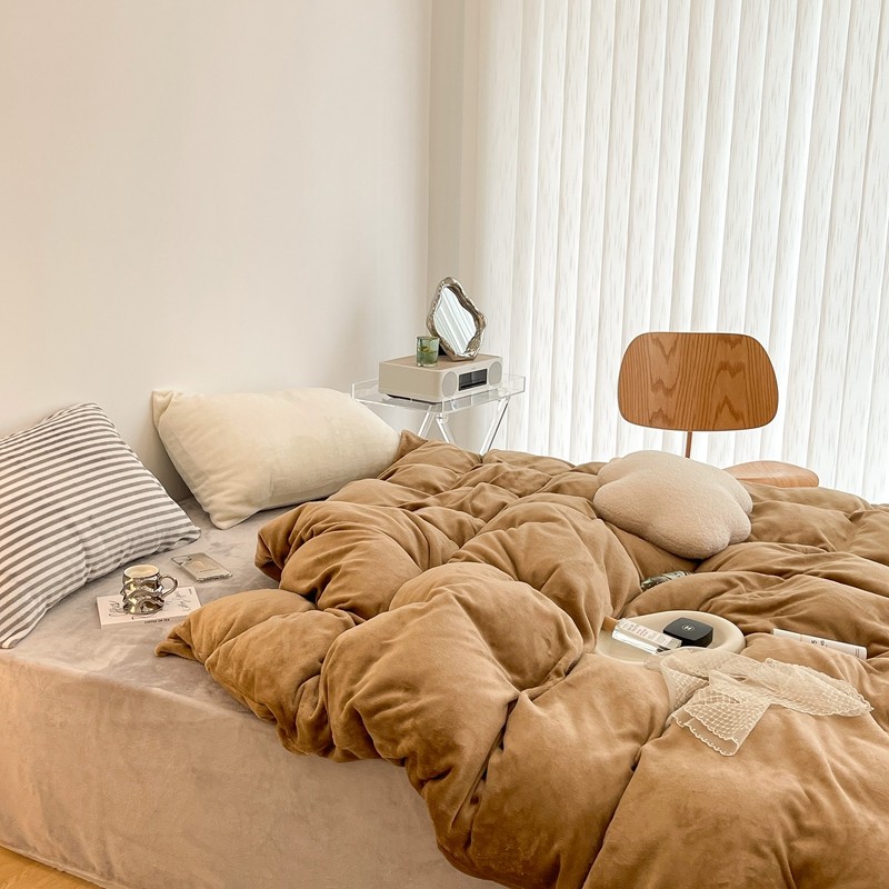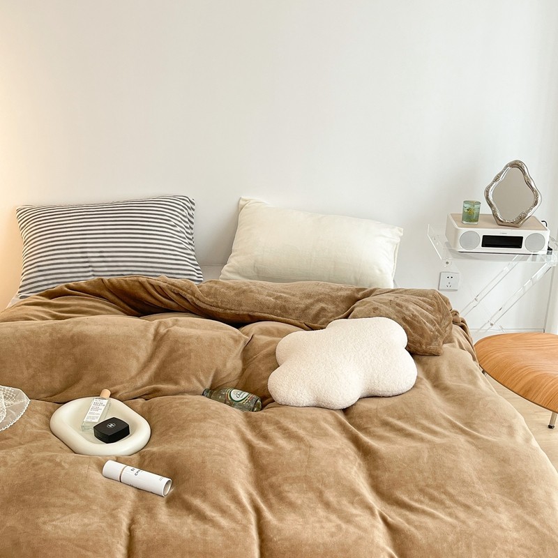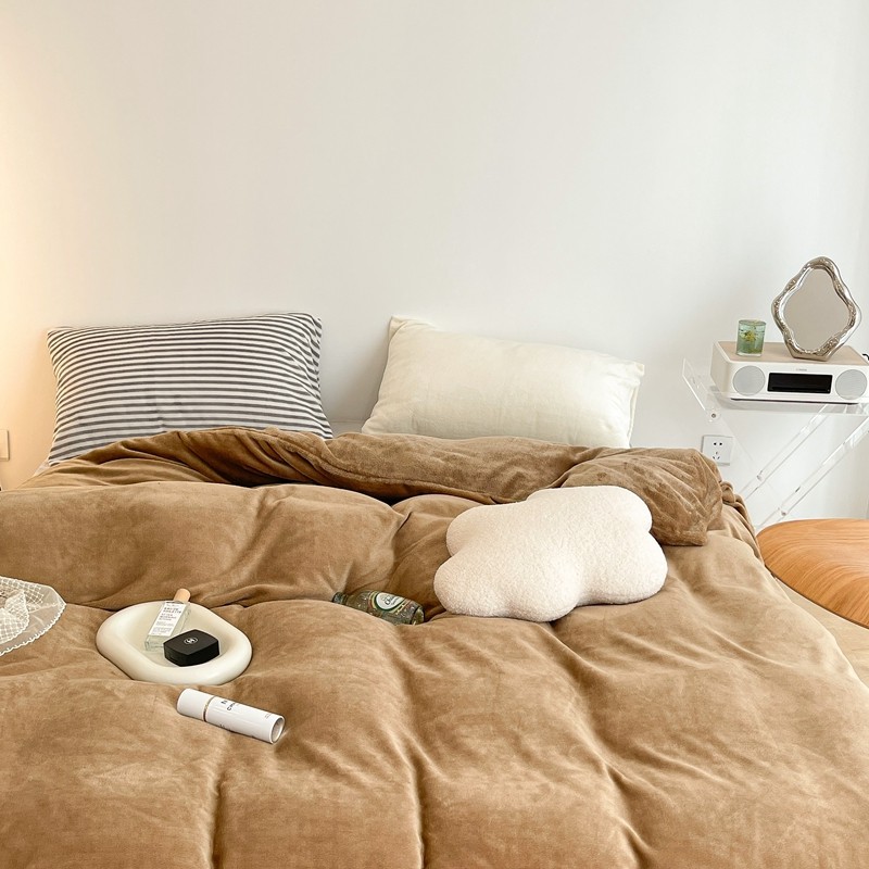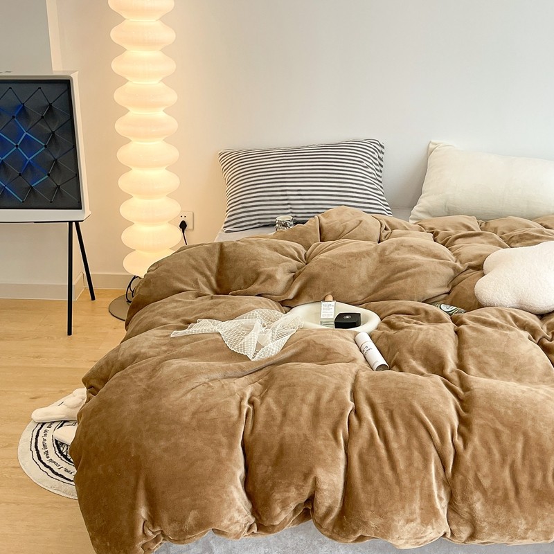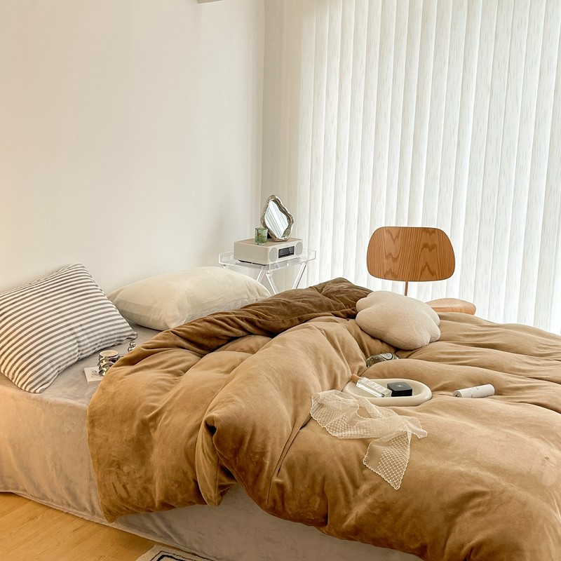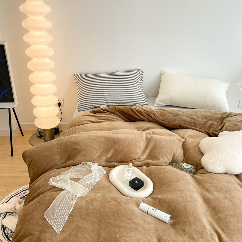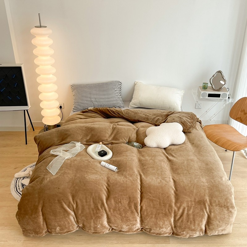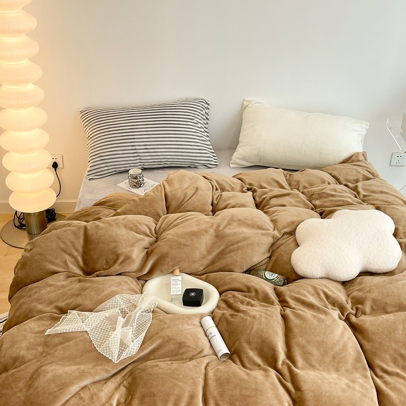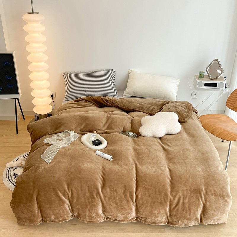 昔可家纺 2021新款撞色牛奶绒四件套 复古棕