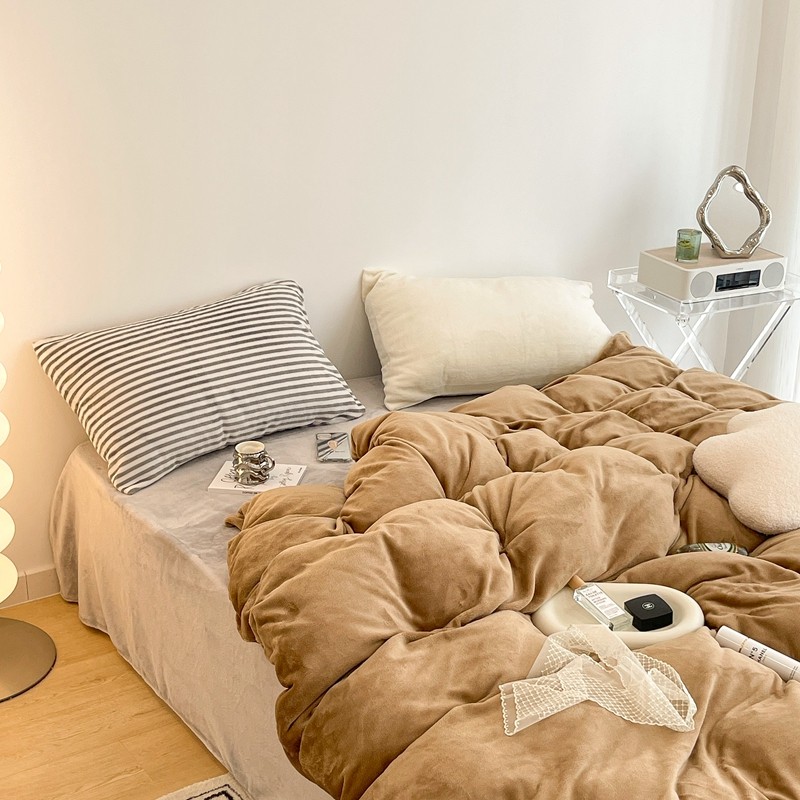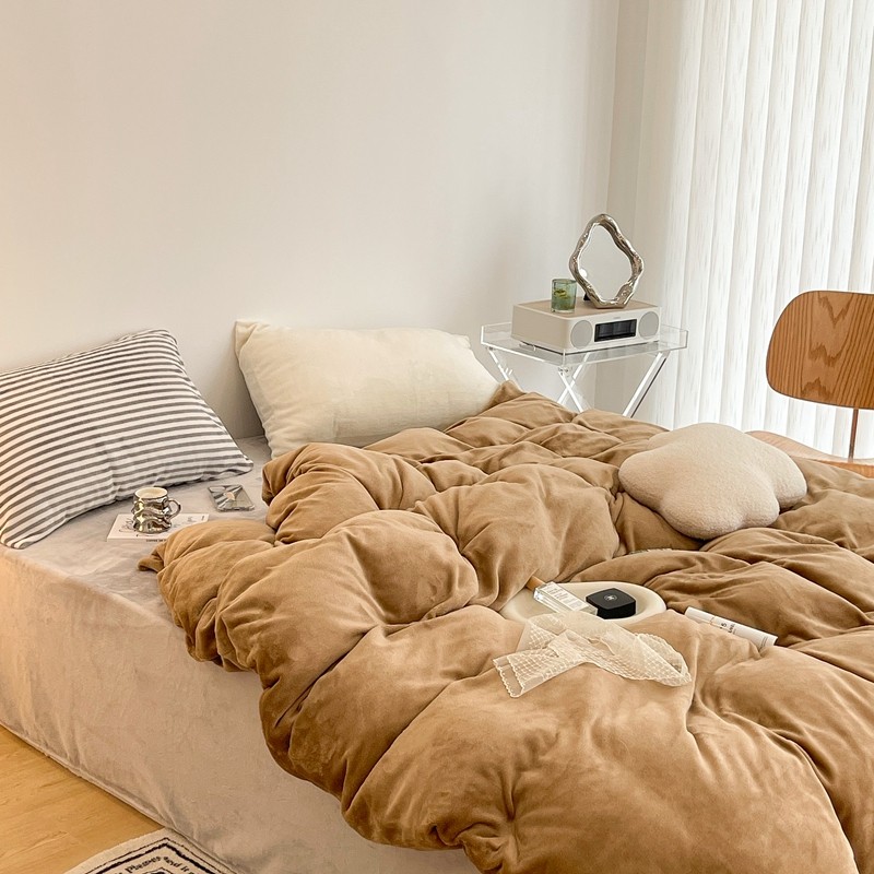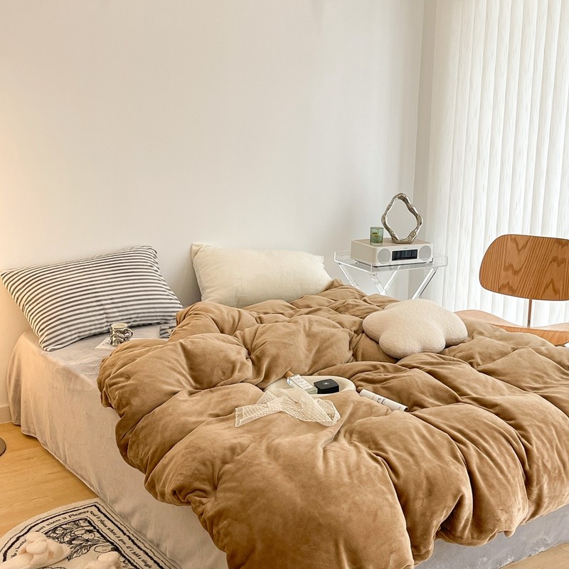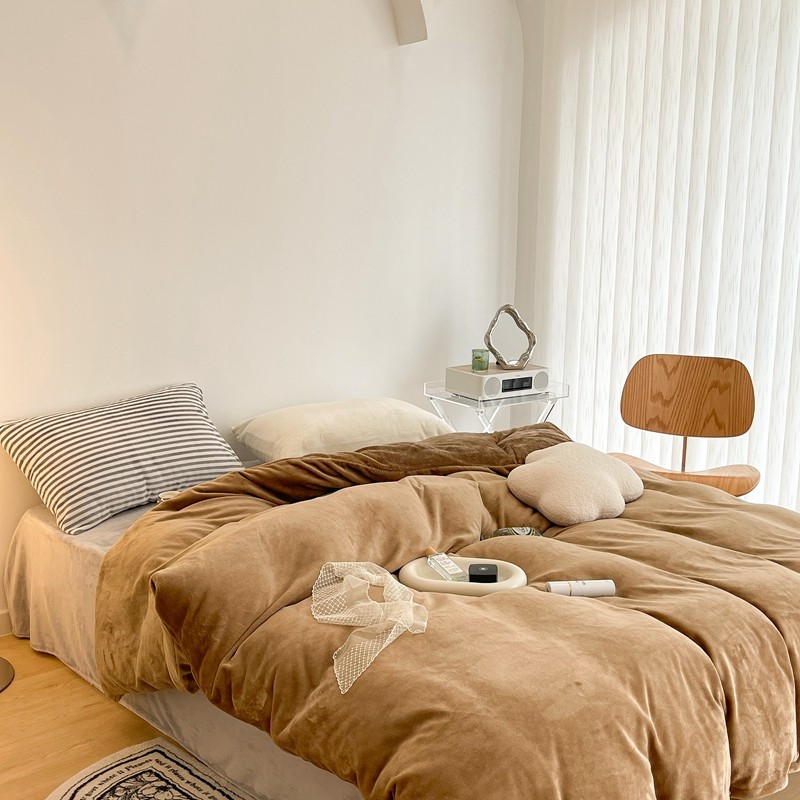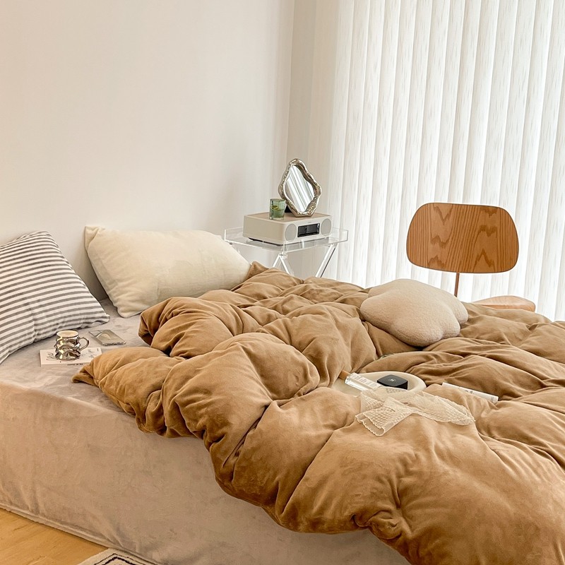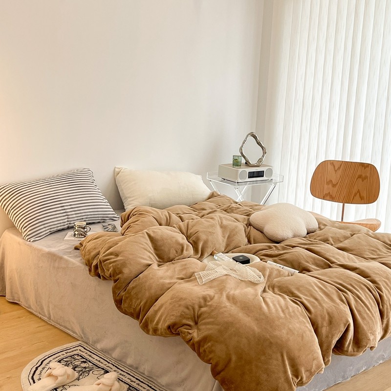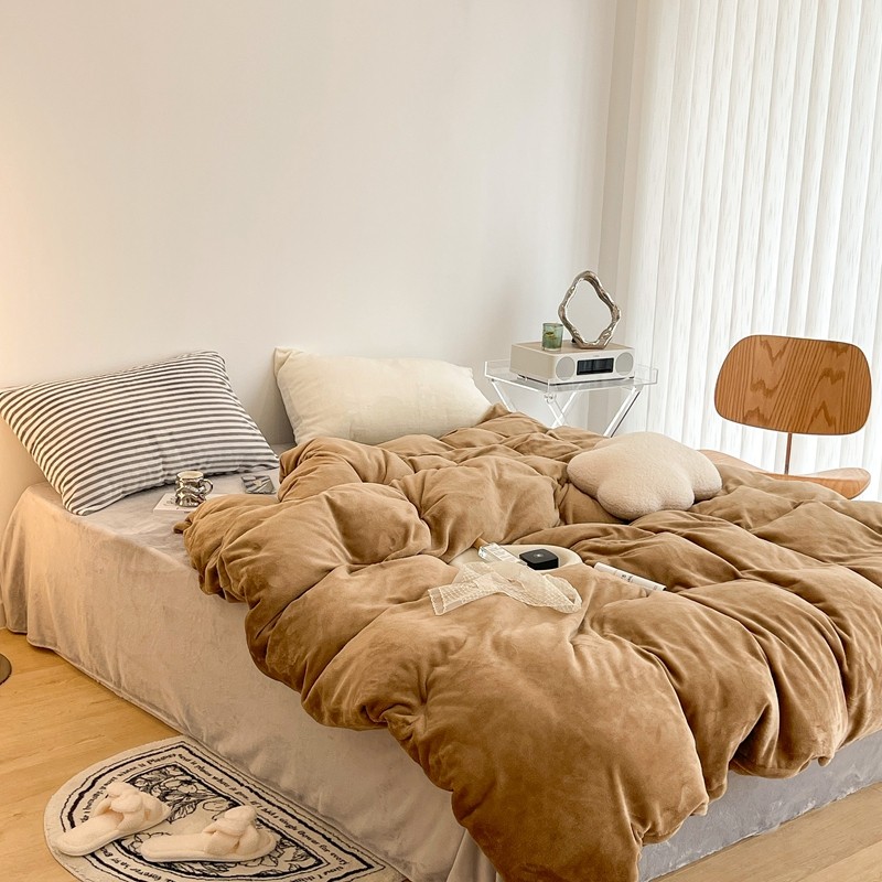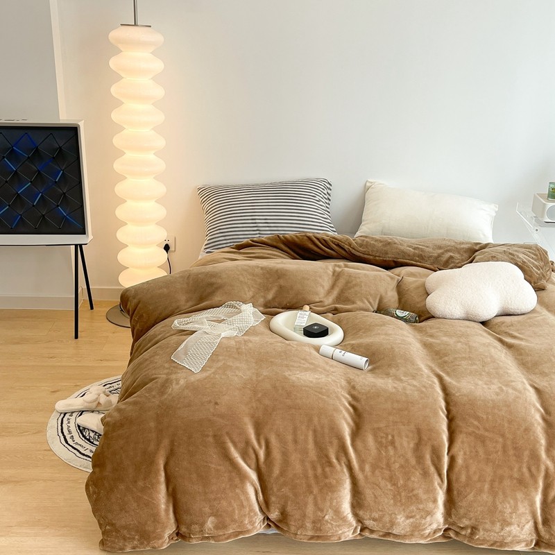 昔可家纺 2021新款撞色牛奶绒四件套 复古棕
