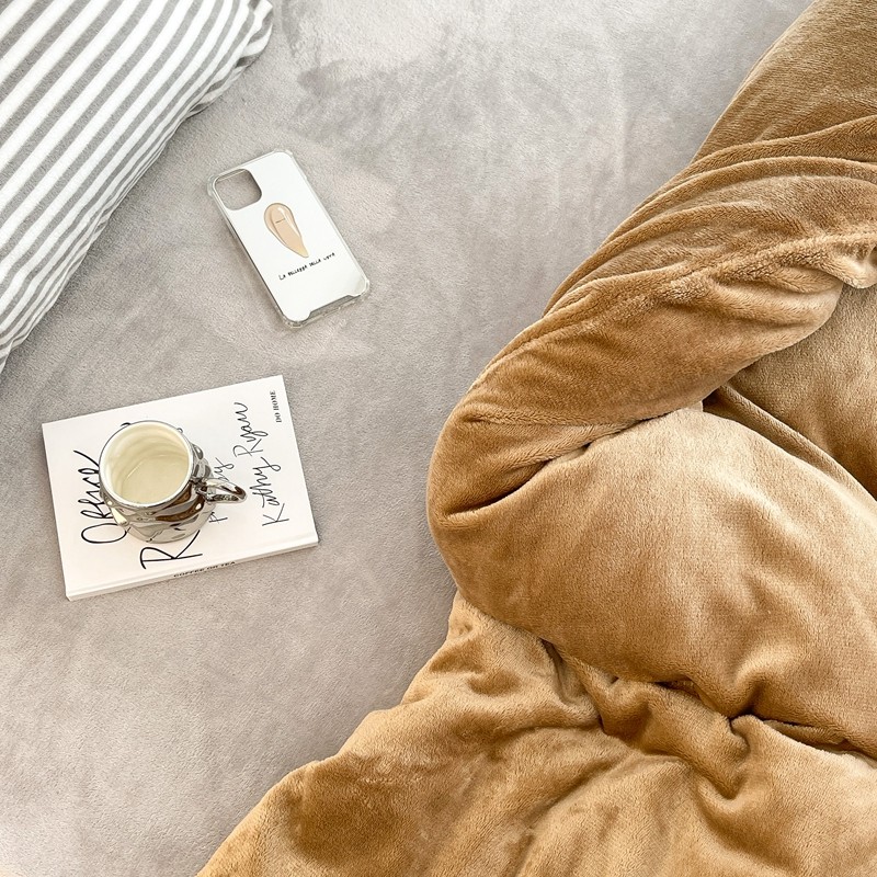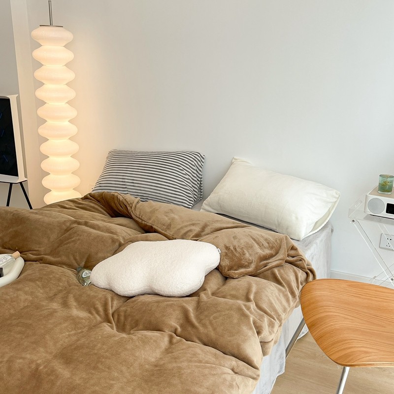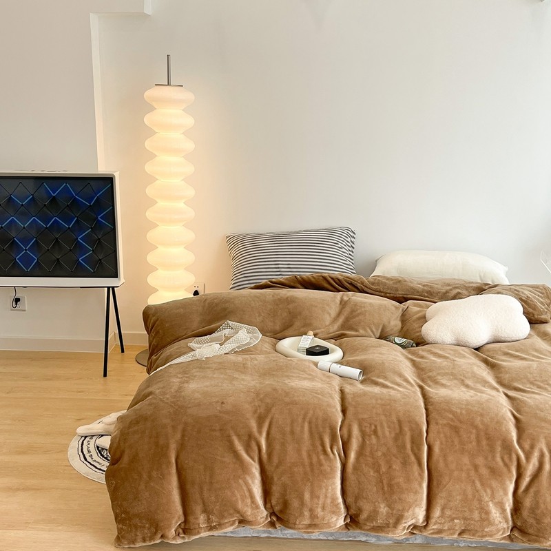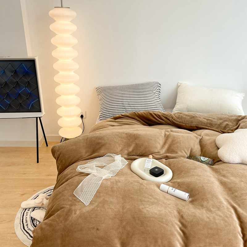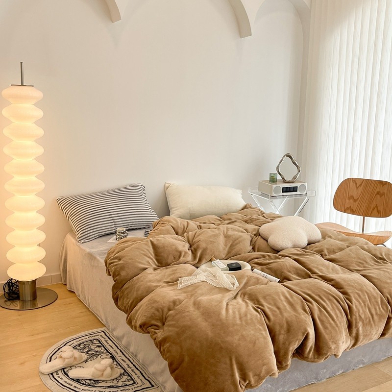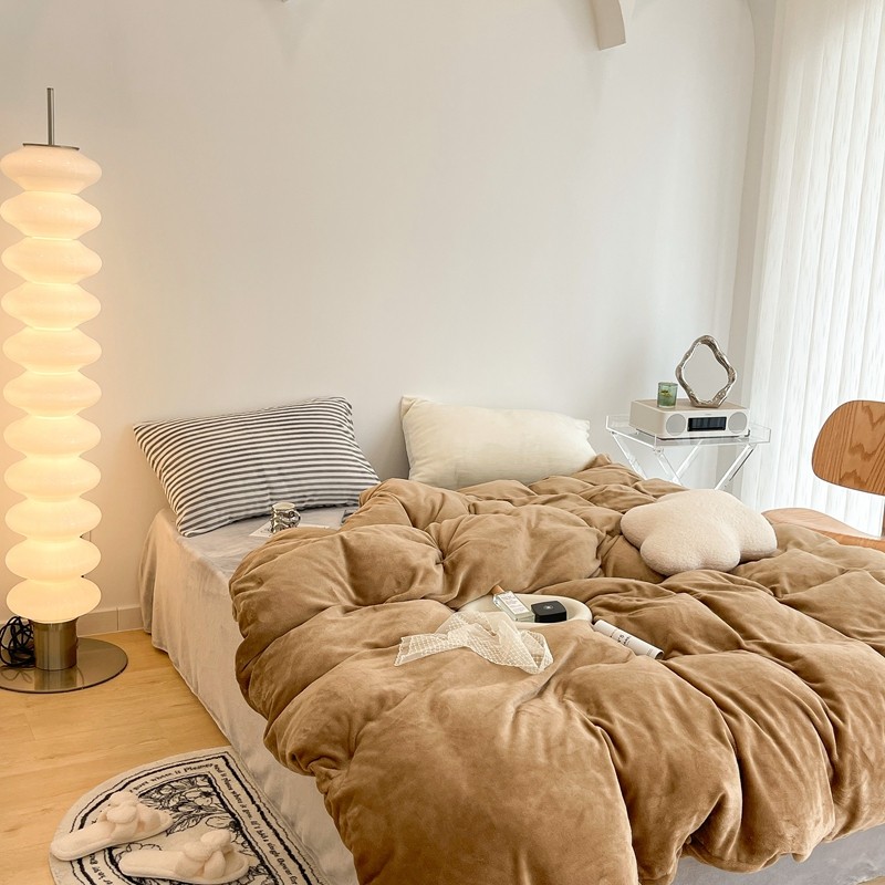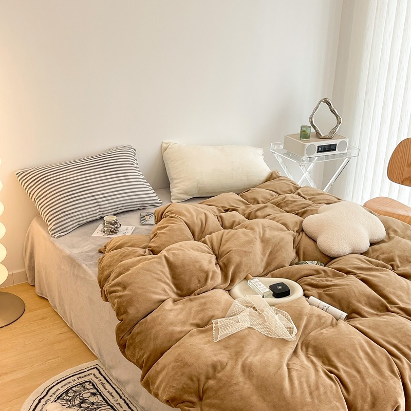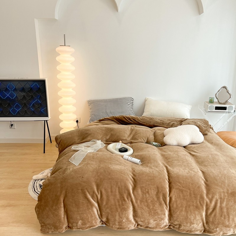 昔可家纺 2021新款撞色牛奶绒四件套 复古棕
