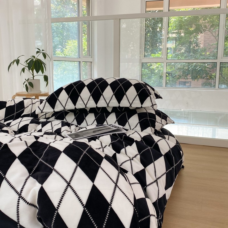 昔可家纺 2021新款牛奶绒四件套第二组图 香香菱格