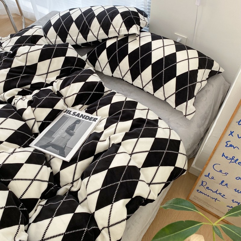 商品名称:昔可家纺 2021新款牛奶绒四件套第二组图 香香菱格