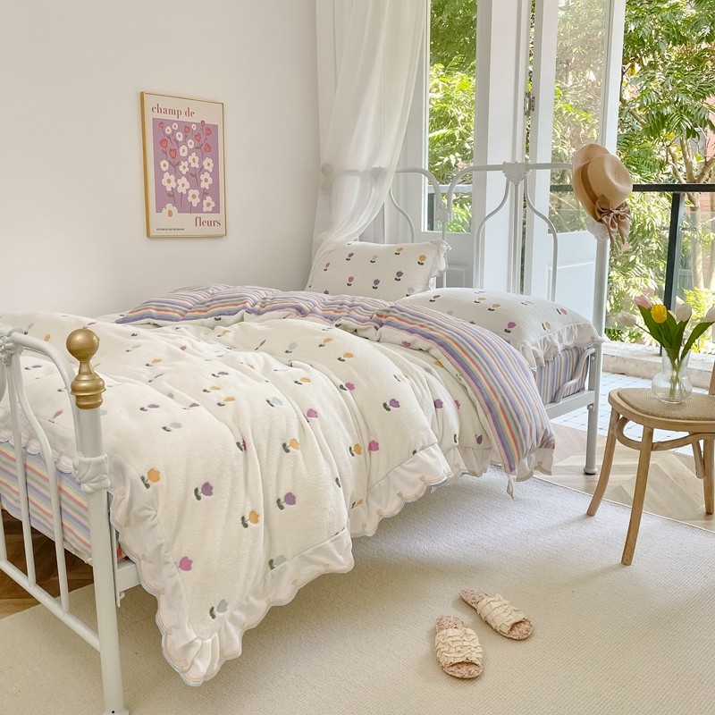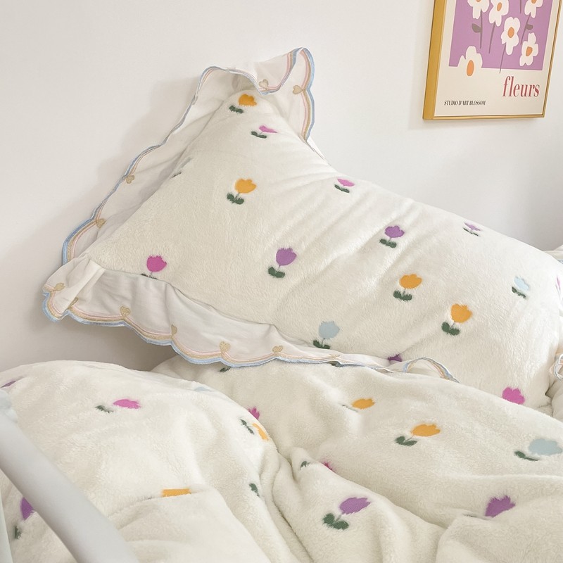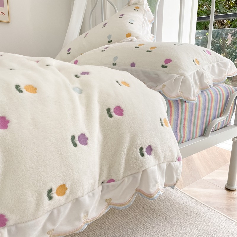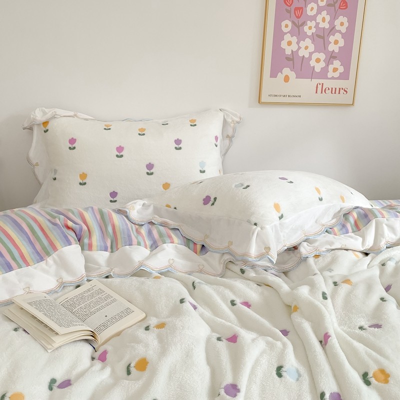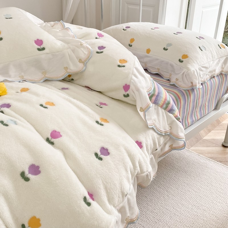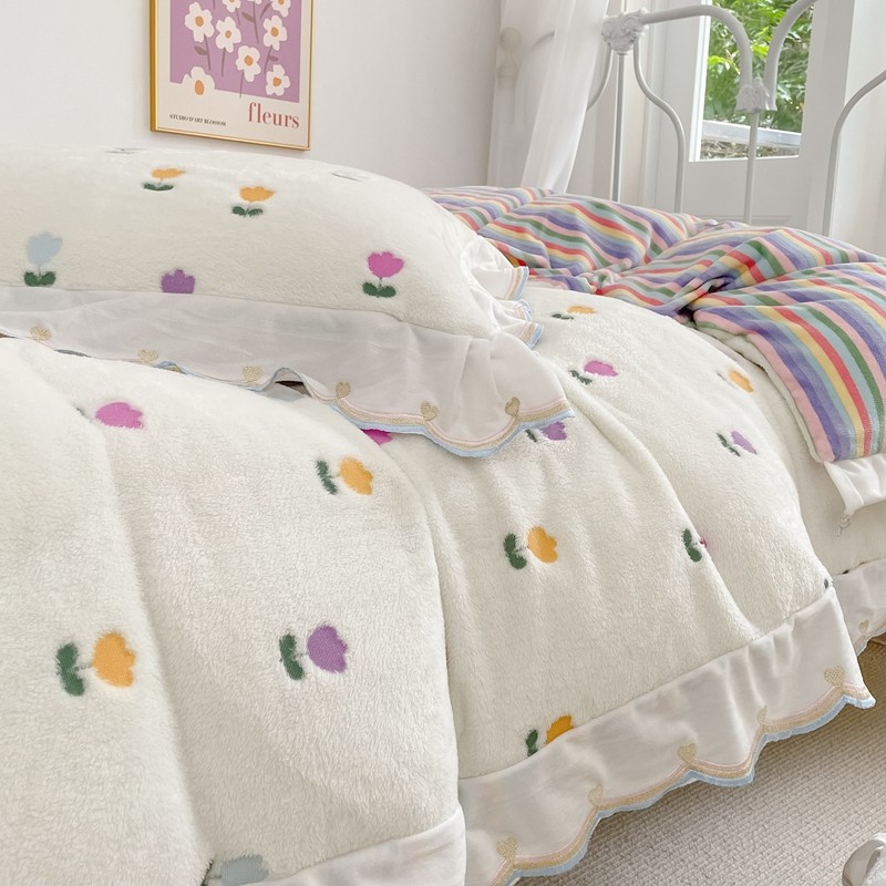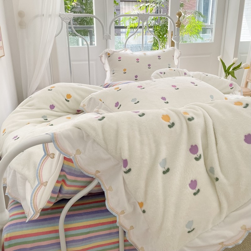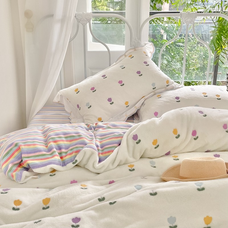 昔可家纺 2021新款coco雪貂绒四件套 小郁金香白
