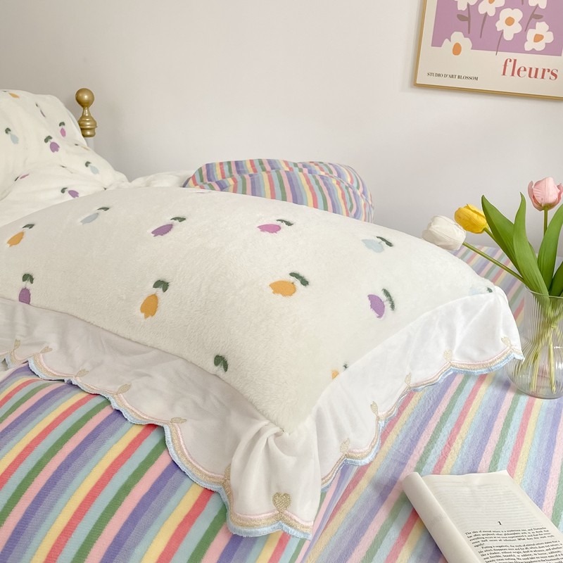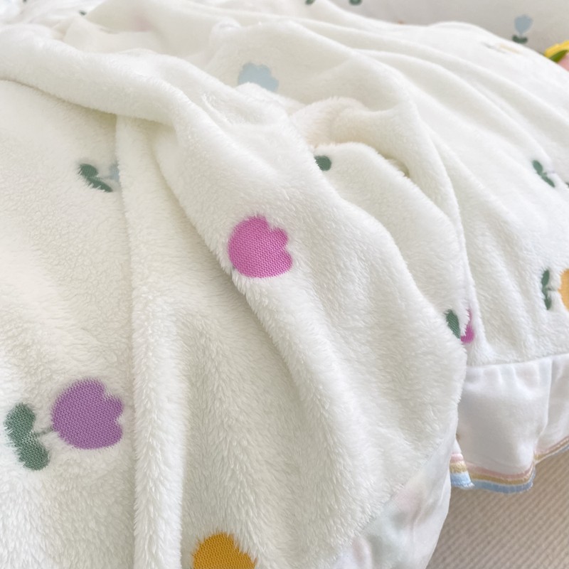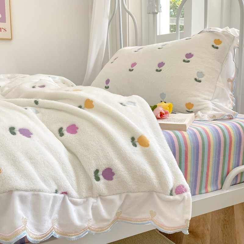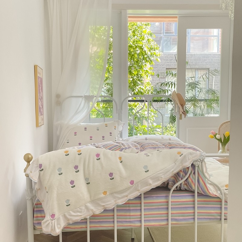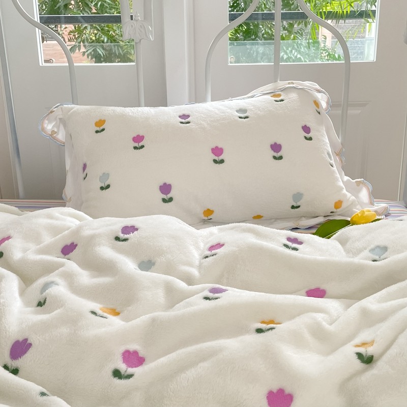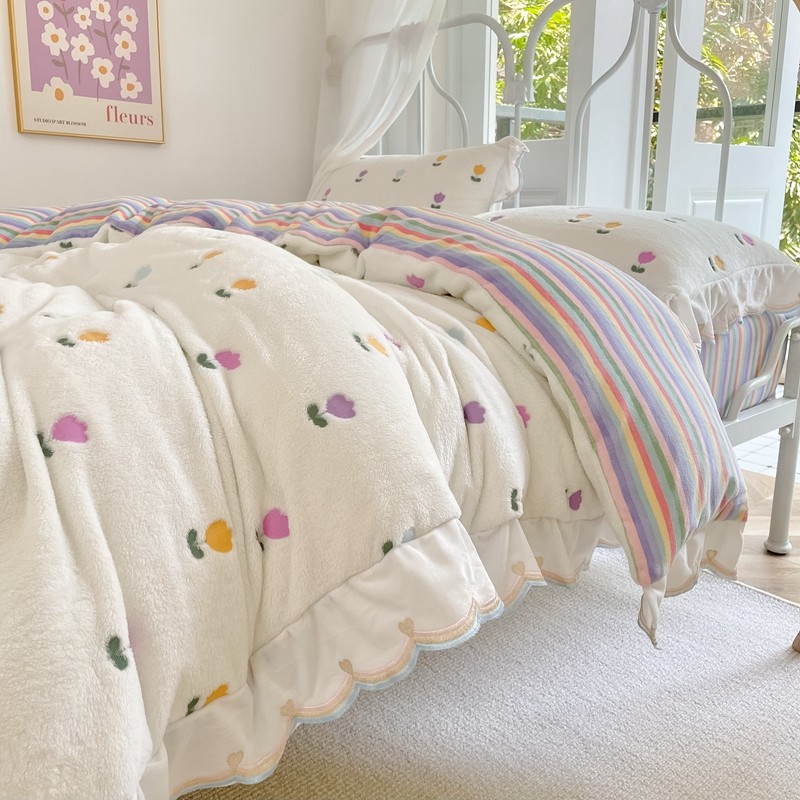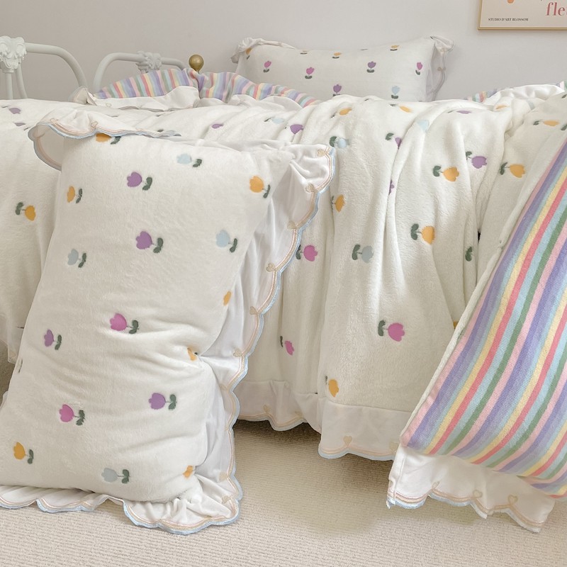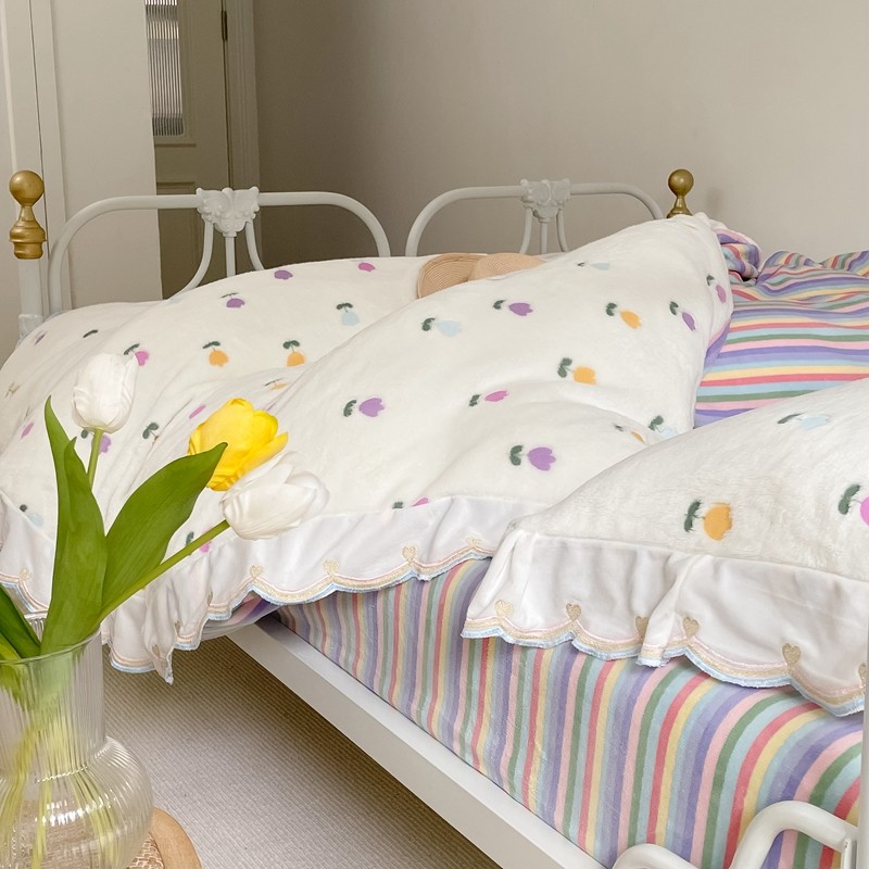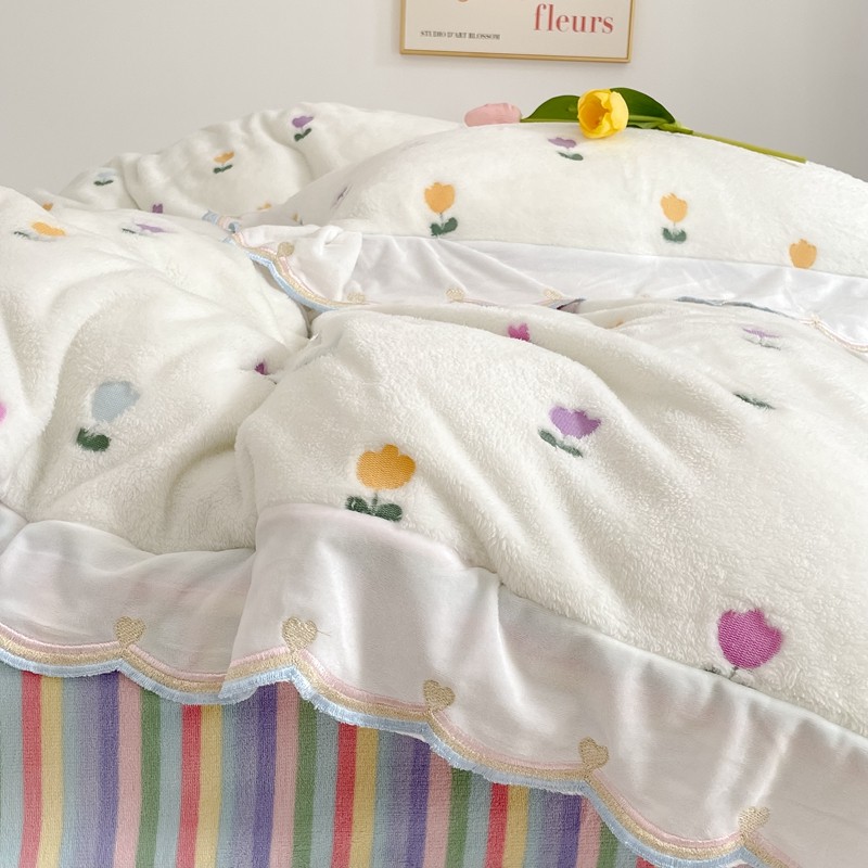 昔可家纺 2021新款coco雪貂绒四件套 小郁金香白