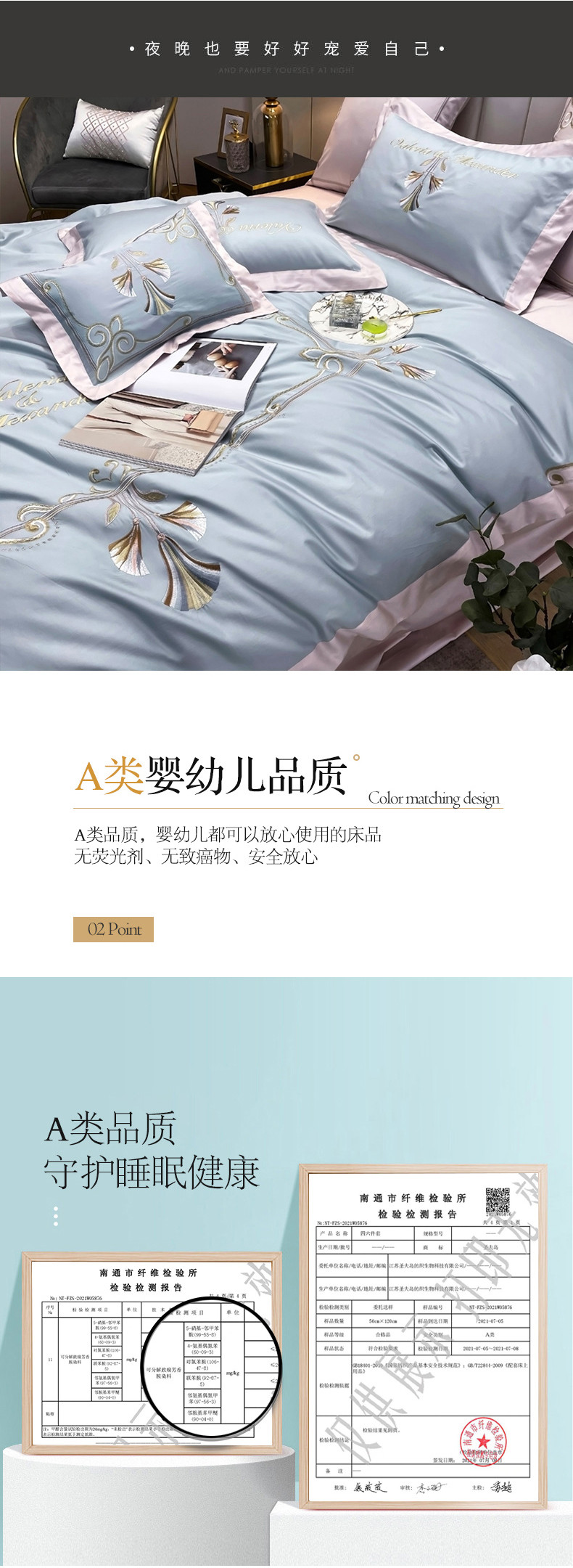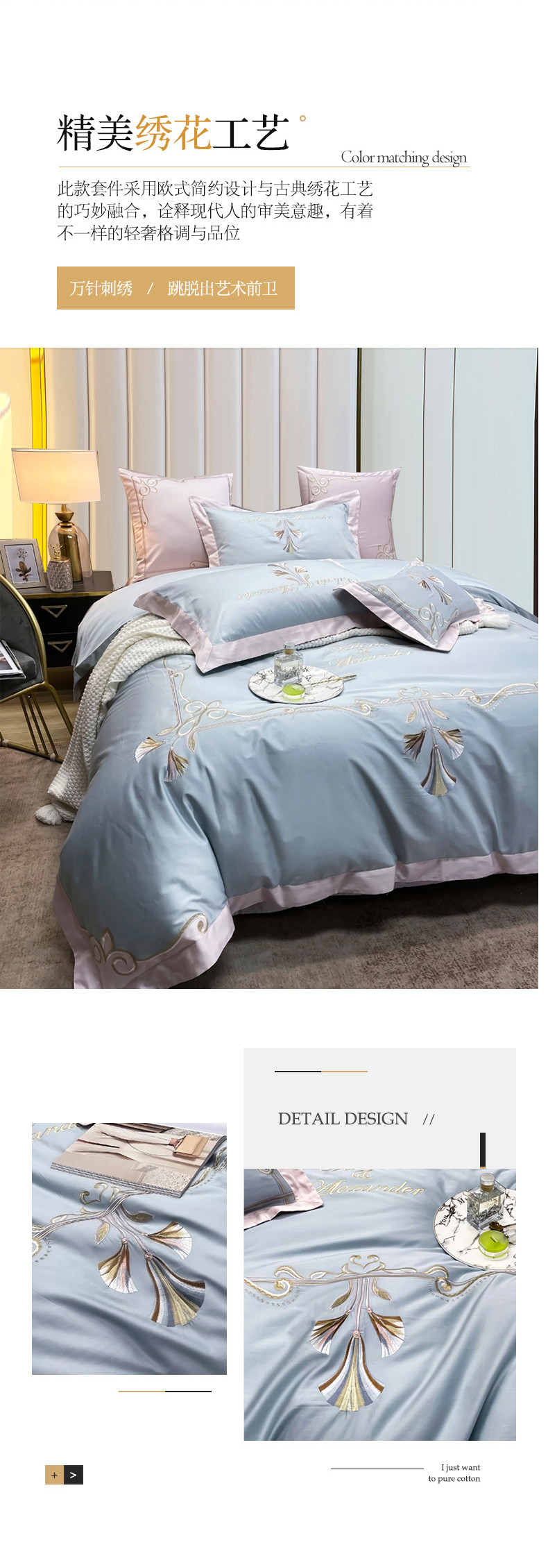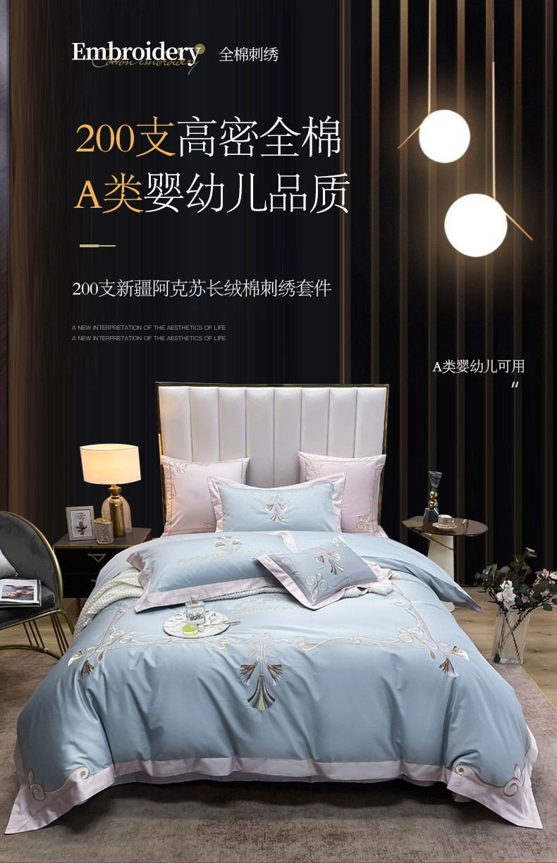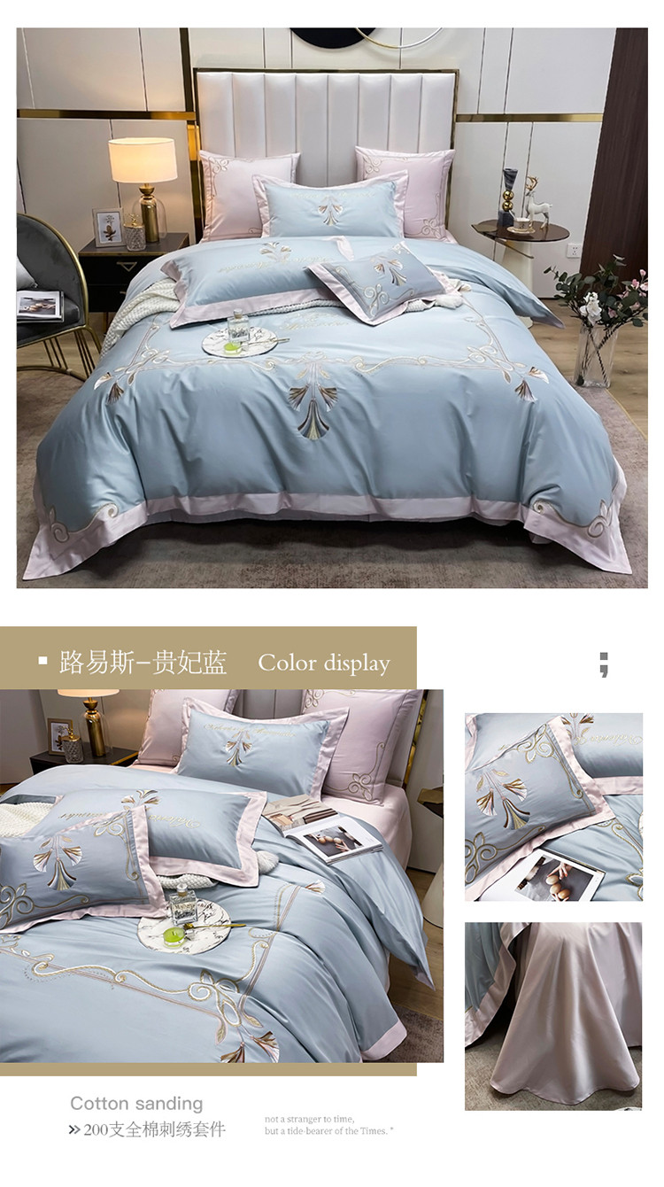 商品名称:家居1号2024新款新疆长绒棉刺绣四件套路易斯 路易斯-贵妃蓝