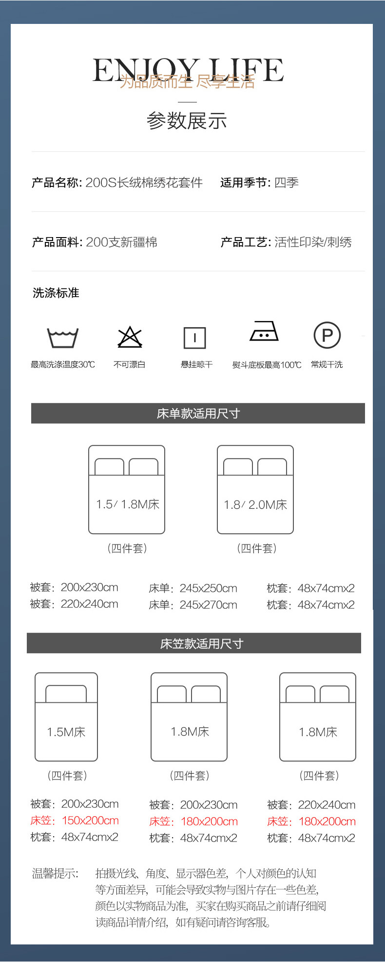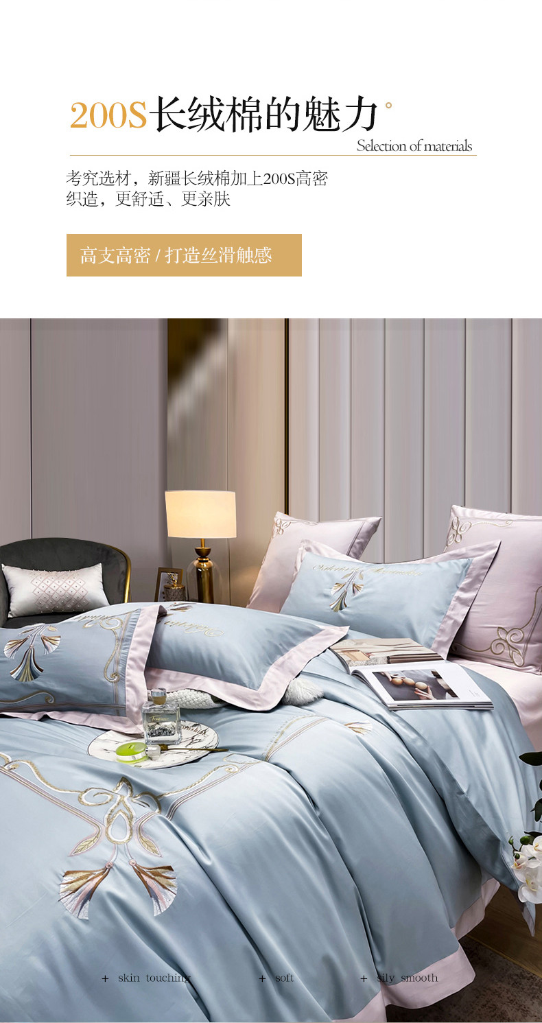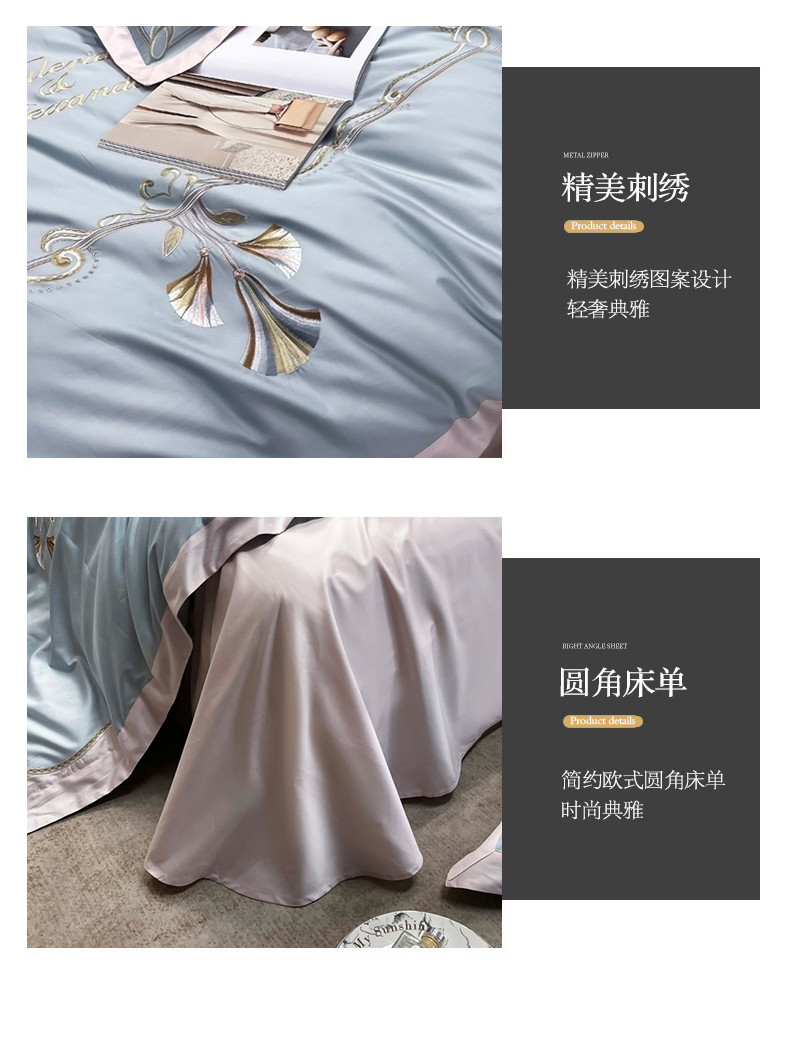 商品名称:家居1号2024新款新疆长绒棉刺绣四件套路易斯 路易斯-贵妃蓝