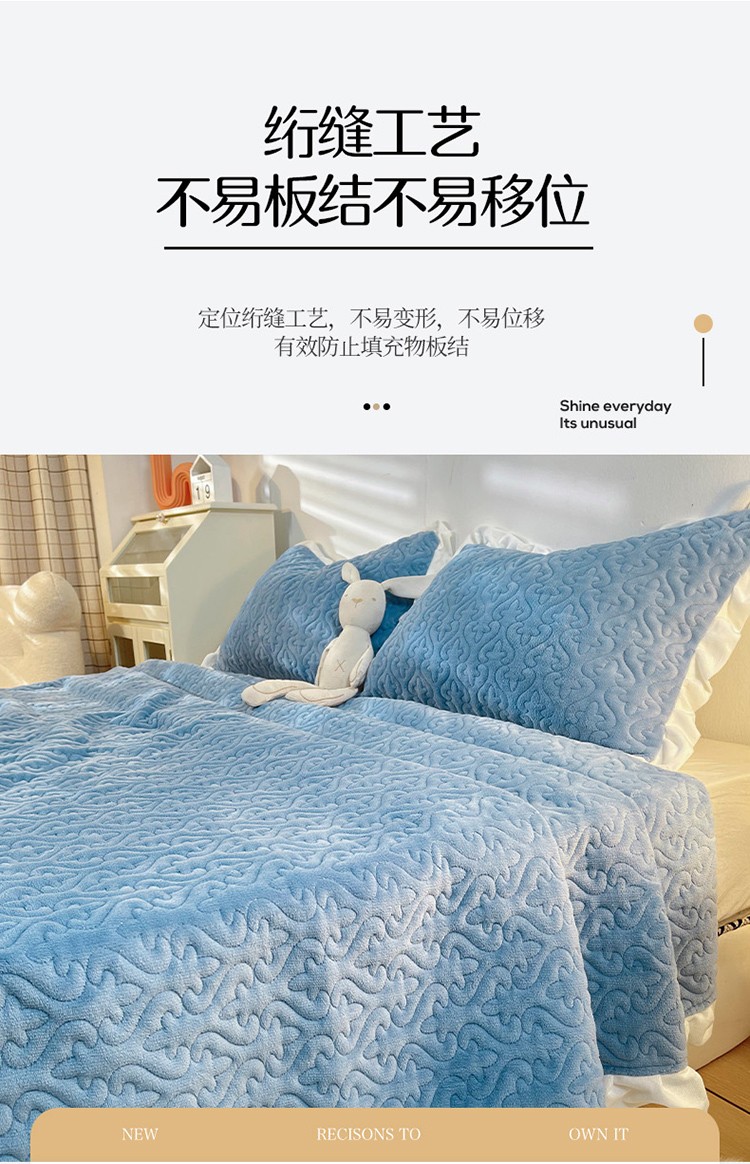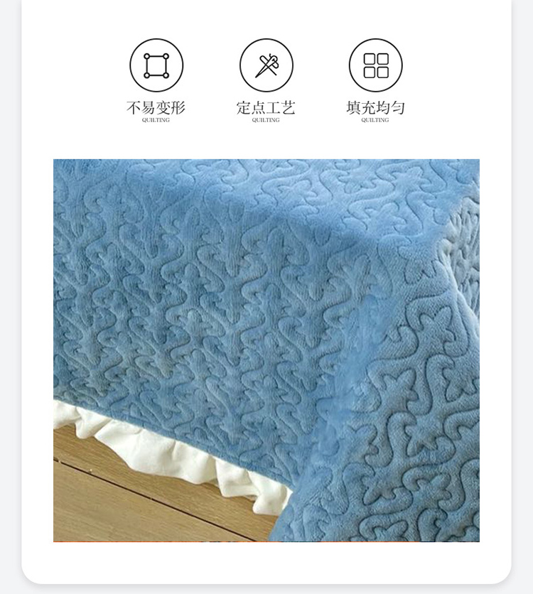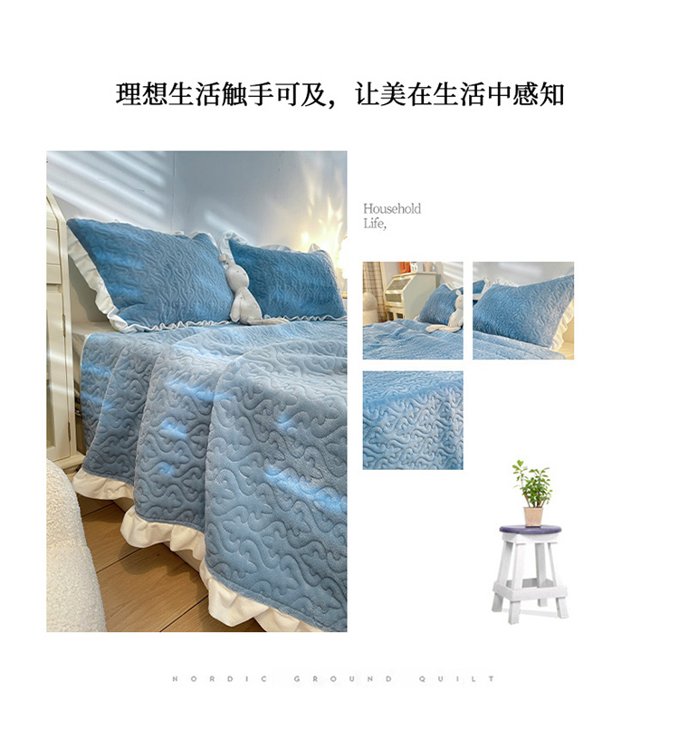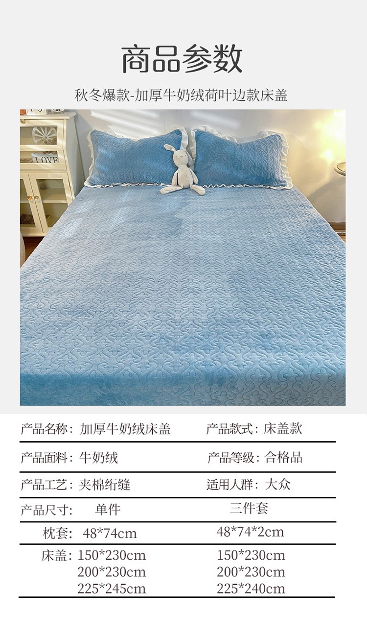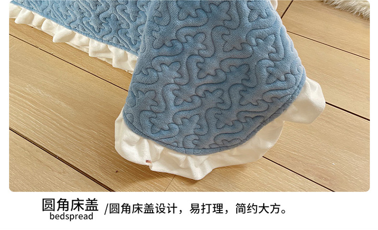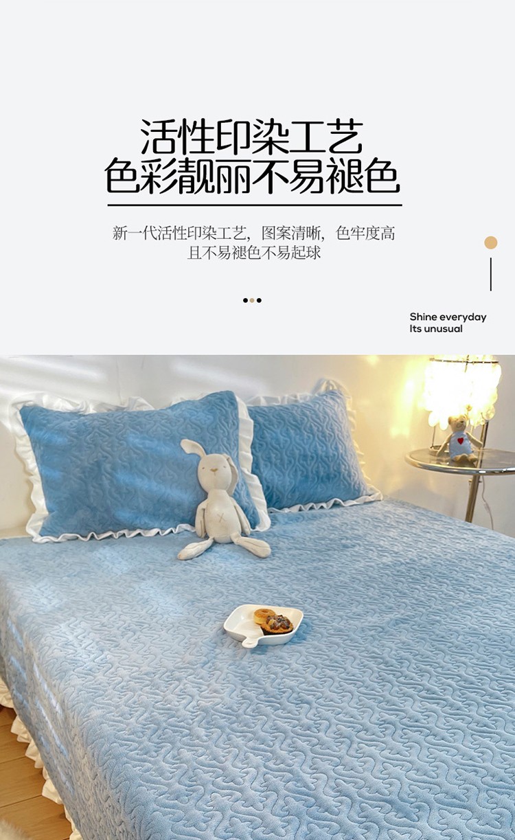 • 91家纺网 家纺一手货源 找家纺 沐辰2021新款加厚牛奶绒荷叶边款床盖 天空蓝
