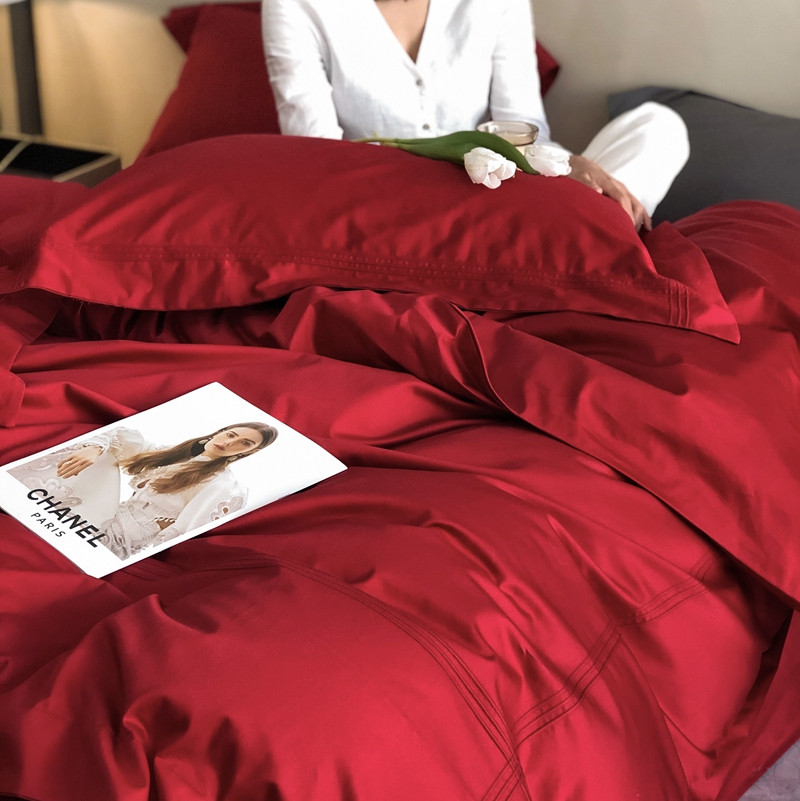 商品名称:馨蕊 2022新款100支长绒棉四件套-简系列 简-温莎红