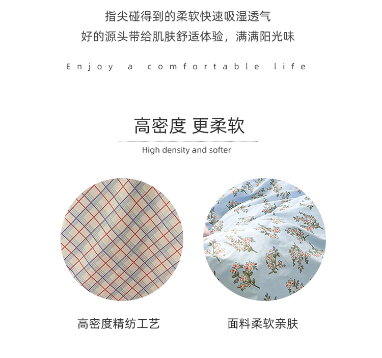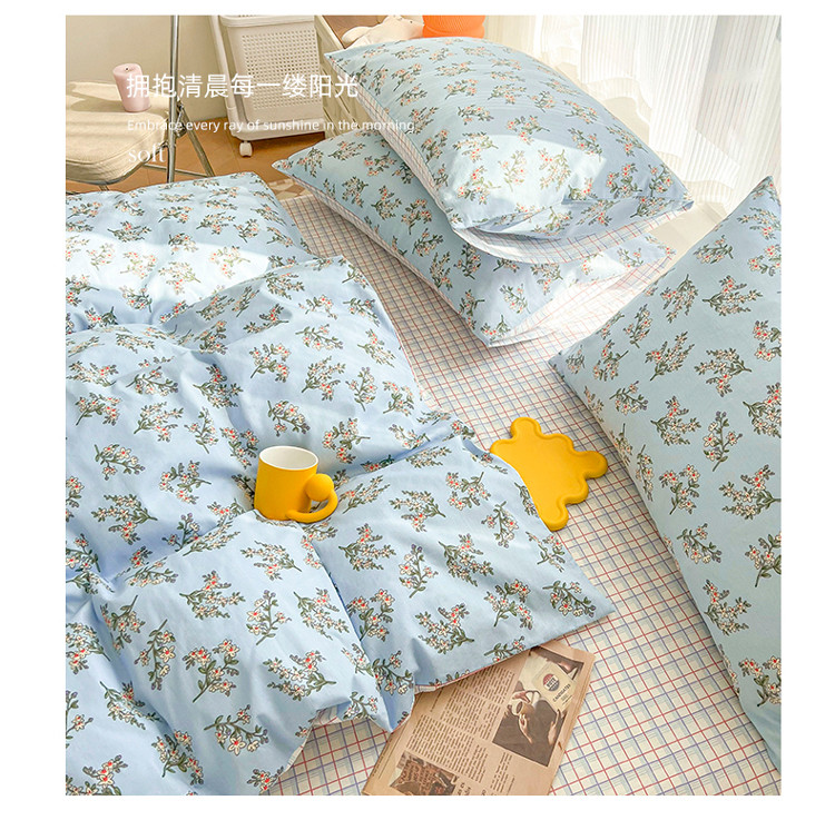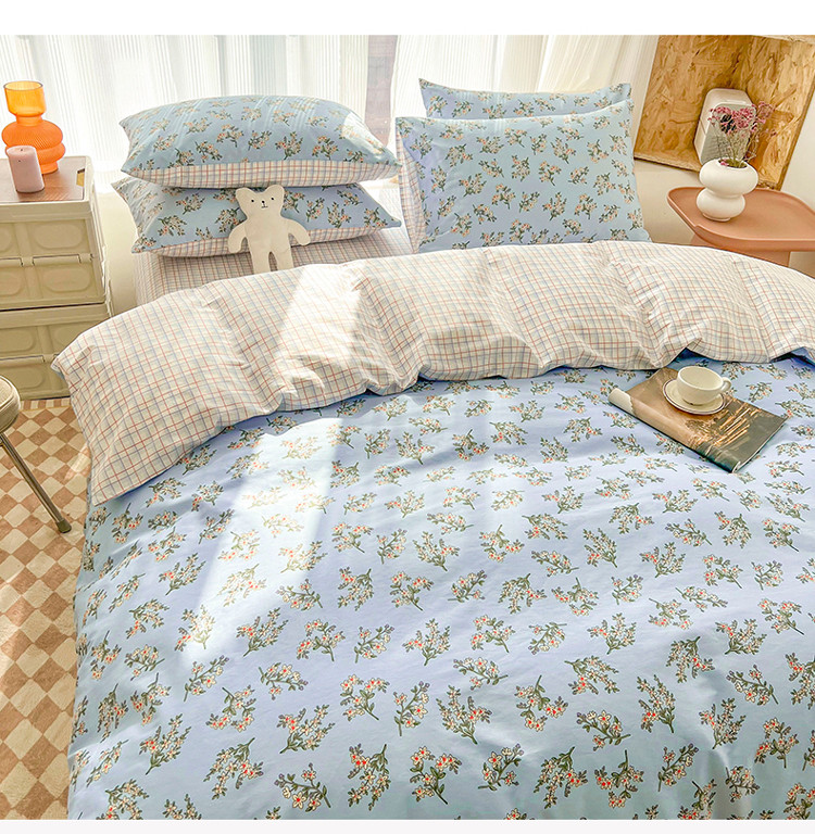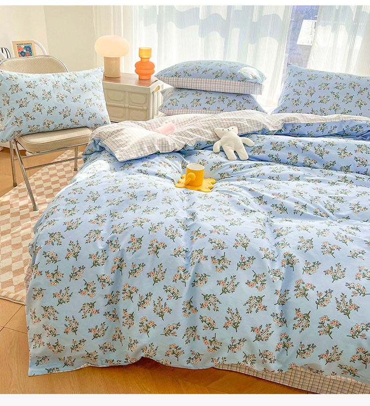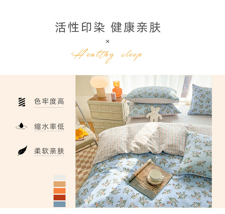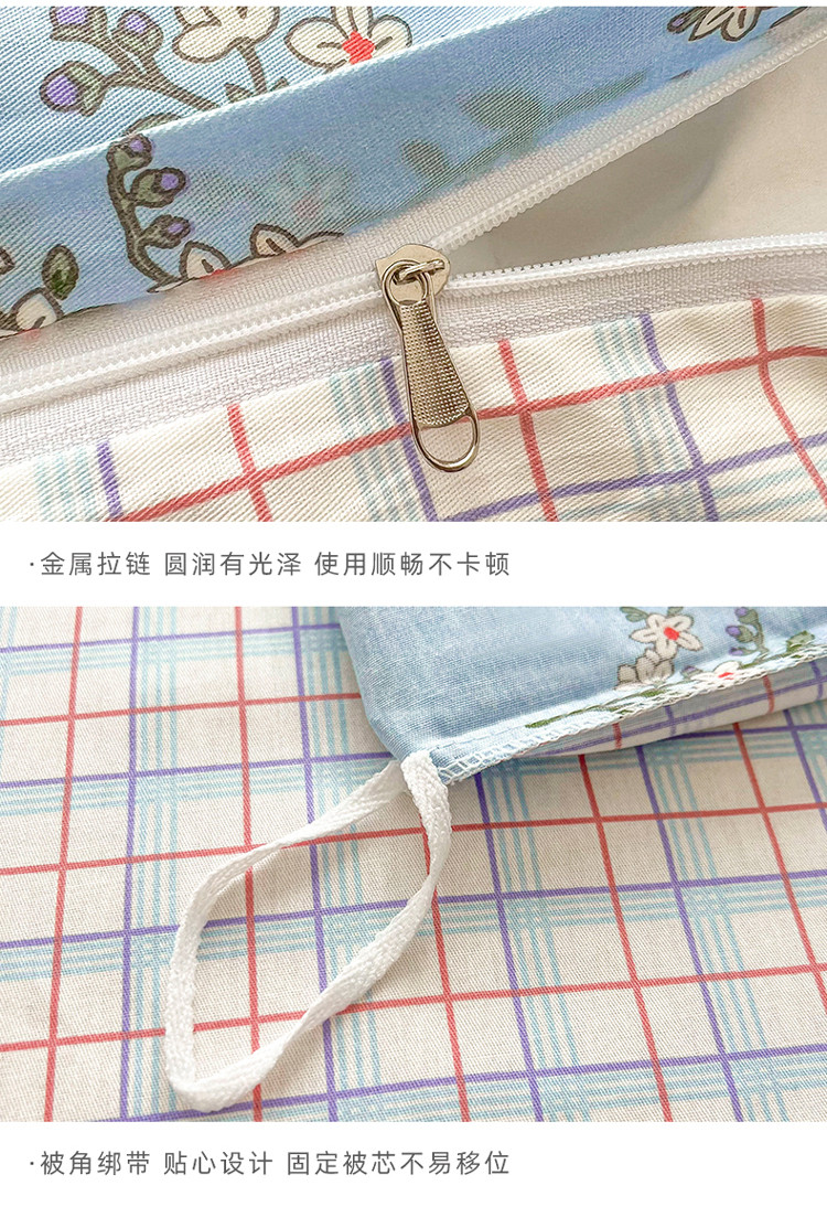 (总)感遇家纺 2022新款全棉印花四件套,格子小花,黑格恐龙,蓝色心情,浅暖