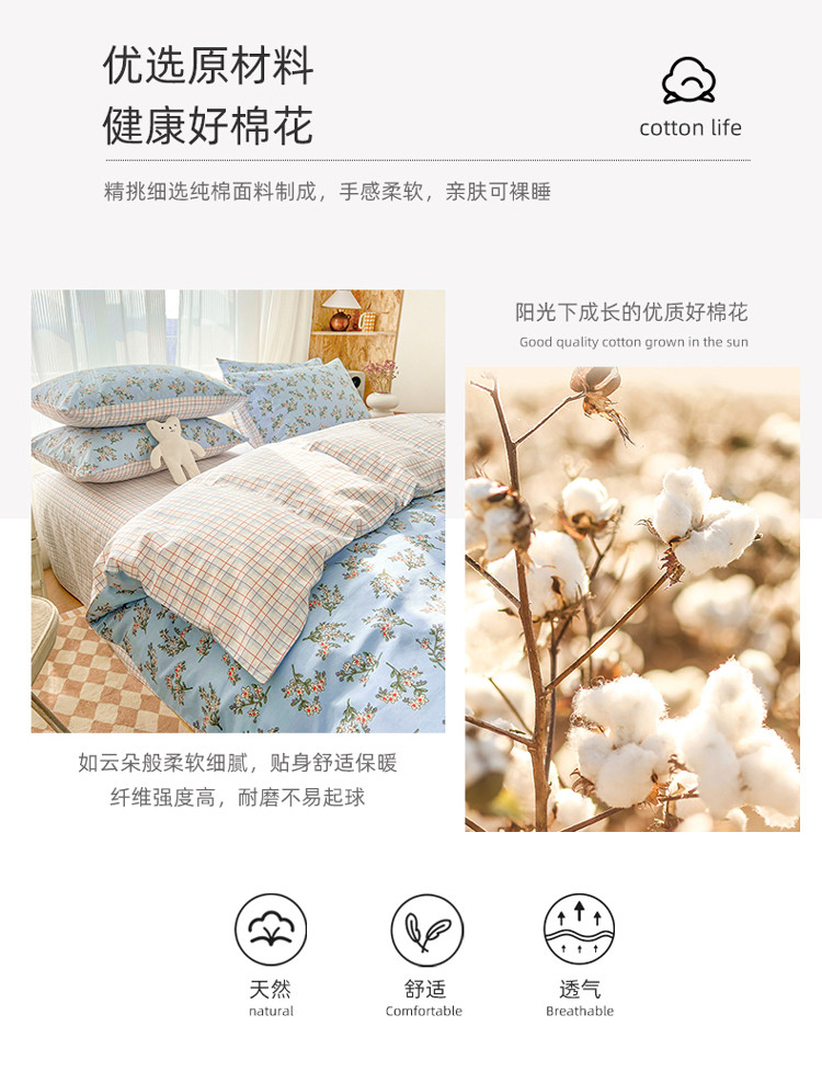 (总)感遇家纺 2025新款小清新甜系全棉四件套,百丽兔,波点小女孩,点点小狗,复古樱桃,格子草莓,格子樱桃,花间牧歌,灰条猫咪,奶绿,宁夏,森林小熊猫,甜心波点