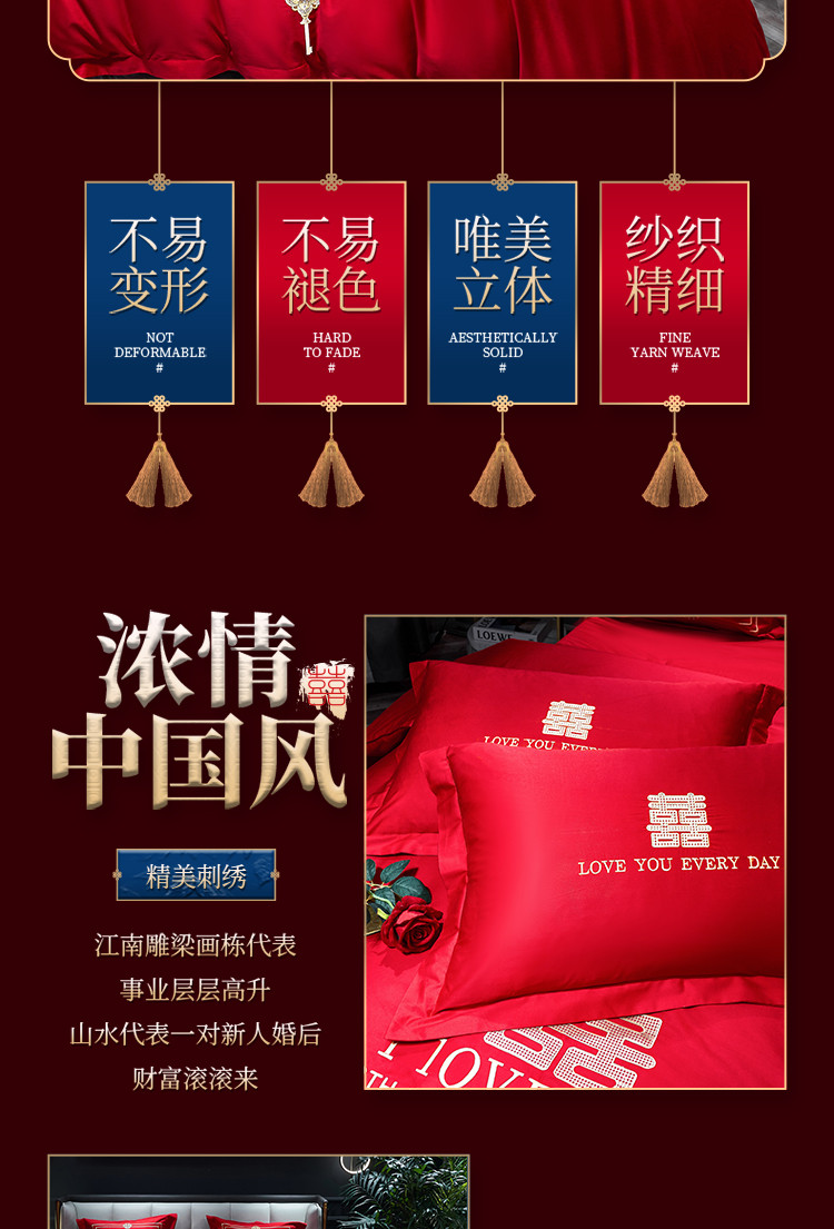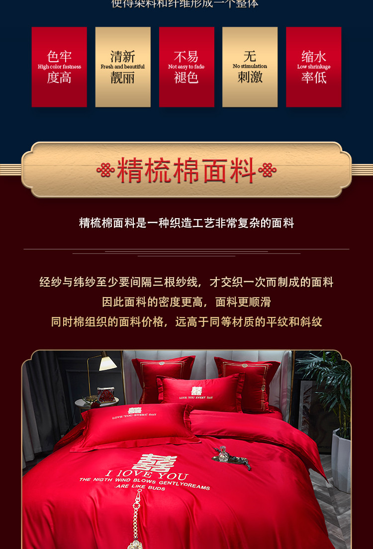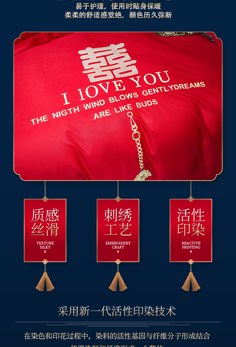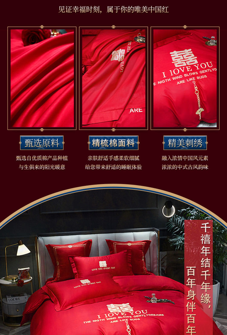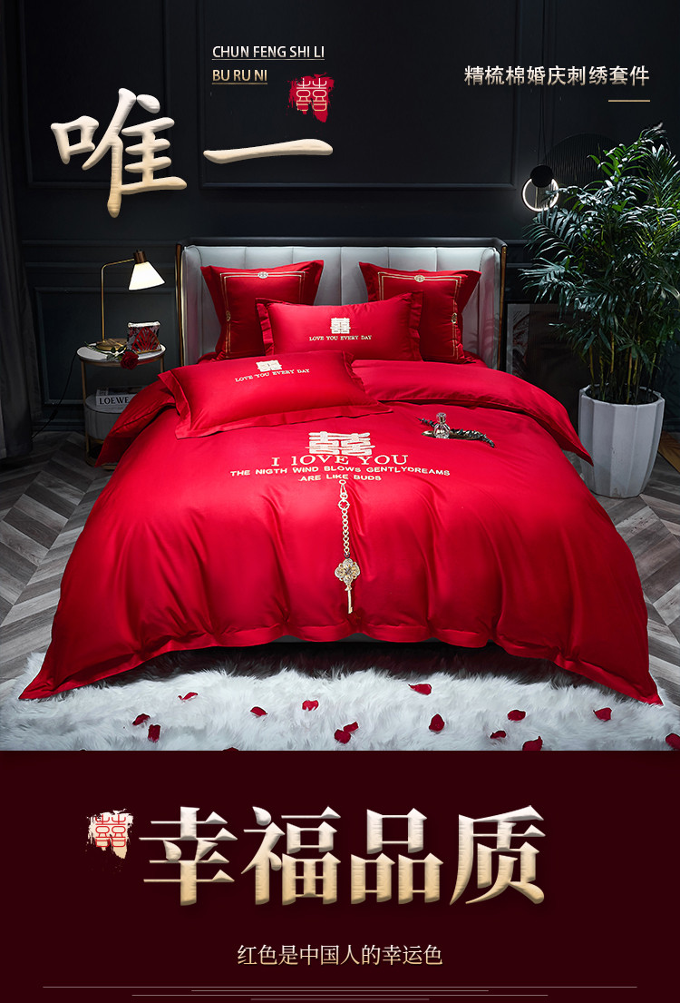 当前位置: 91家纺网 > 商品网购 > 床品套件 > 四件套 > 婚庆四件套 > 用心 2022新款婚庆家居爆款刺绣四件套 唯一