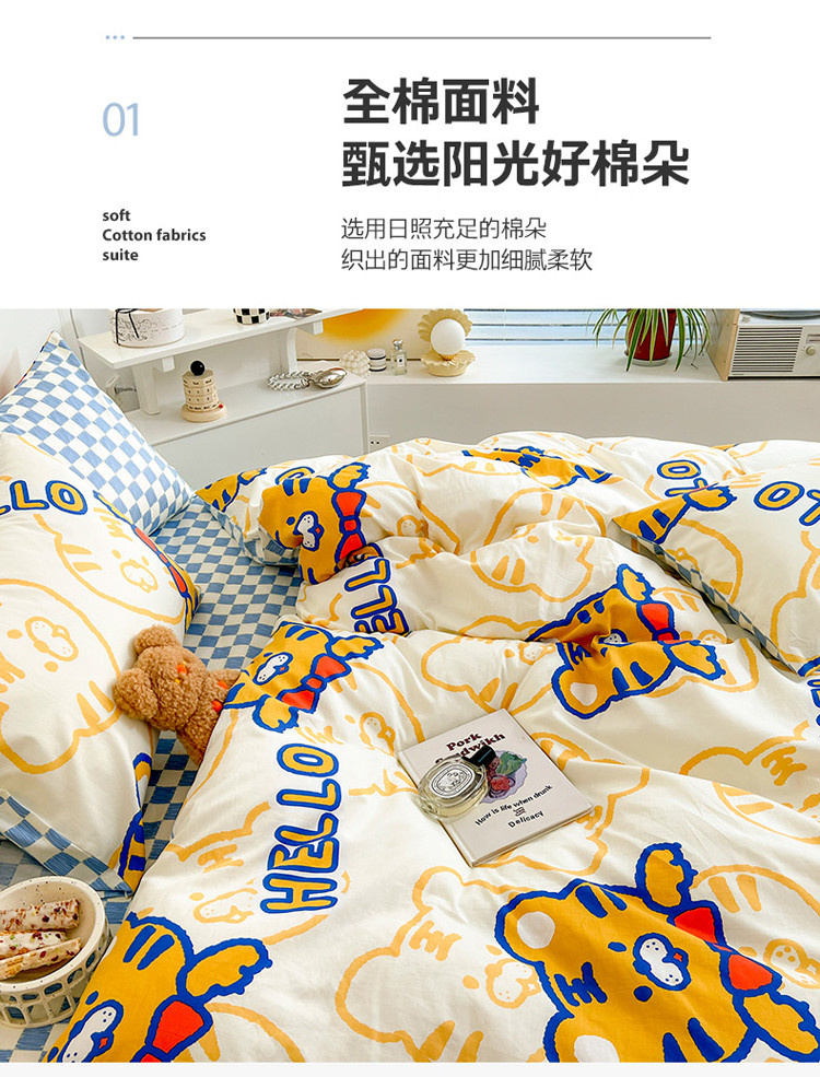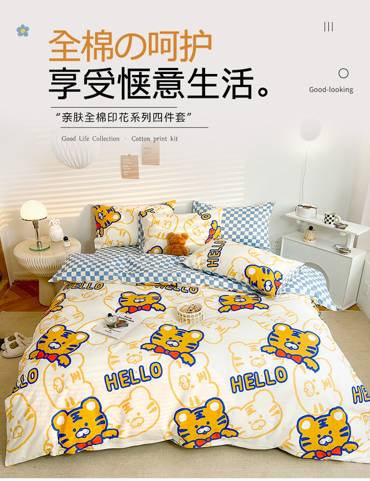 商品名称:寐居家纺 2022新款全棉印花四件套 HELLO虎