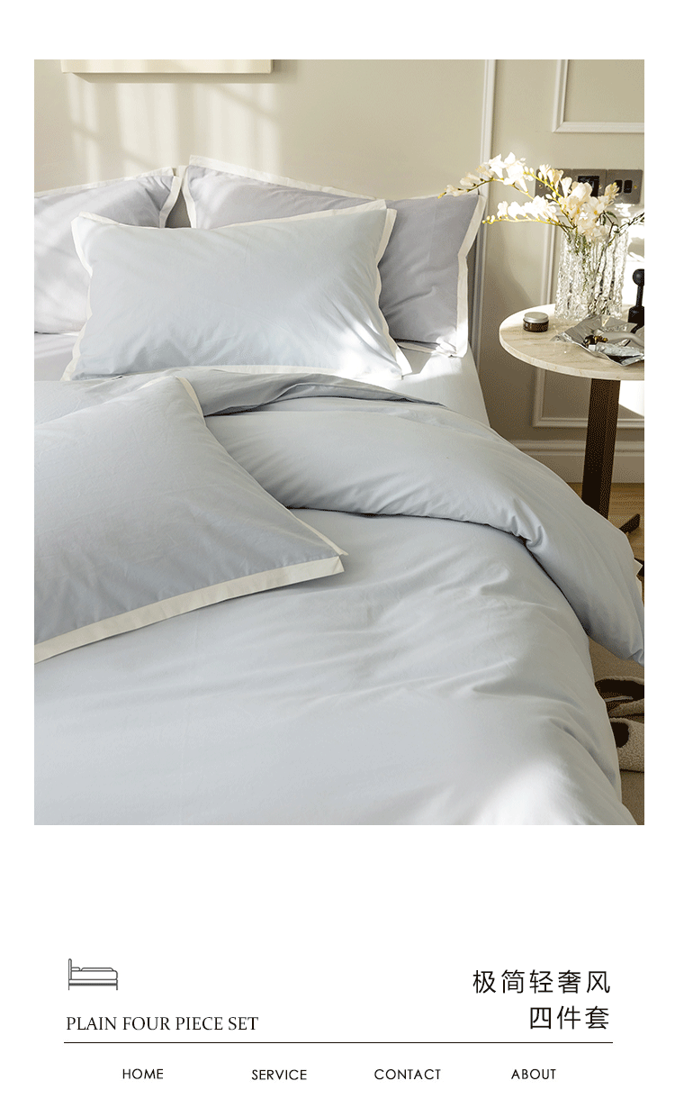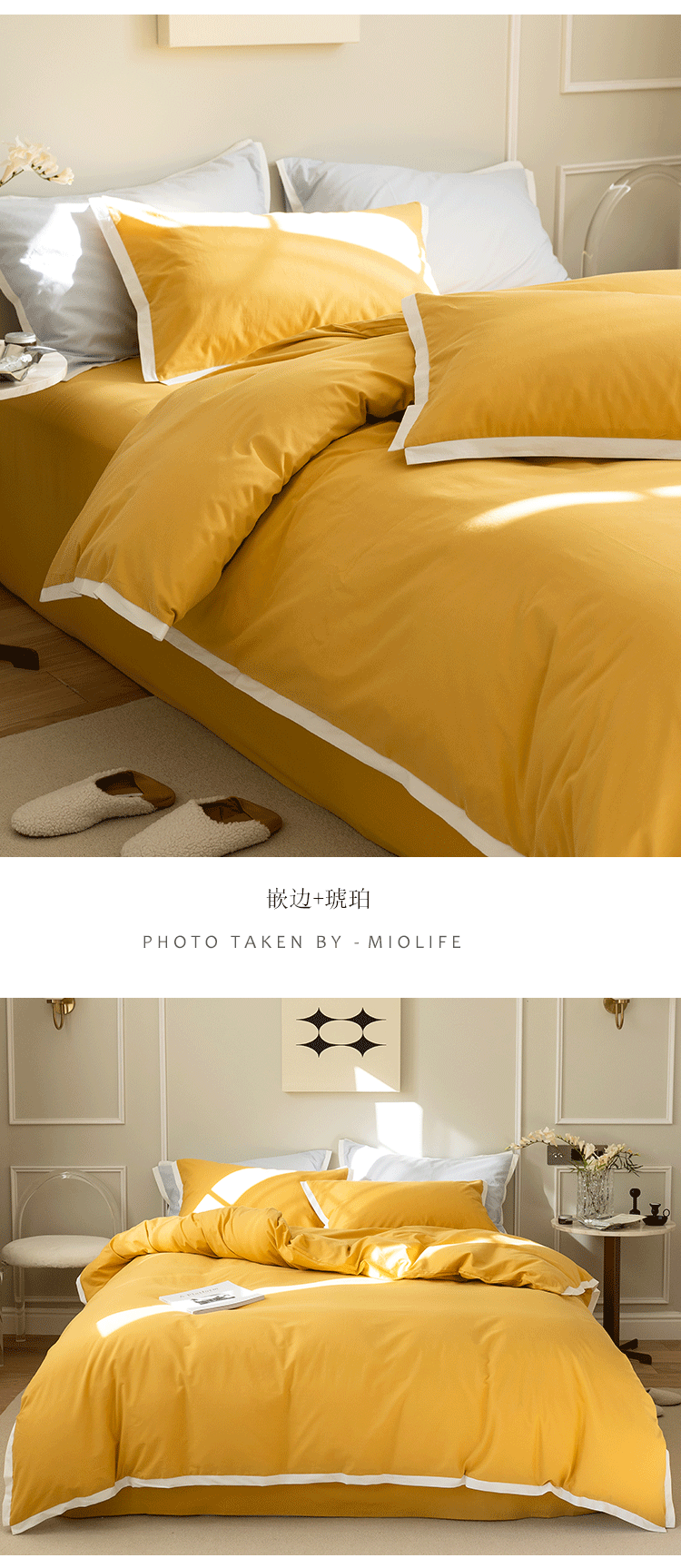 • 91家纺网 家纺一手货源 找家纺 ins简约全棉水洗棉嵌边四件套少女心被套纯棉床单床上用品