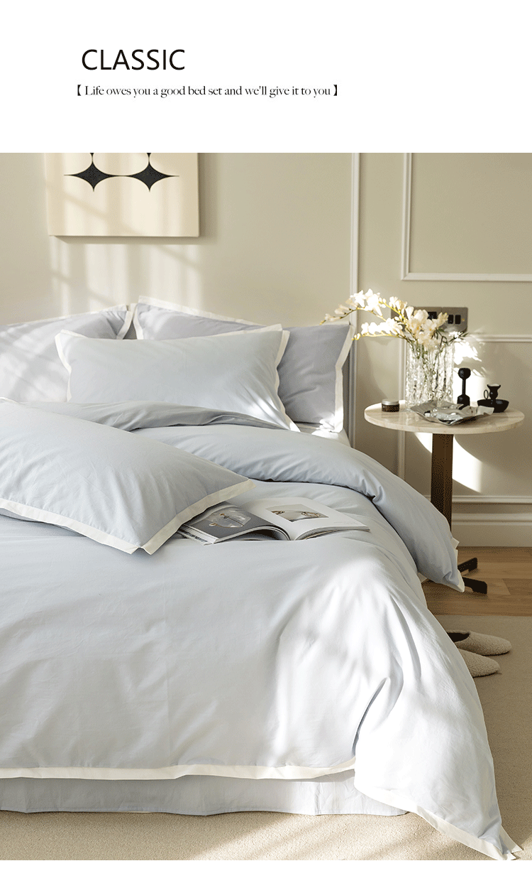 当前位置: 91家纺网 > 商品网购 > 床品套件 > 四件套 > 水洗棉四件套 > ins简约全棉水洗棉嵌边四件套少女心被套纯棉床单床上用品