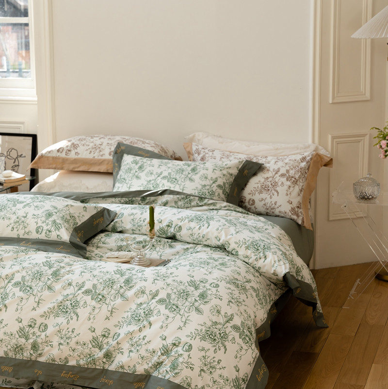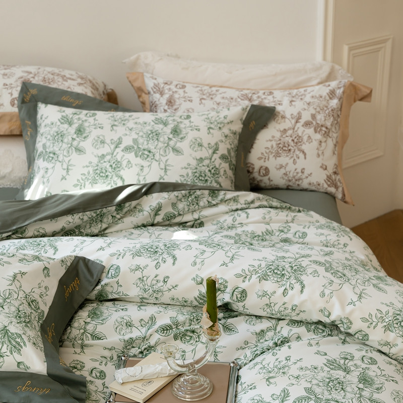 优然居 新款100支数码印花刺绣工艺款四件套-克里斯汀 绿