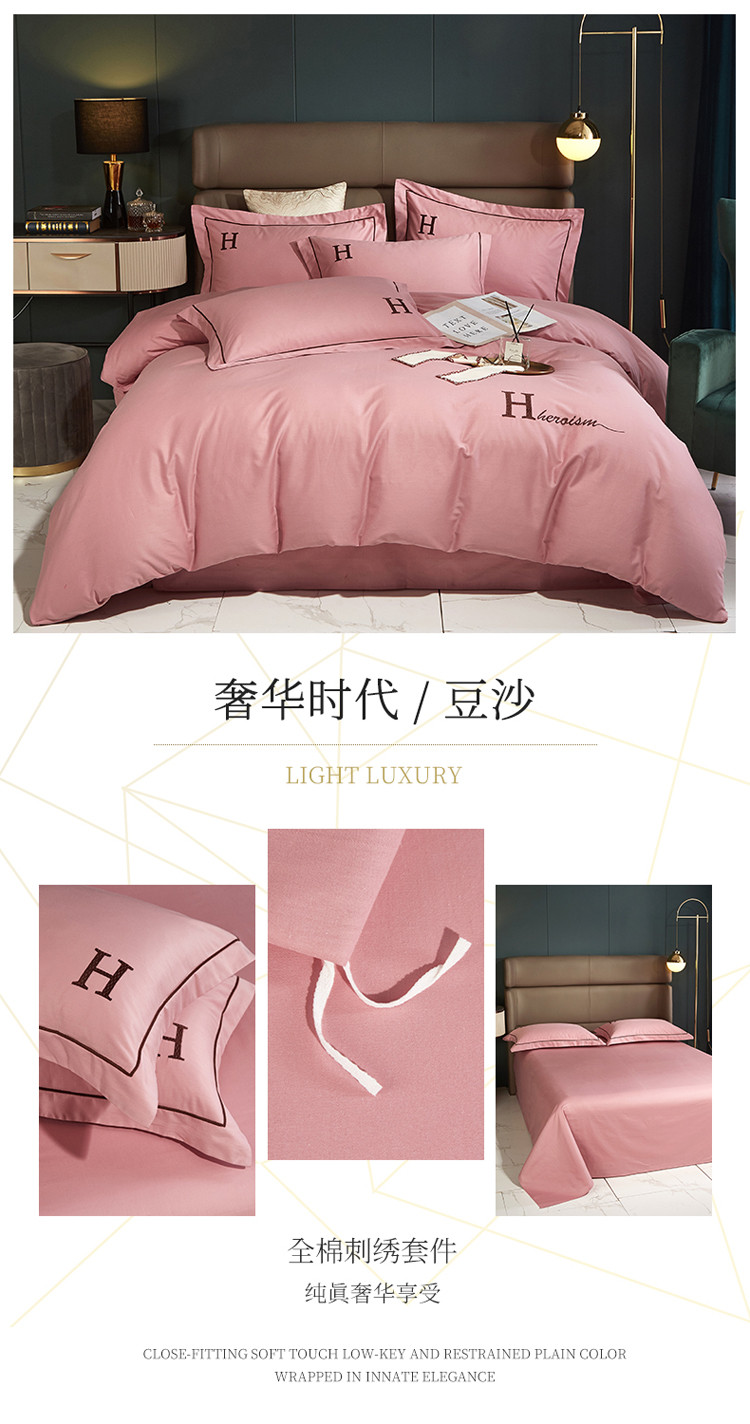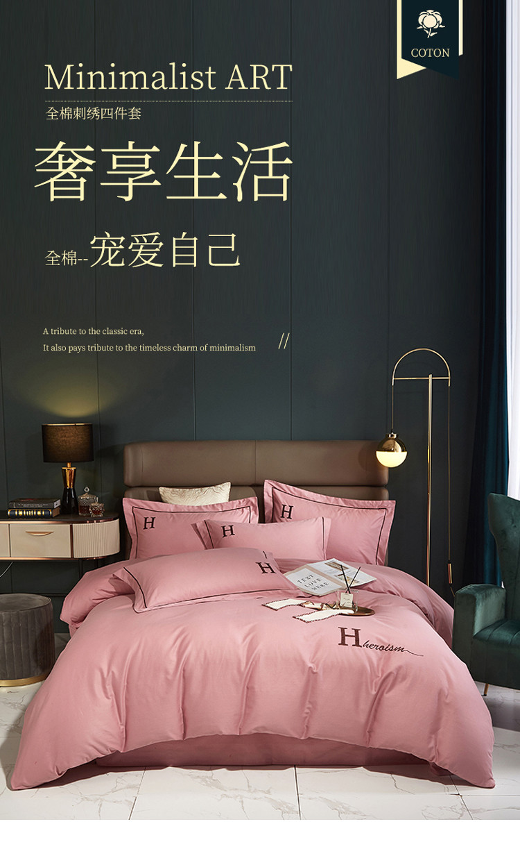 (总)启航家居 2025直播爆款全棉纯色磨毛刺绣四件套古欧时尚系列,古欧时尚宾利蓝,古欧时尚豆沙,古欧时尚浅橙,古欧时尚优雅紫,古欧时尚珍珠白