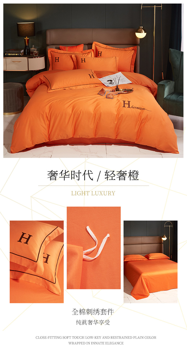 (总)启航家居 2025直播爆款全棉纯色磨毛刺绣四件套大牌情怀系列,大牌情怀爱马仕橙,大牌情怀典雅灰,大牌情怀海岛蓝,大牌情怀姜黄,大牌情怀至尊白
