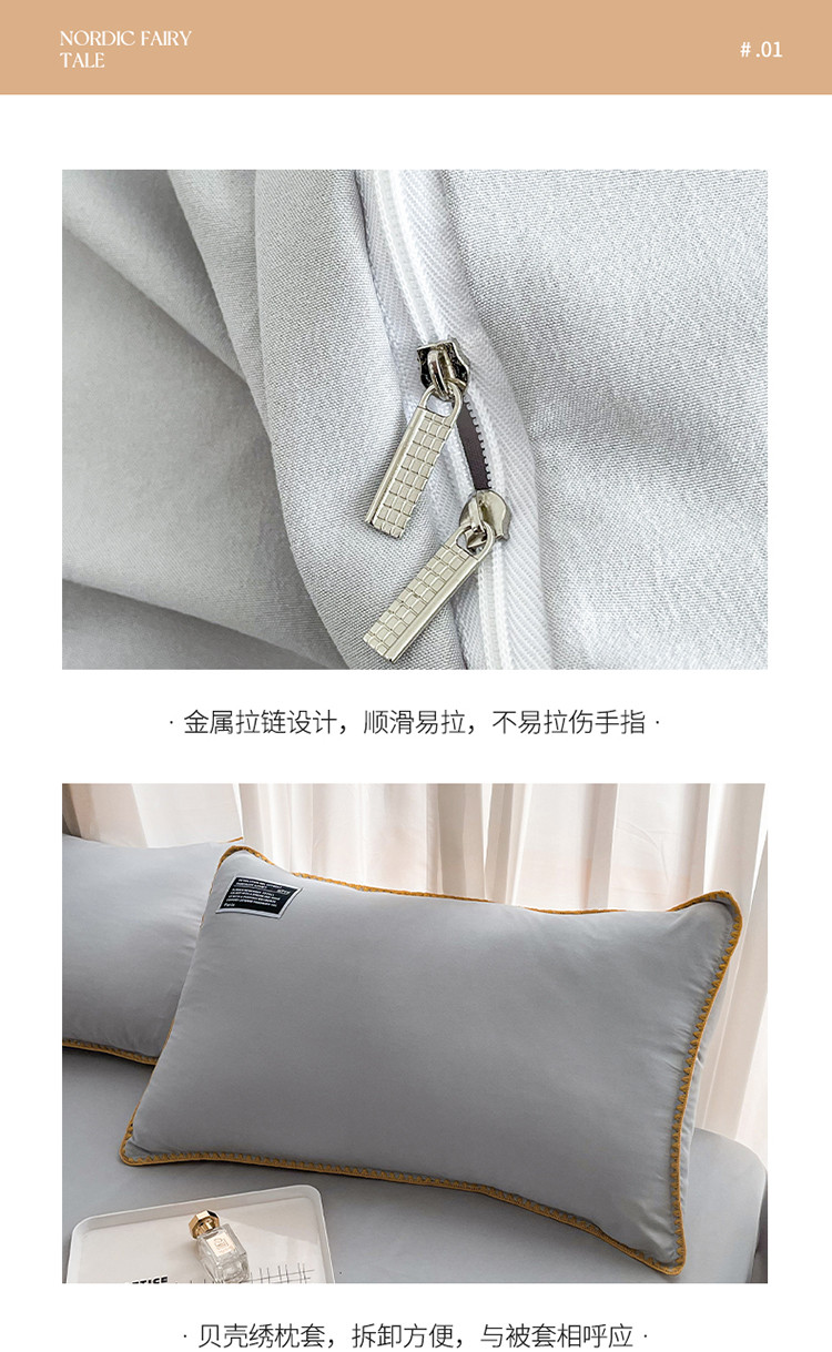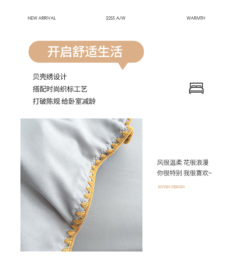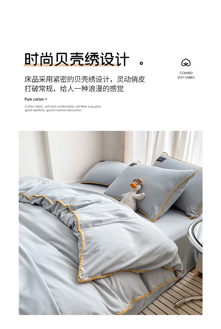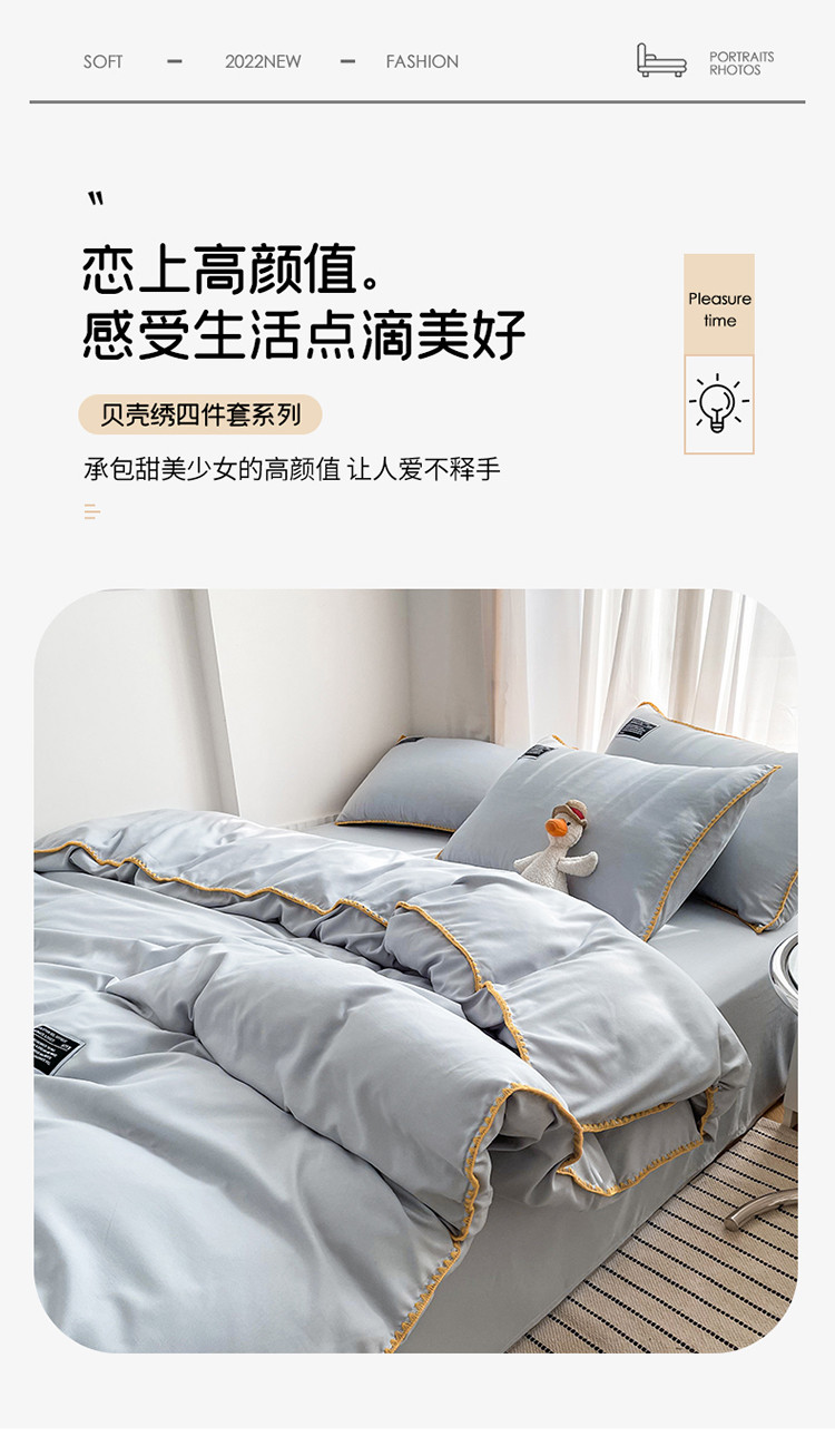 商品名称:绒兔兔 2022新款奢丝棉贝壳绣工艺床单床笠四件套 贝壳绣-浅灰