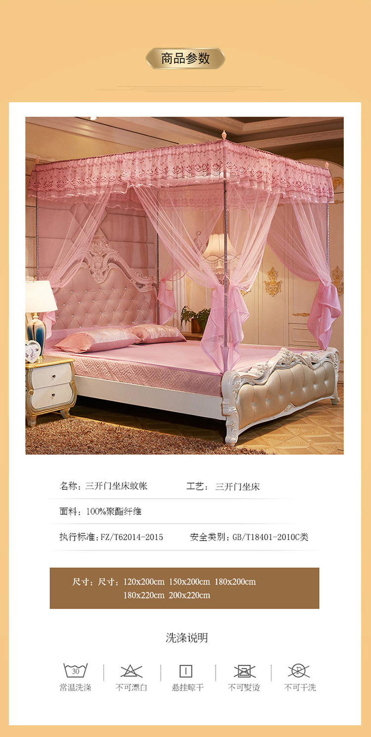当前位置: 91家纺网 > 商品网购 > 床上用品 > 蚊帐 > 坐床式蚊帐 > 迷仙巢2022新款三开门坐床蚊帐B09逝水流年粉红