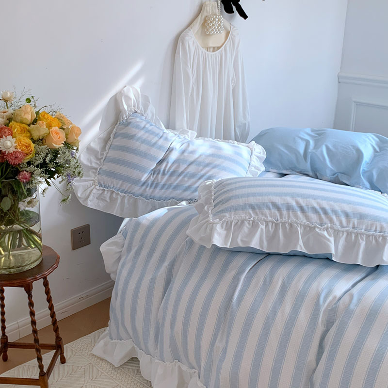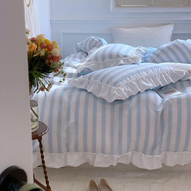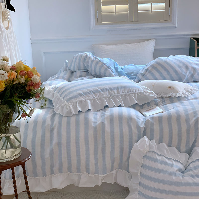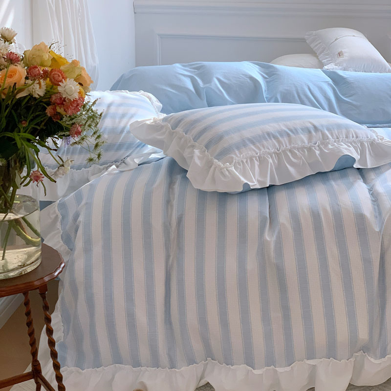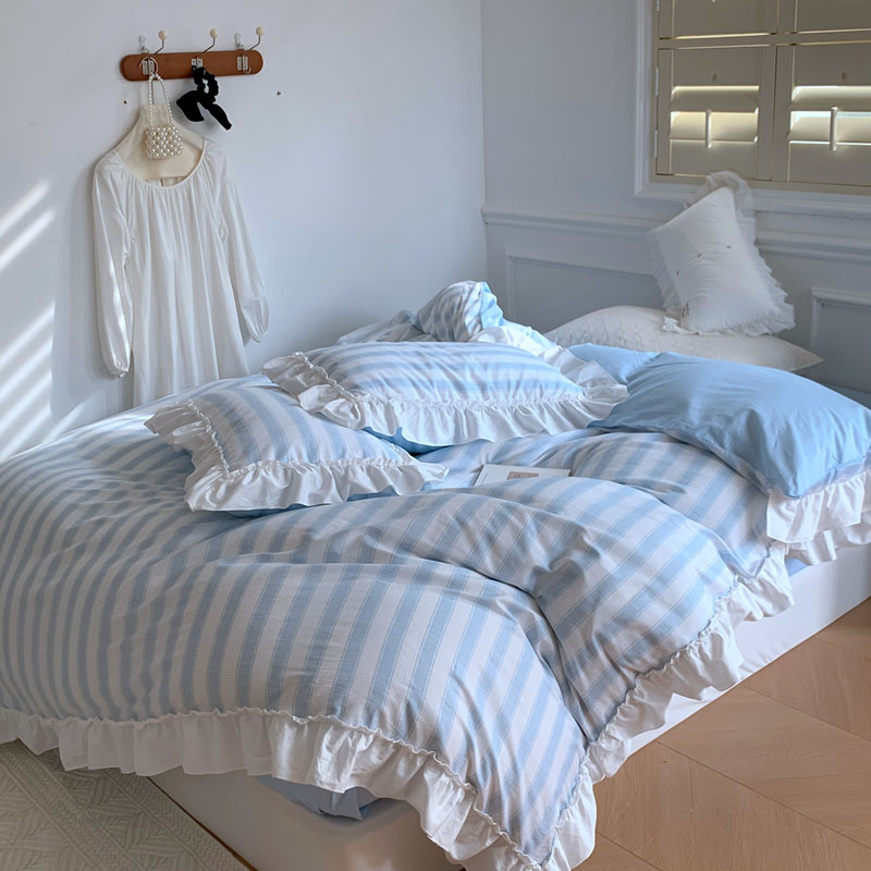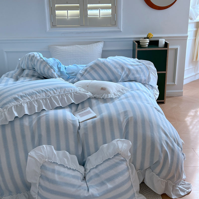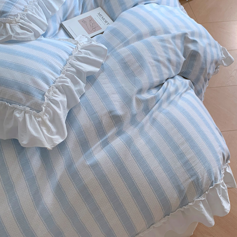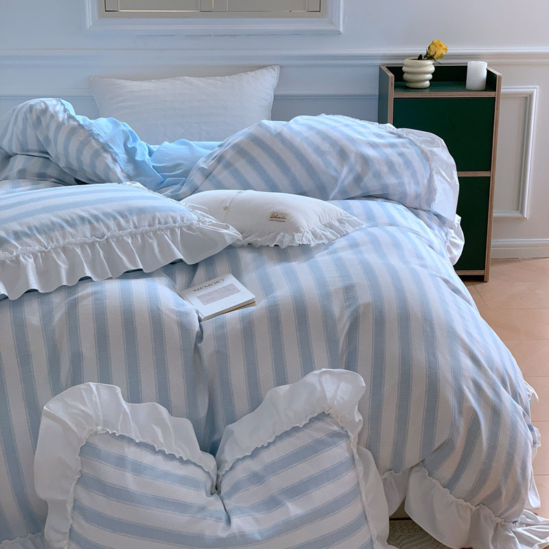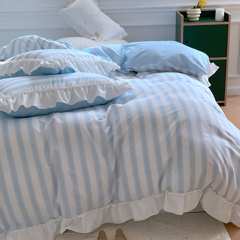 商品名称:昔可2022新款花边条纹系列四件套 奈雪蓝条纹