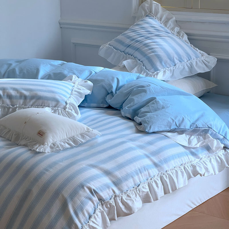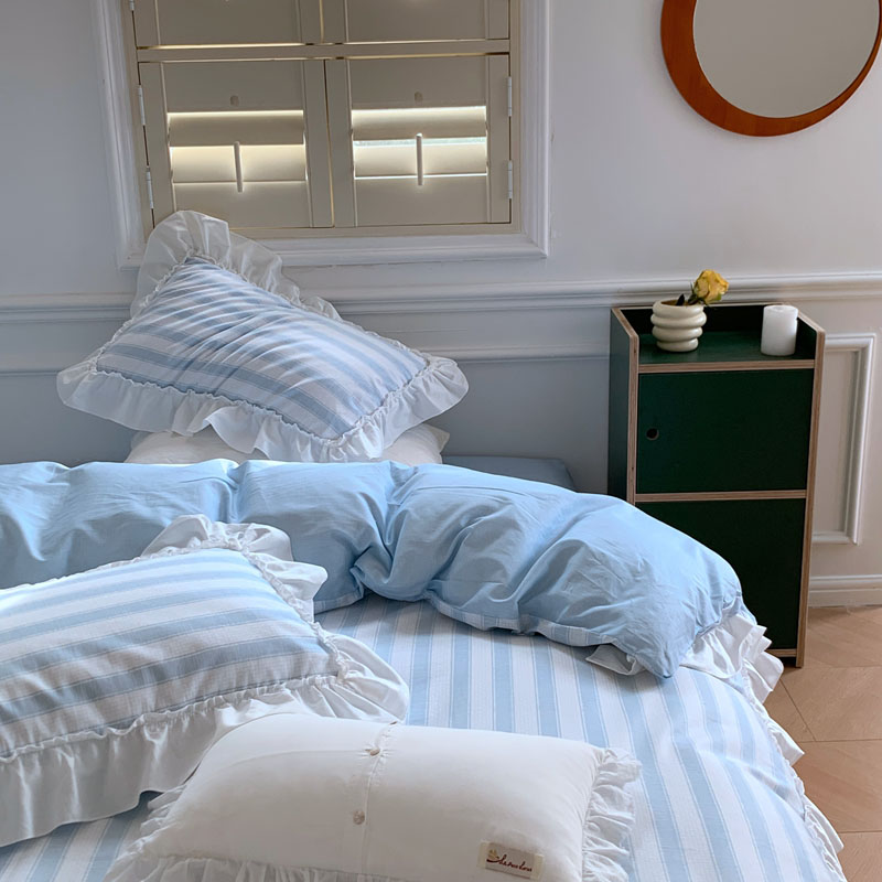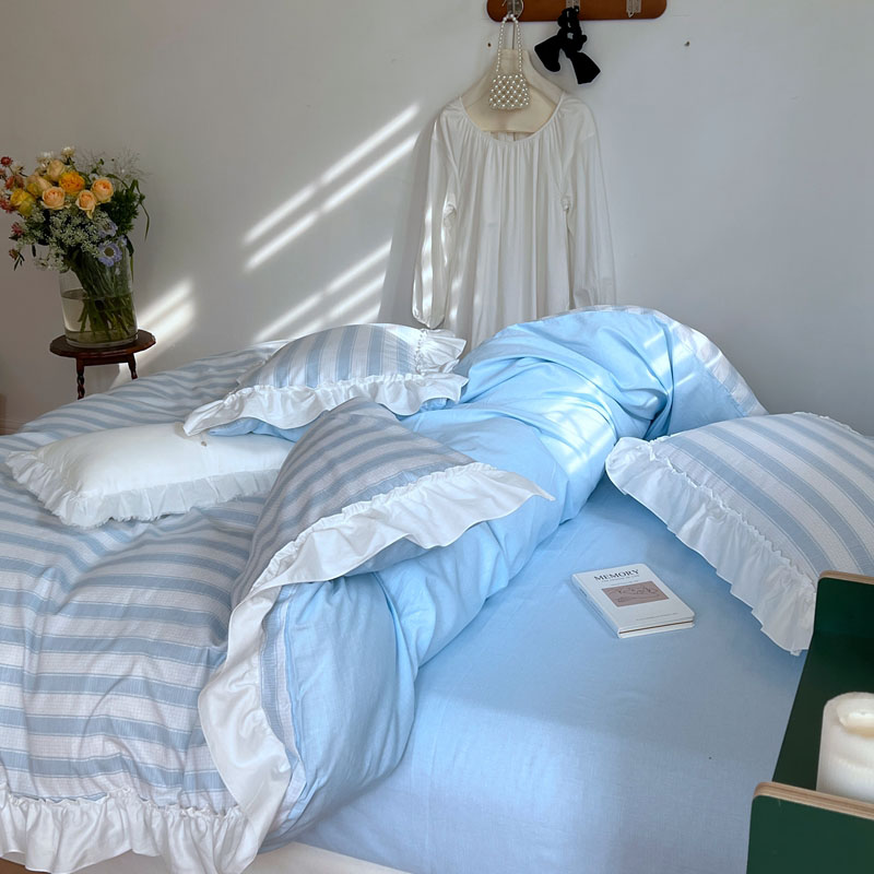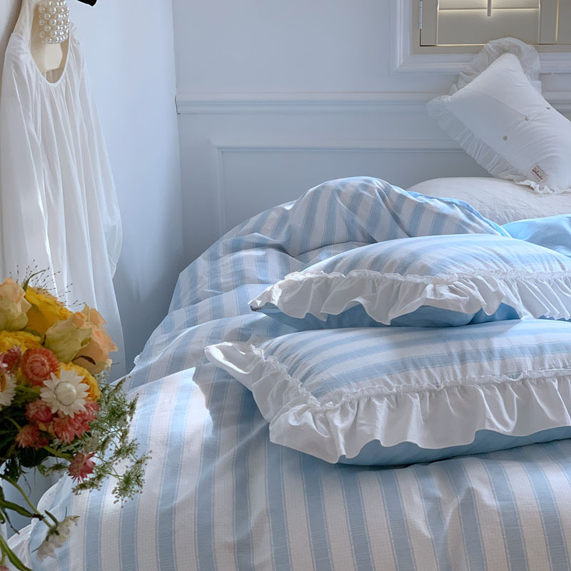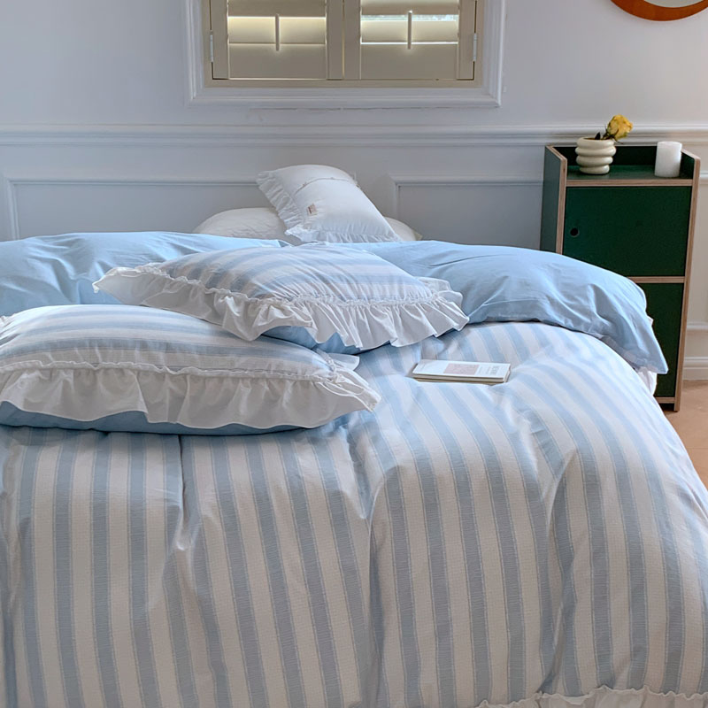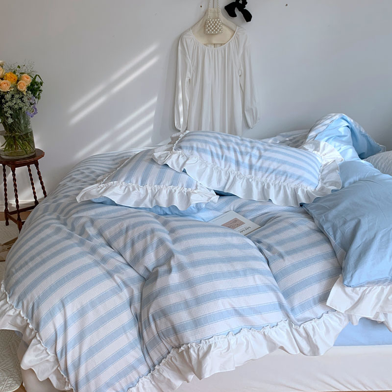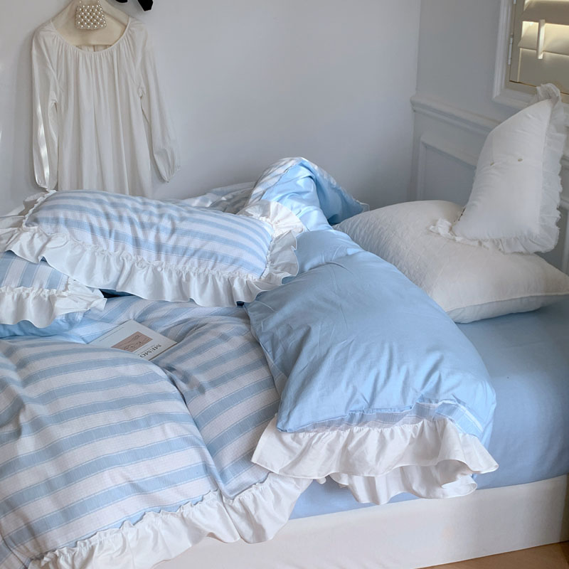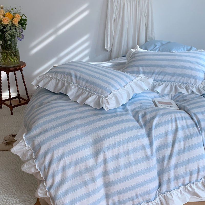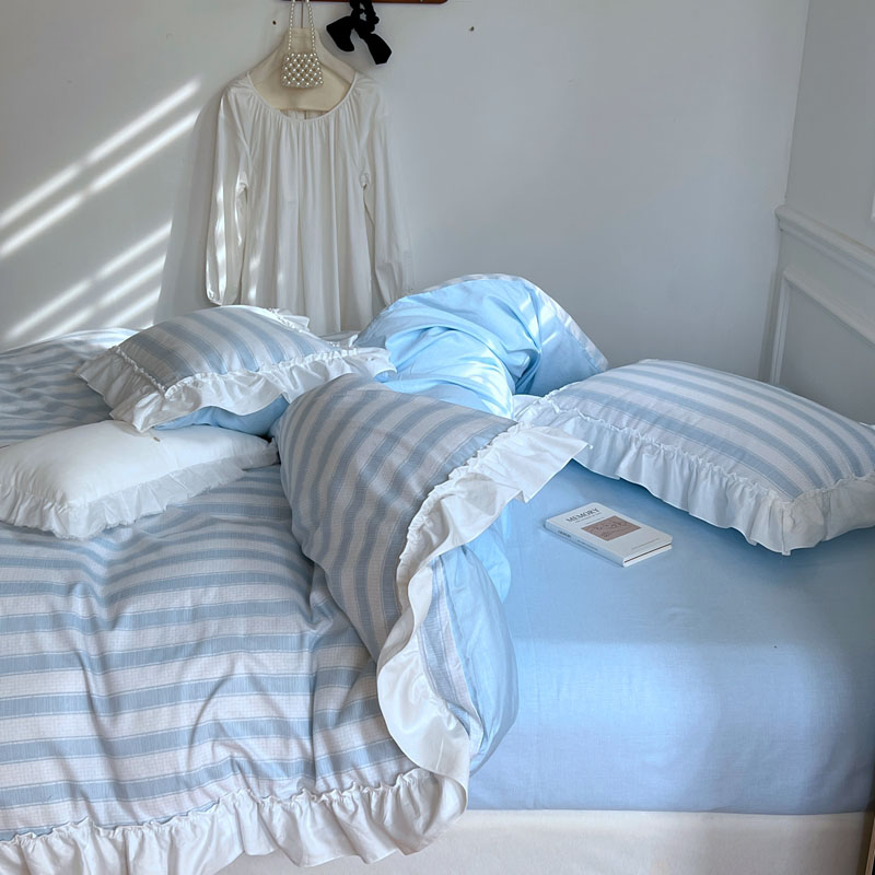 商品名称:昔可2022新款花边条纹系列四件套 奈雪蓝条纹