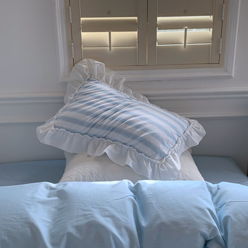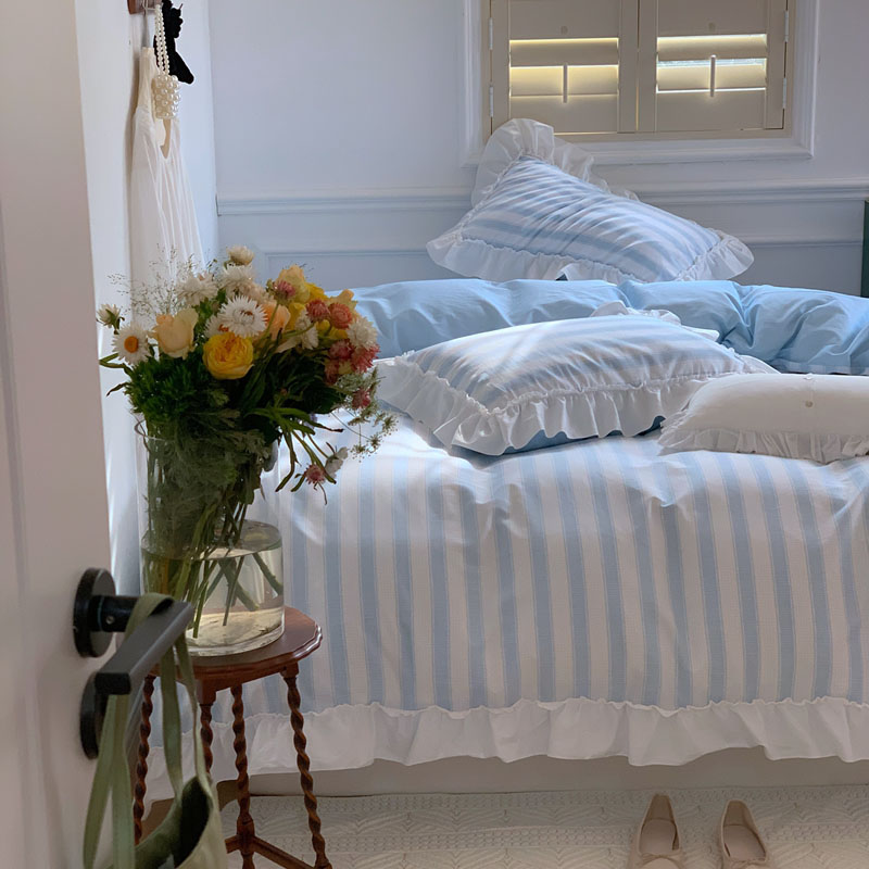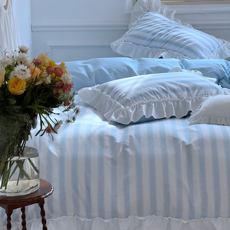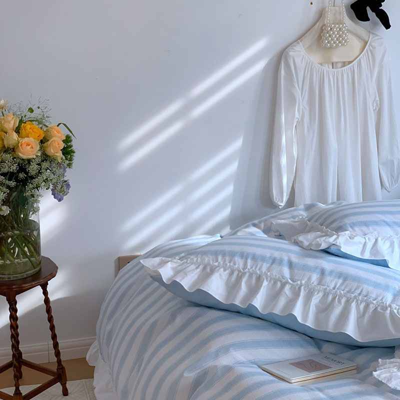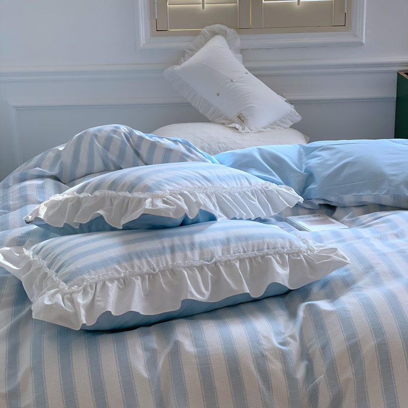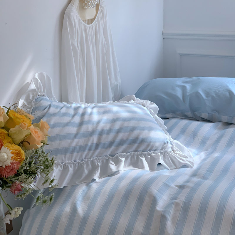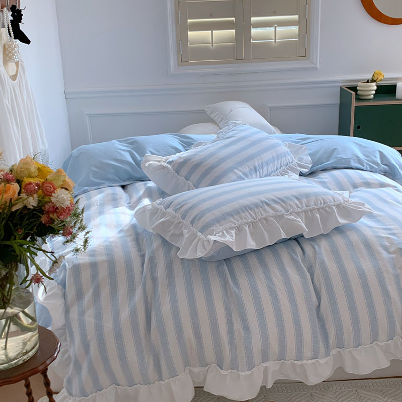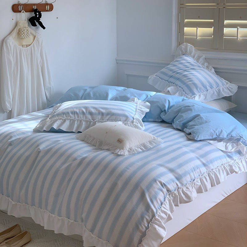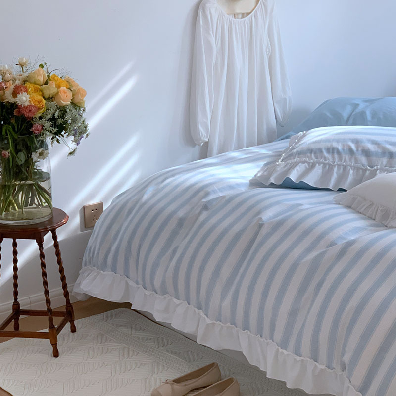 商品名称:昔可2022新款花边条纹系列四件套 奈雪蓝条纹