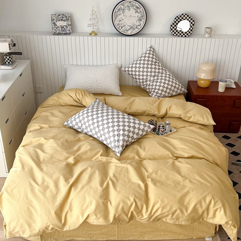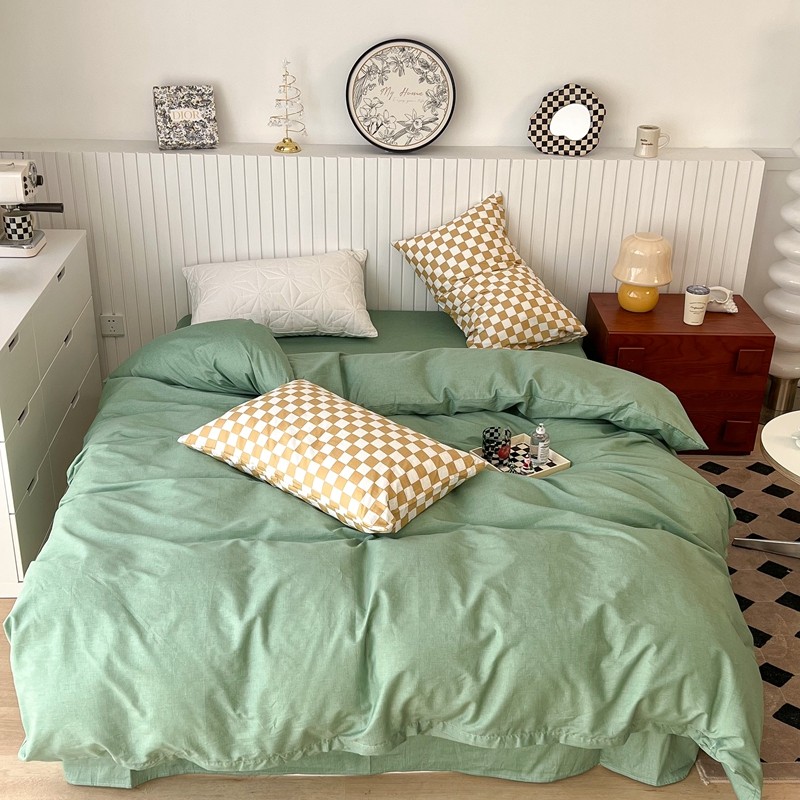 (总)昔可2022新款混搭纯色棋盘格套件四件套