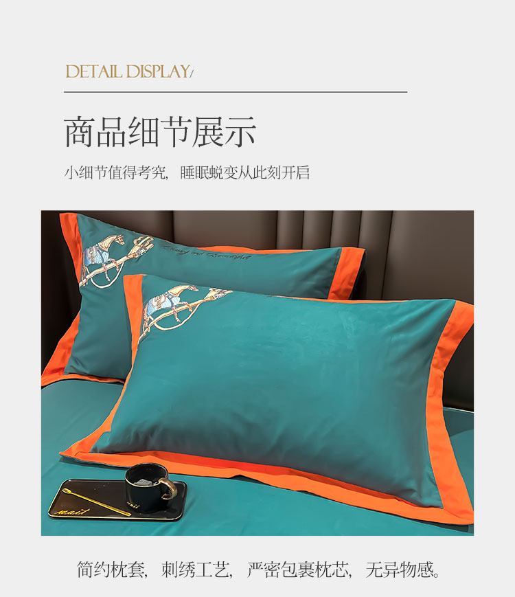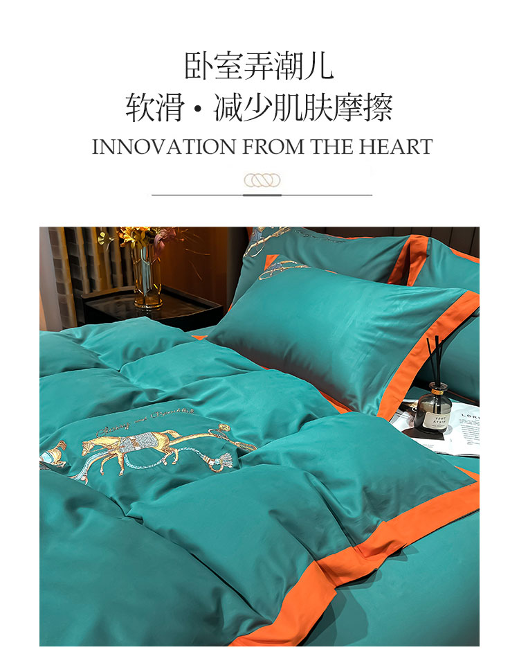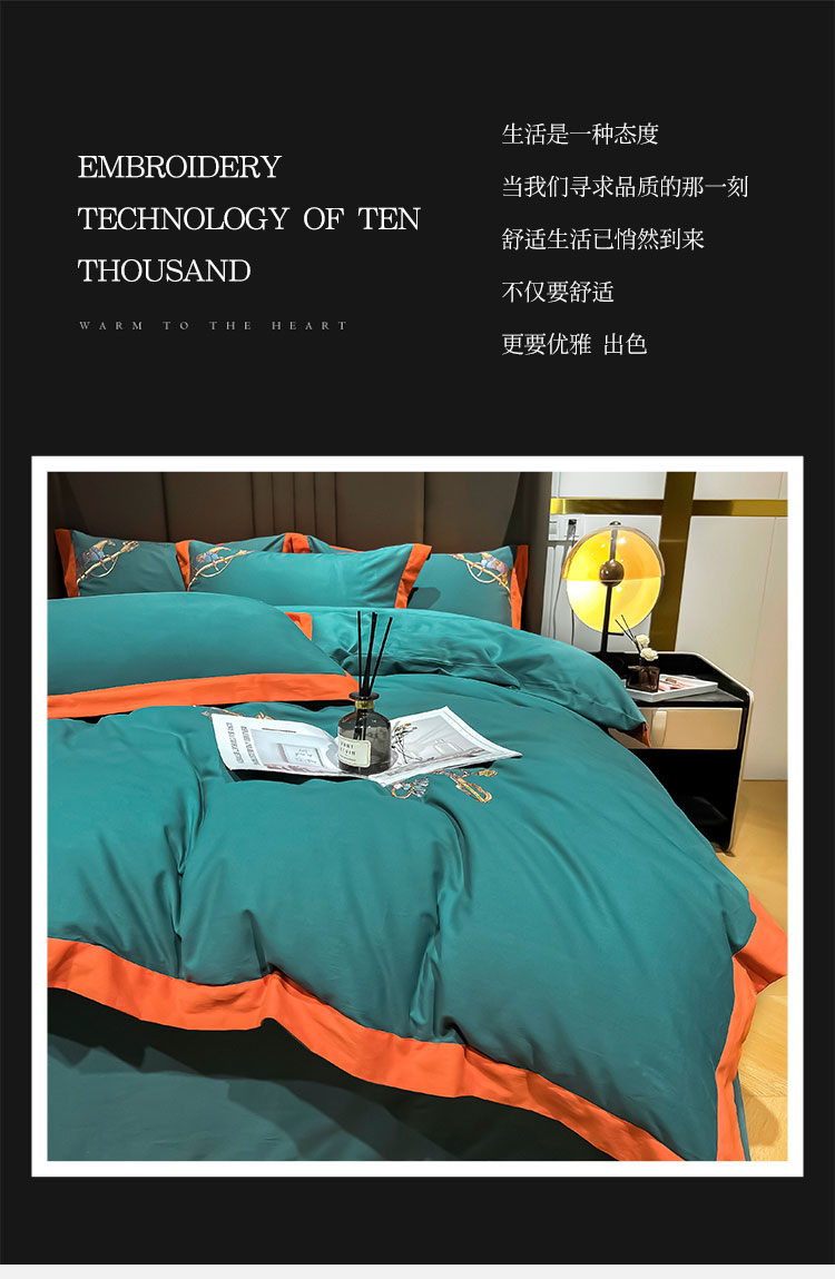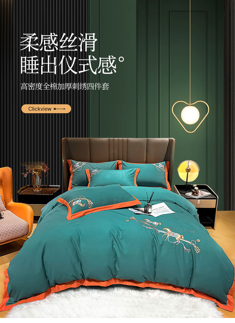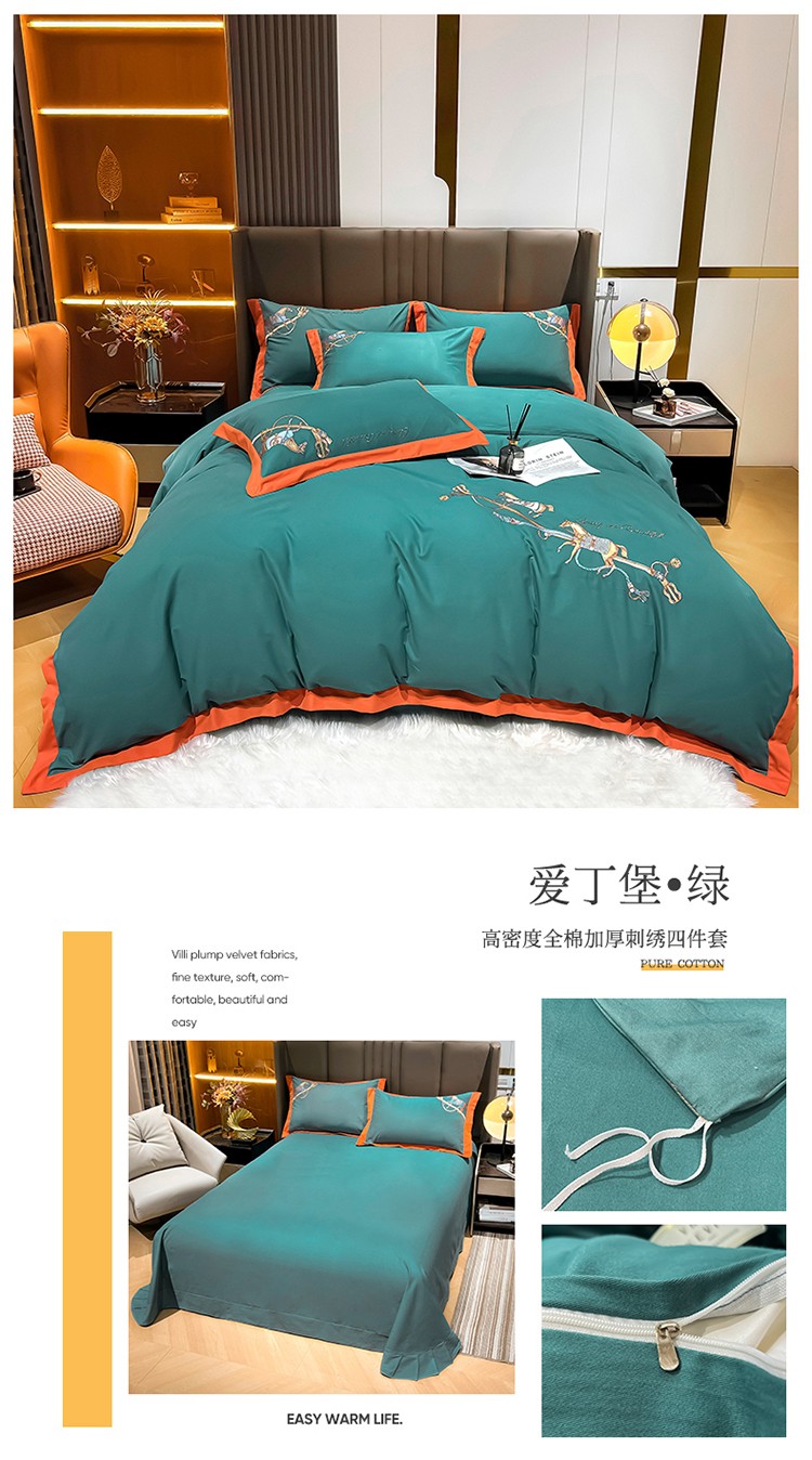 (总)雲归梦 2021新款全棉生态磨毛刺绣四件套,慕思-橙色,慕思-粉紫,慕思-灰,慕思-米黄,慕思-青绿,慕思-天蓝
