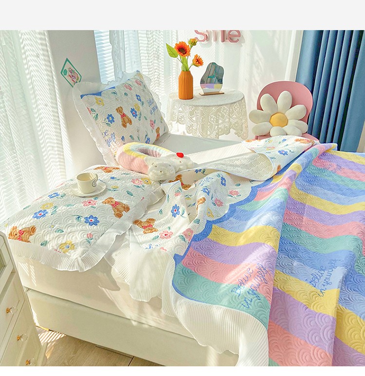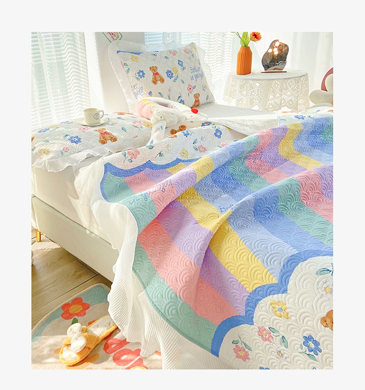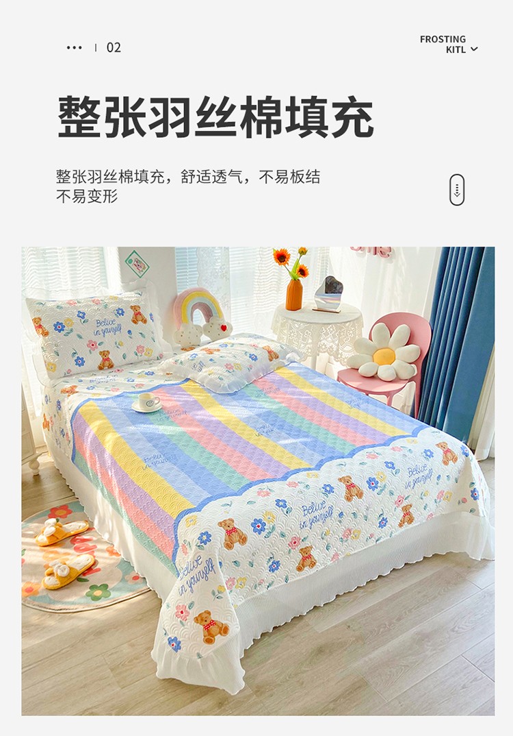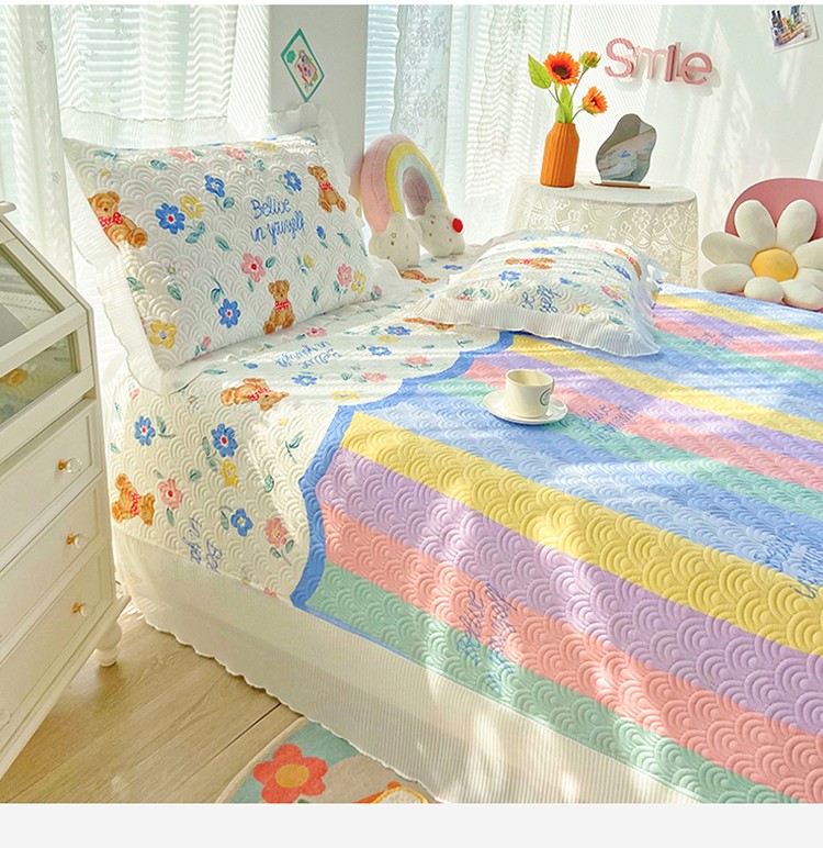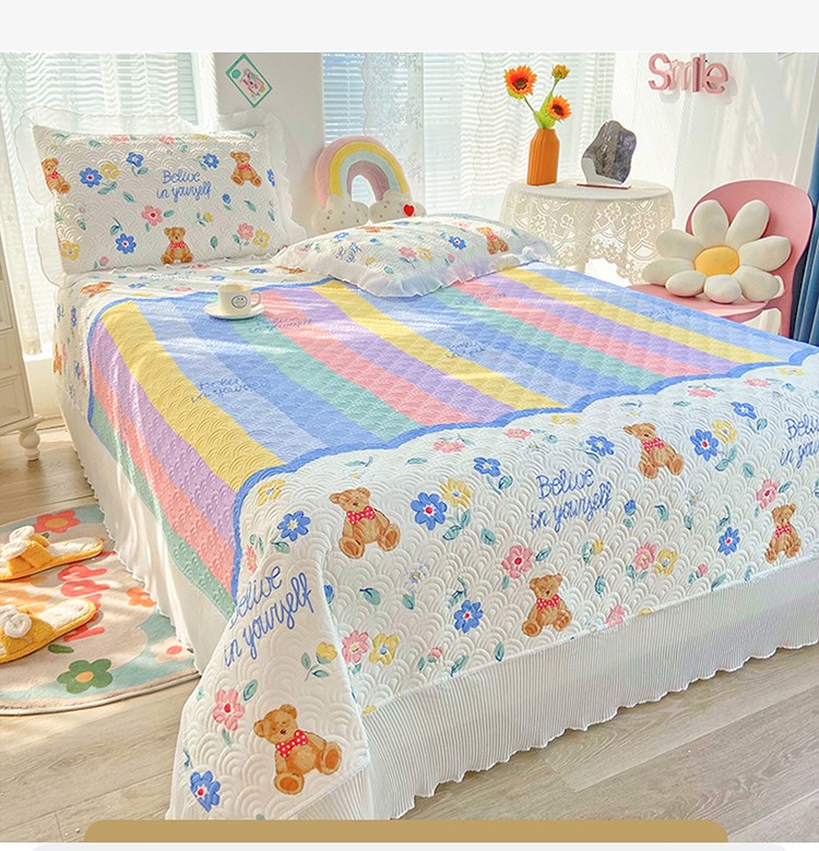 鑫钰 2023全棉印花床盖三件套 花布熊