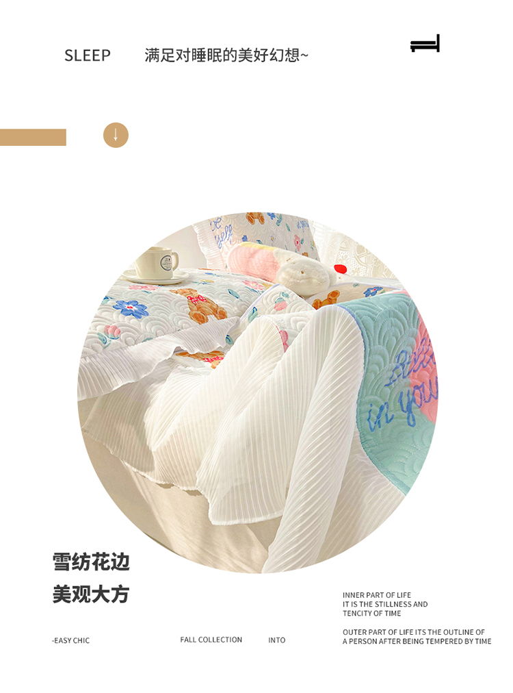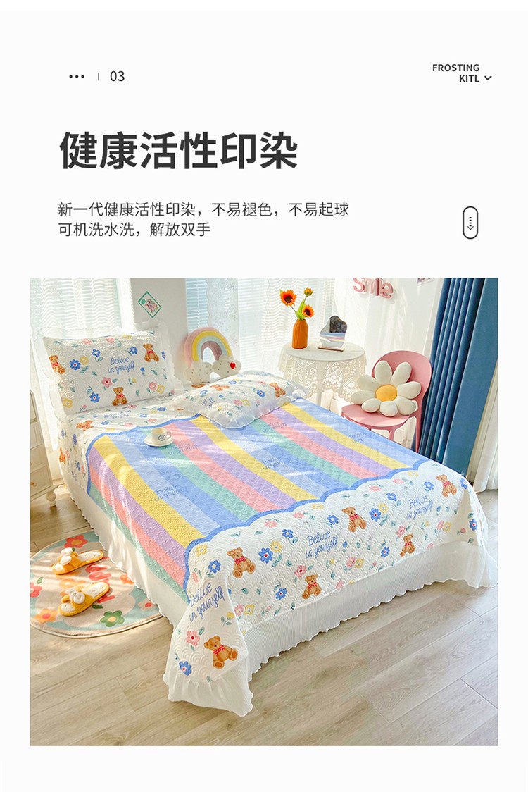 • 91家纺网 家纺一手货源 找家纺 鑫钰 2023全棉印花床盖三件套 花布熊