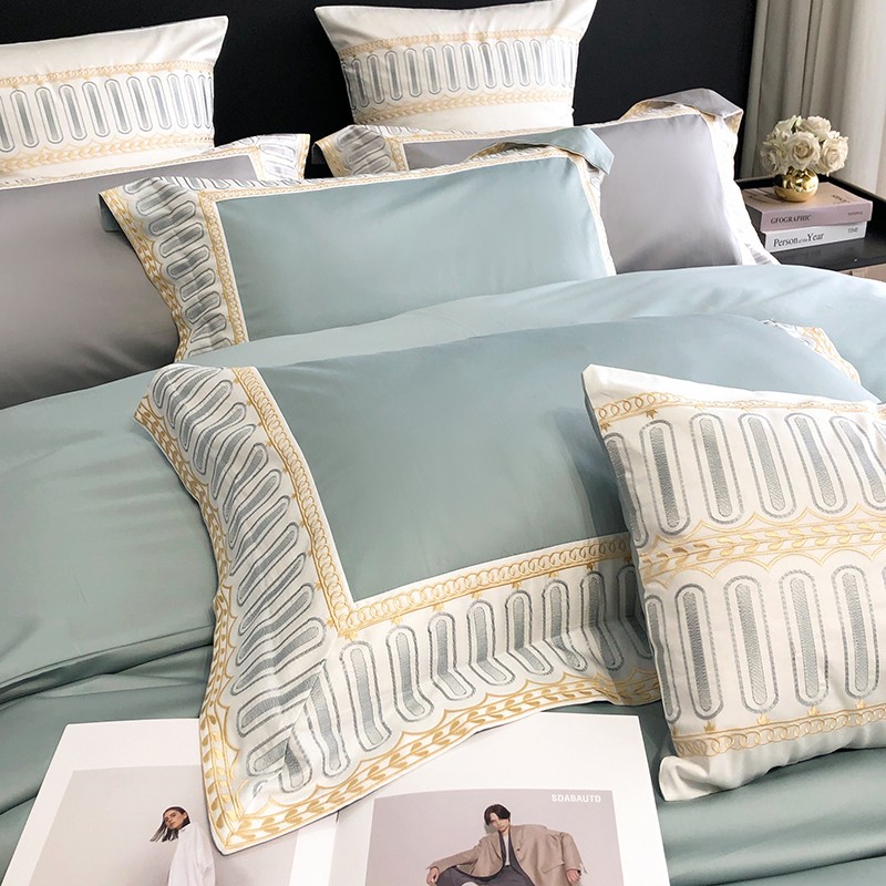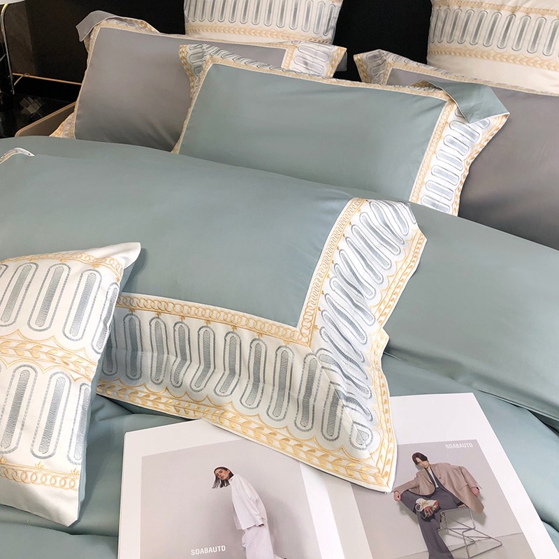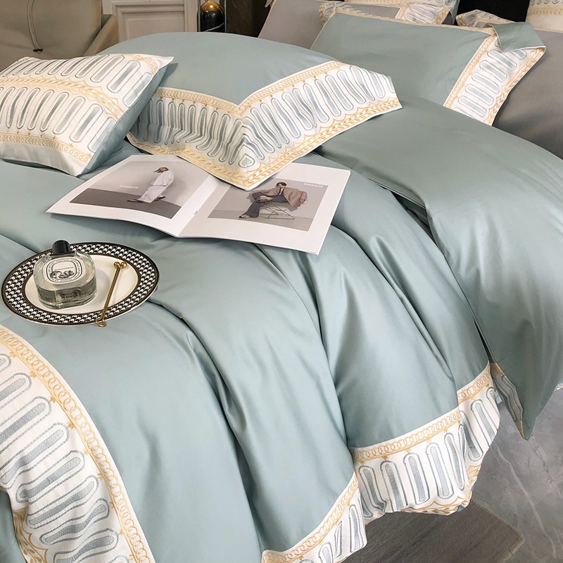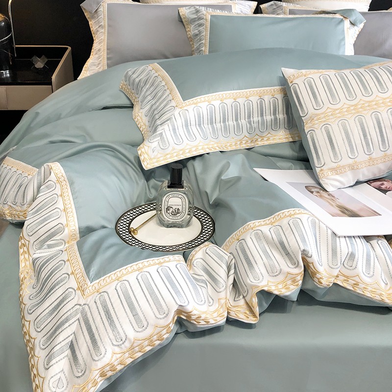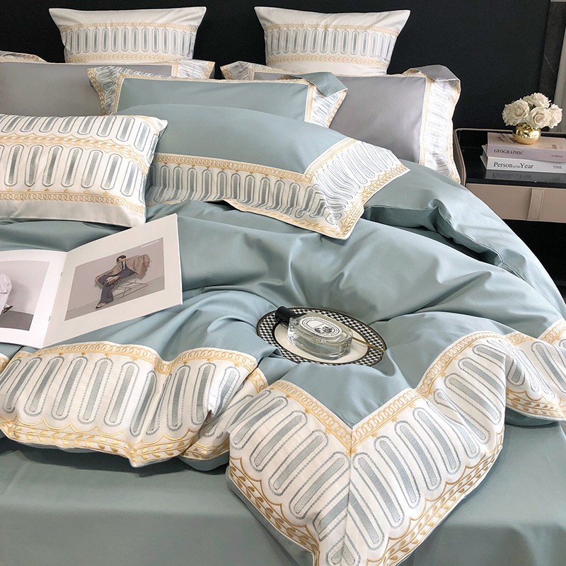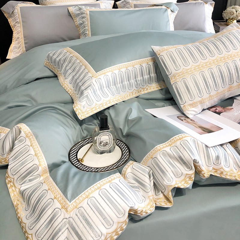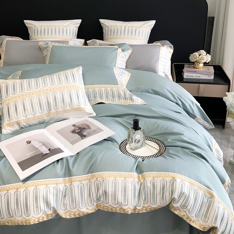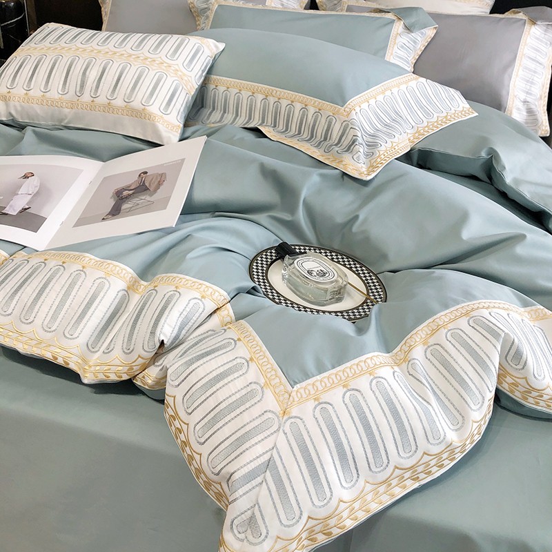 (总)曼布缇 2025春夏新款100s长绒棉工艺款绣花四件套-启航(券后338/378/398/起),启航