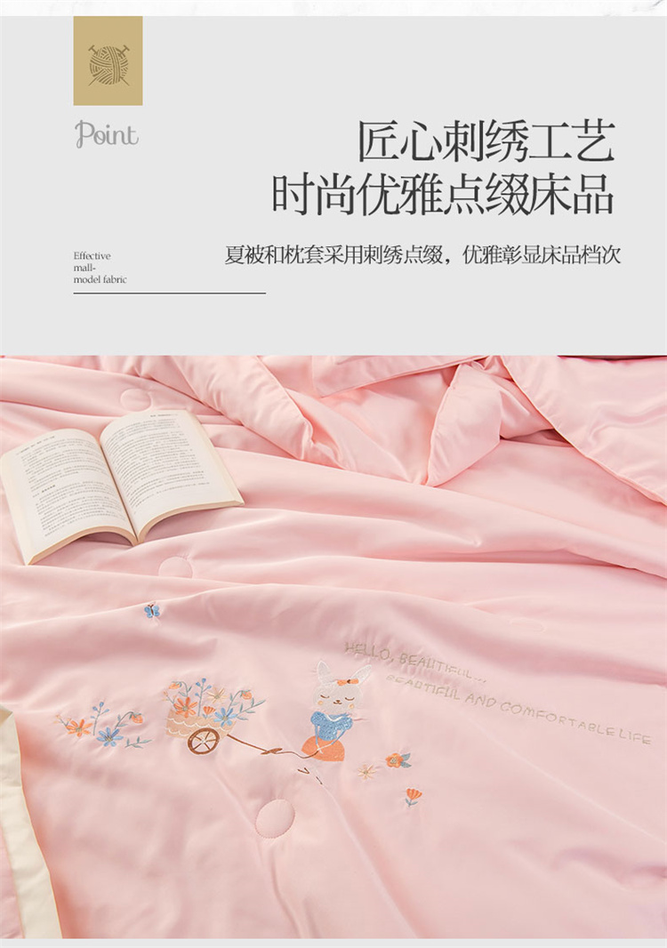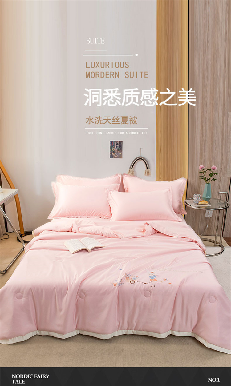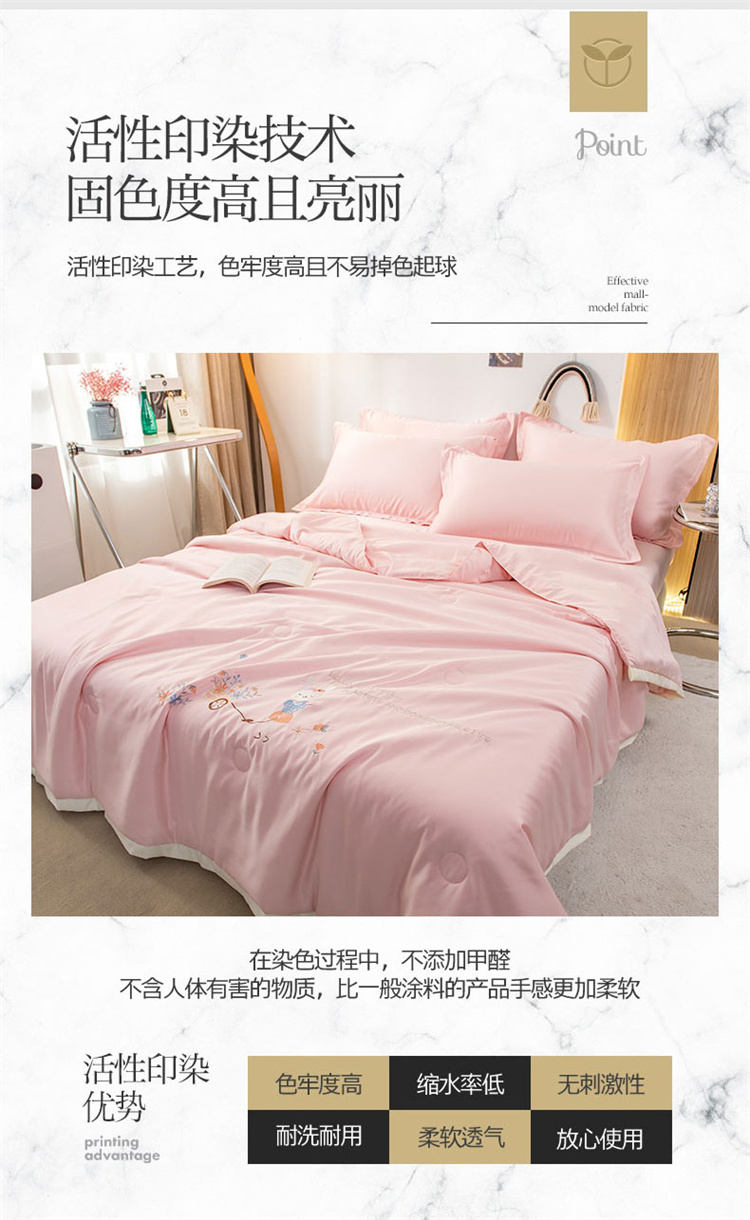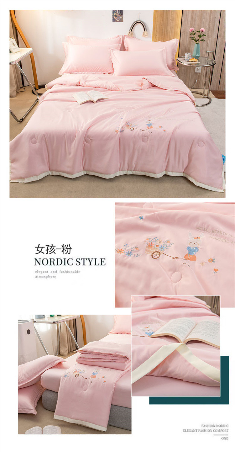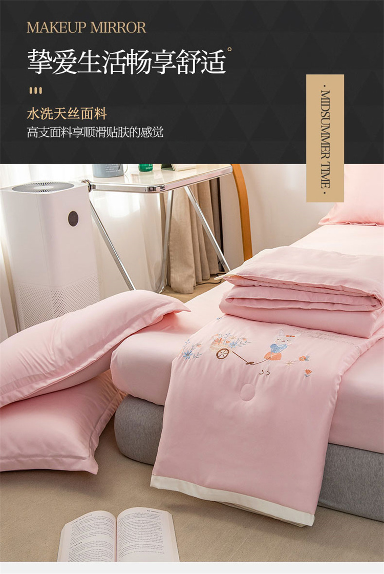 芃成家纺 2022新款水洗天丝绣花夏被子被芯 女孩-粉