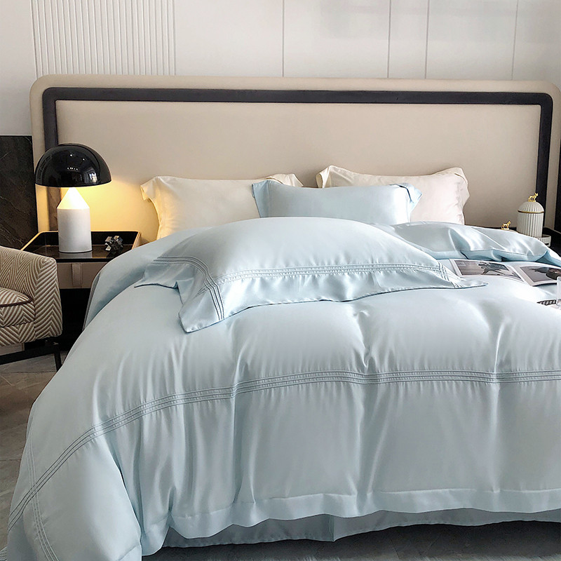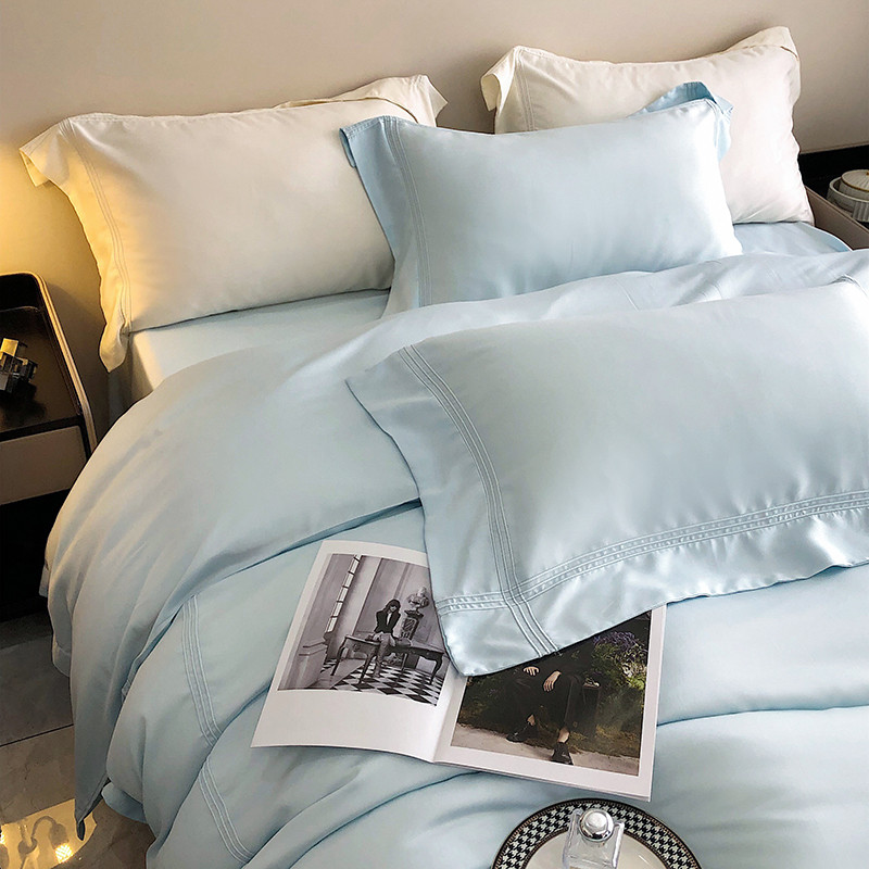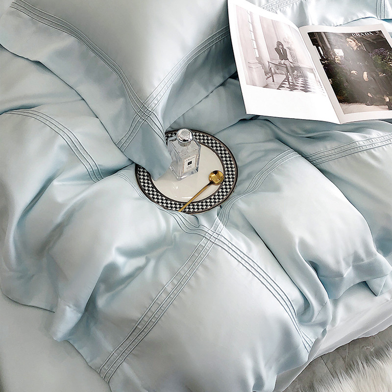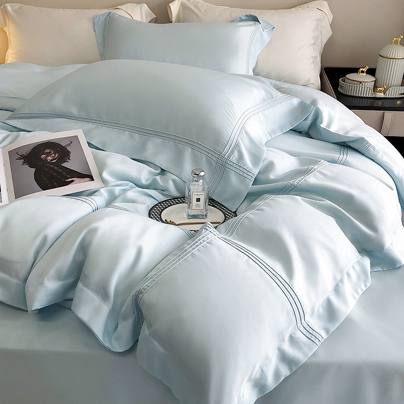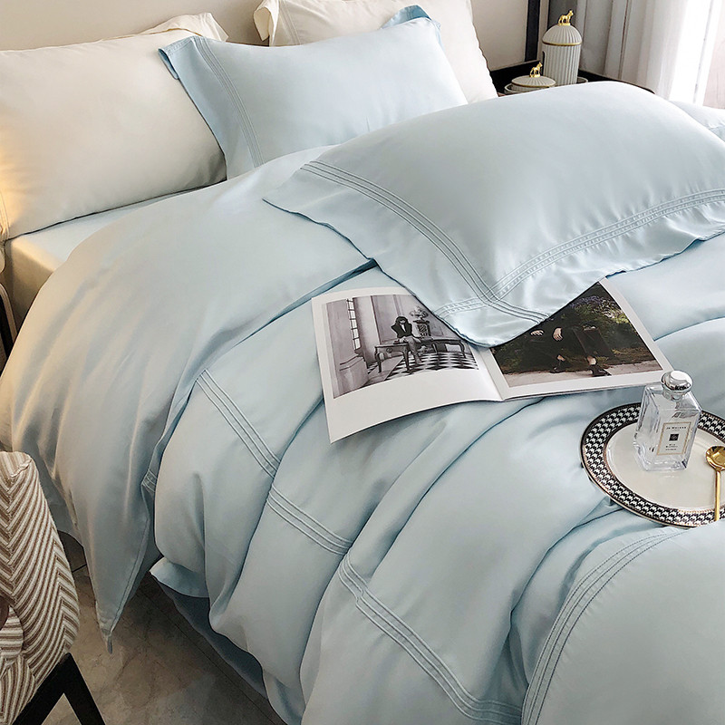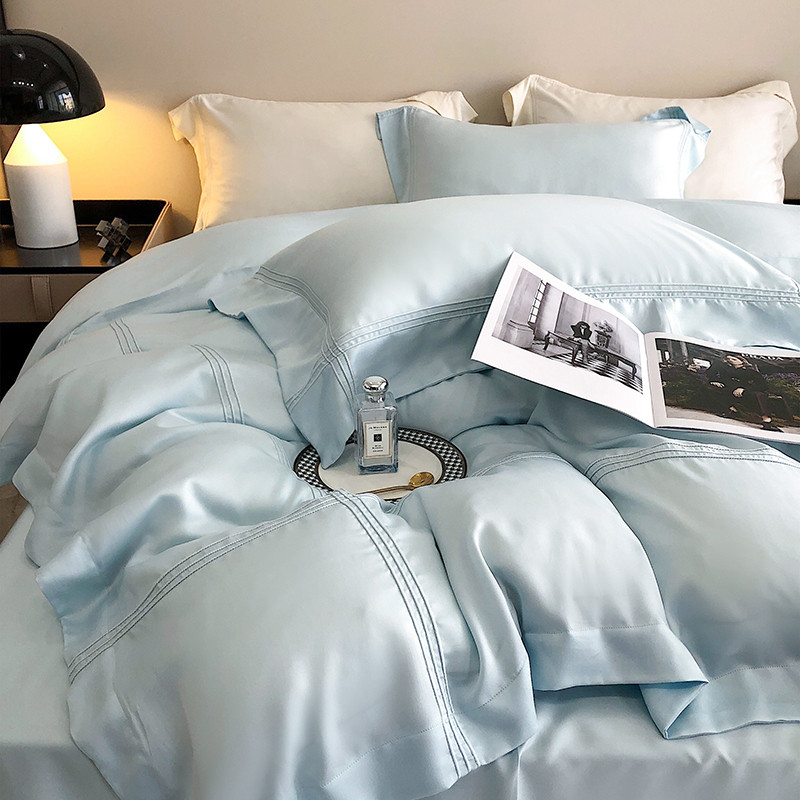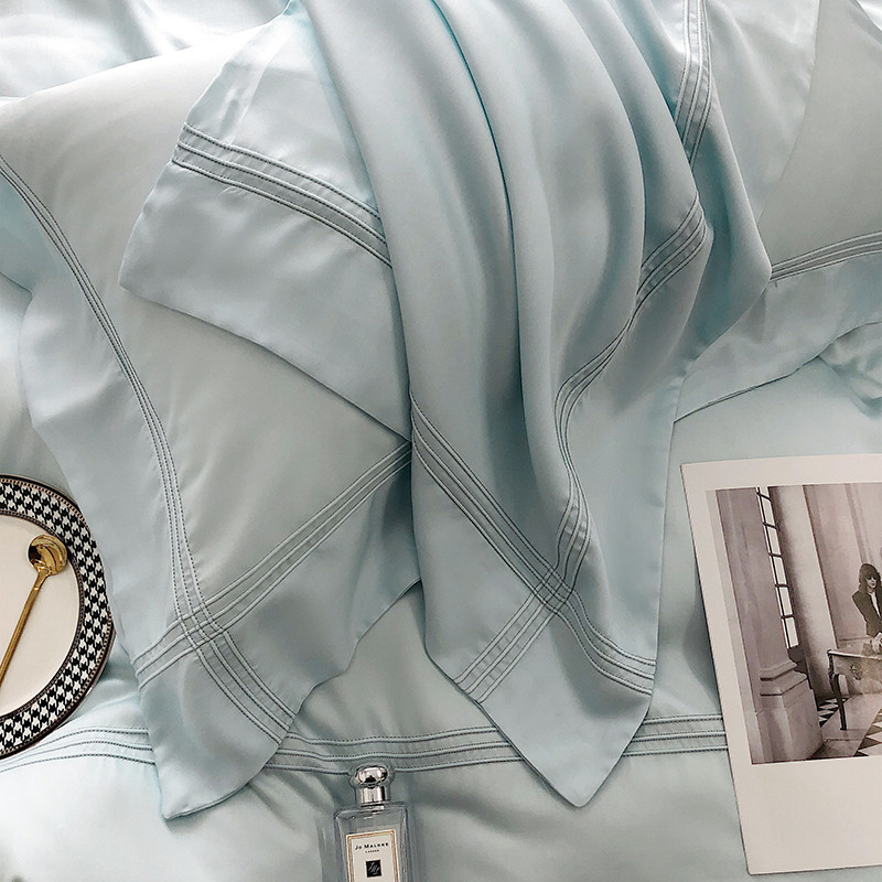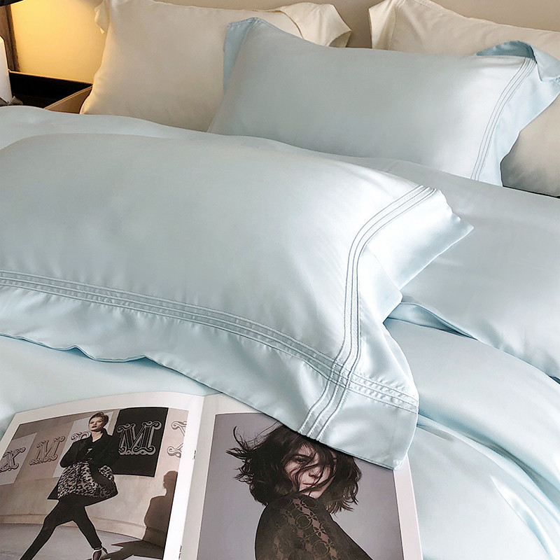 馨蕊家居 2022新款80S兰精天丝高定四件套简淡海蓝
